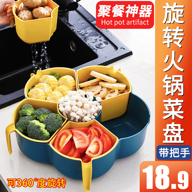 Вращающийся много -функциональный горячий горшок с блюдо для домашнего овощного блюда для употребления горячих горшка для установки овощного артефакта Специальная посуда