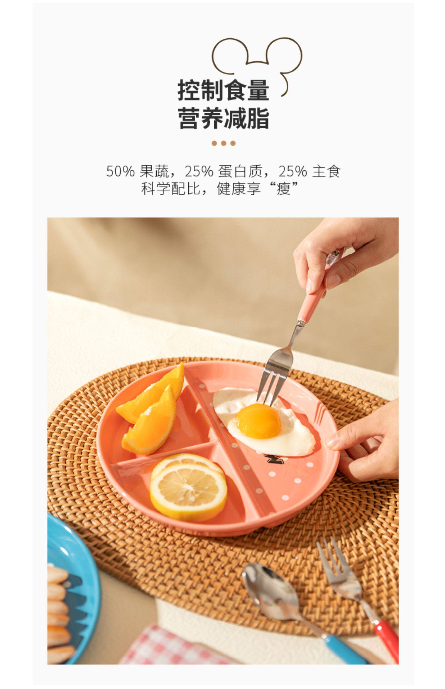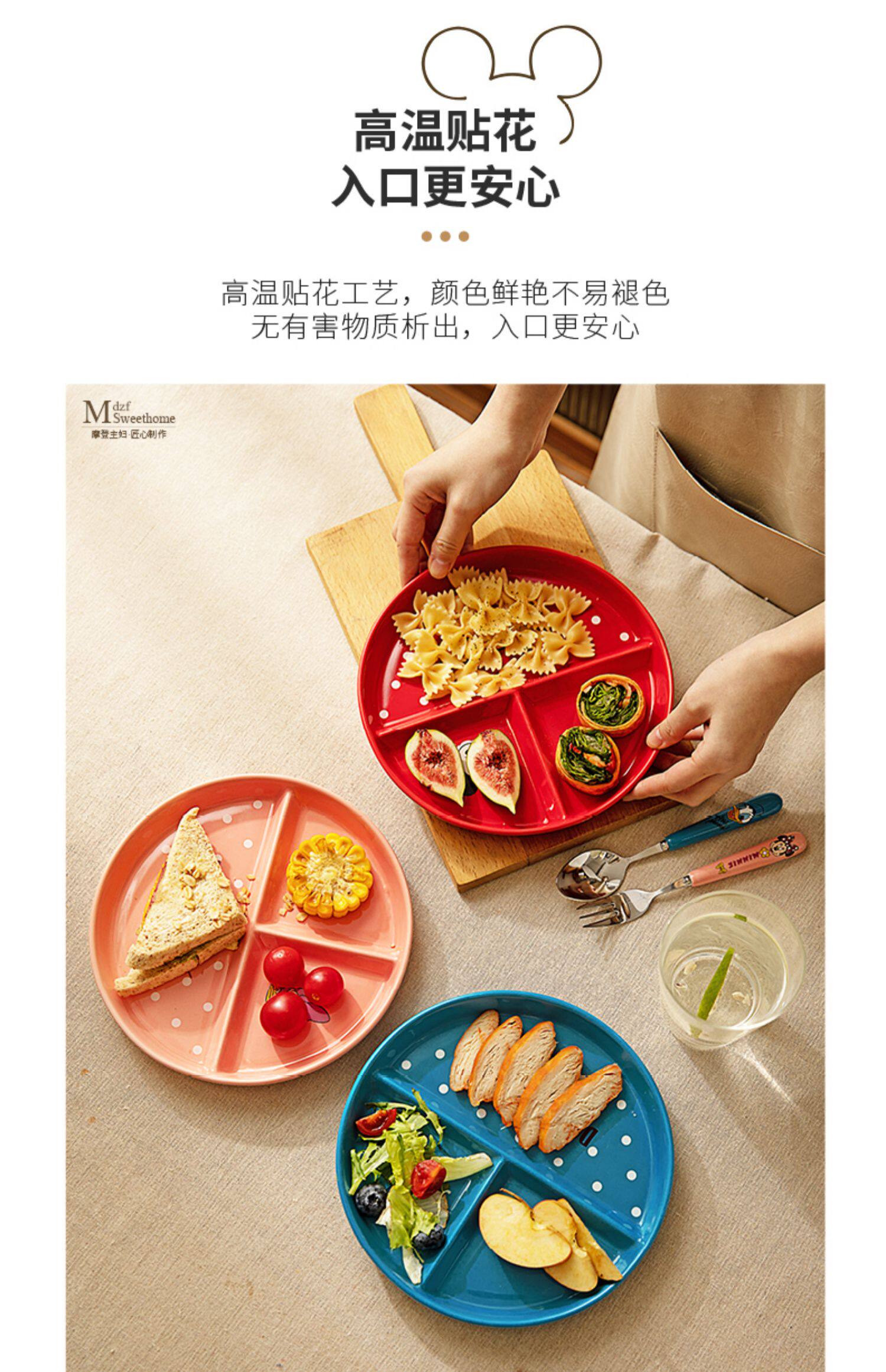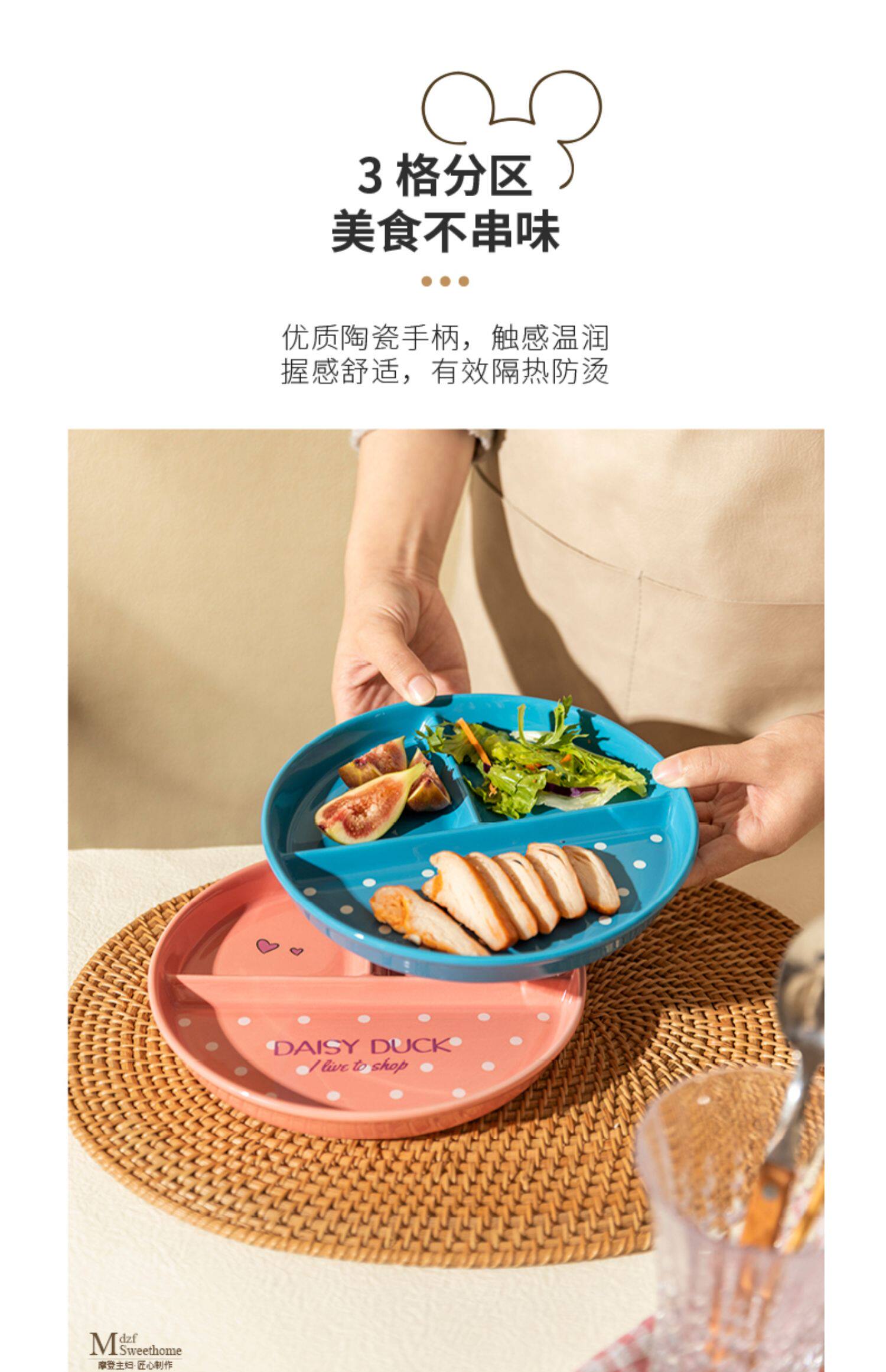 Ограниченная современная домохозяйки Disney 211 Ужин с уменьшением жира Один человек едят керамическую тарелку керамики.