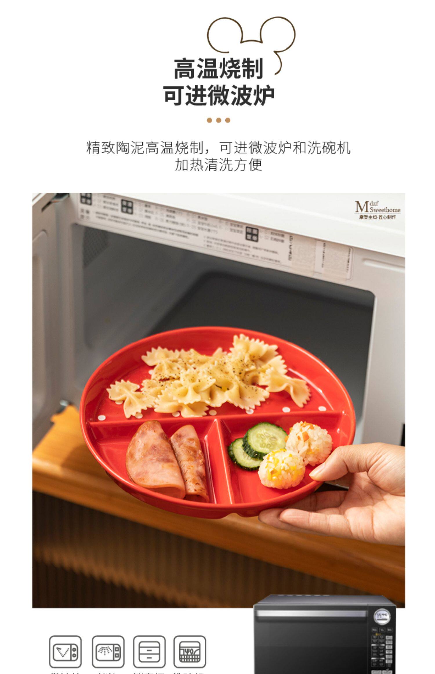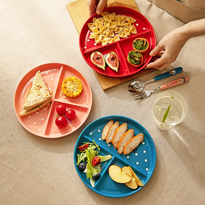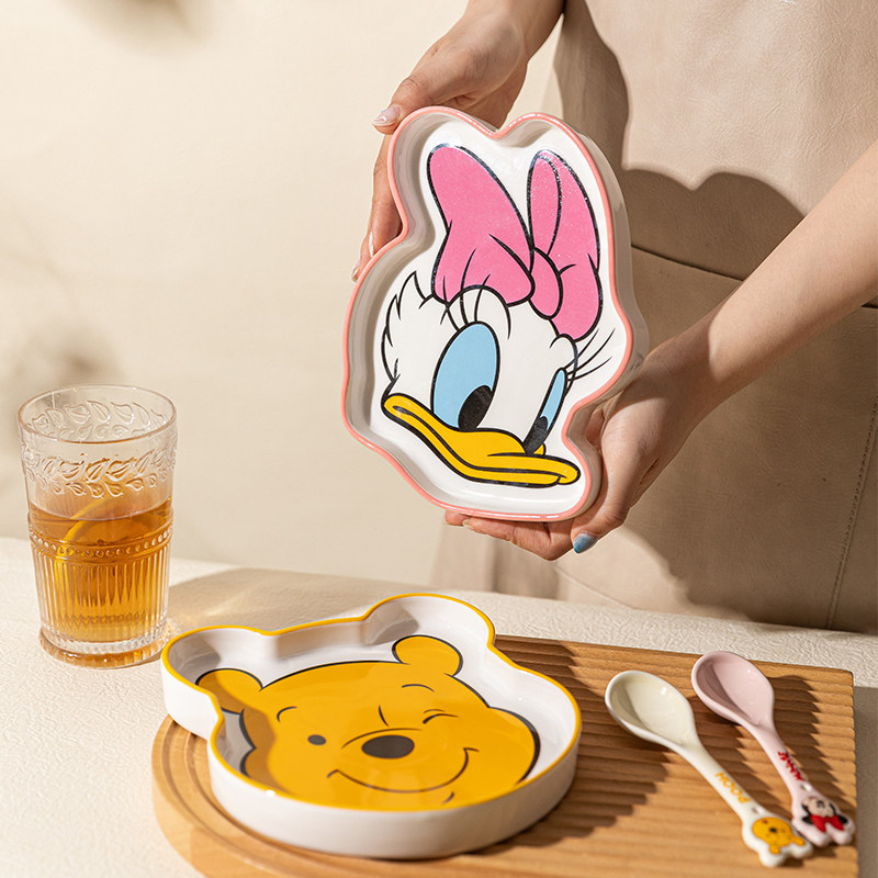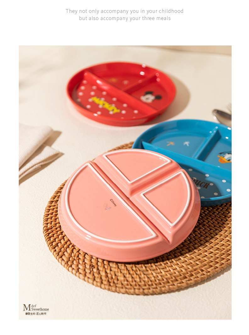 Ограниченная современная домохозяйки Disney 211 Ужин с уменьшением жира Один человек едят керамическую тарелку керамики.