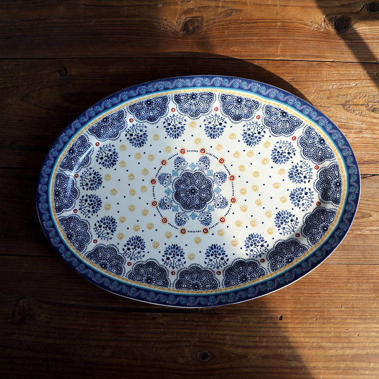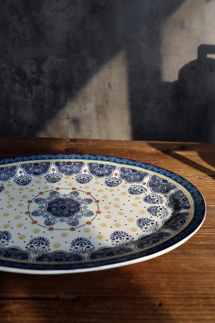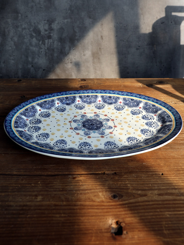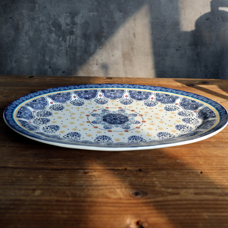 Французский синий цветочный диск эллипса, керамическая длинная тарелка японская посуда в стиле с закусками барбекю тарелка для барбекю