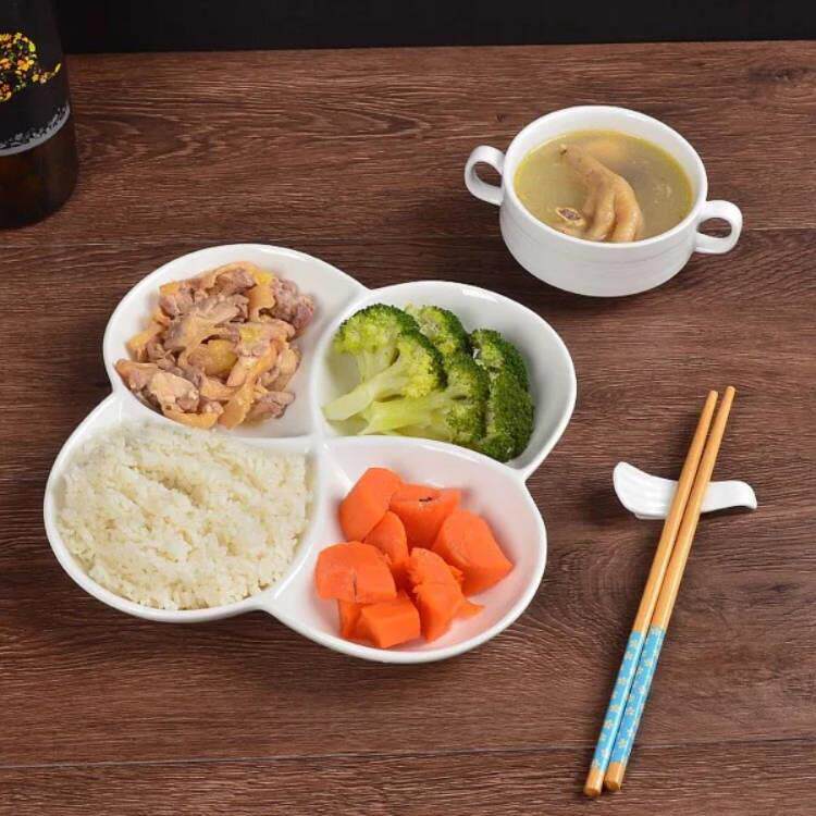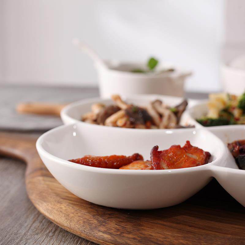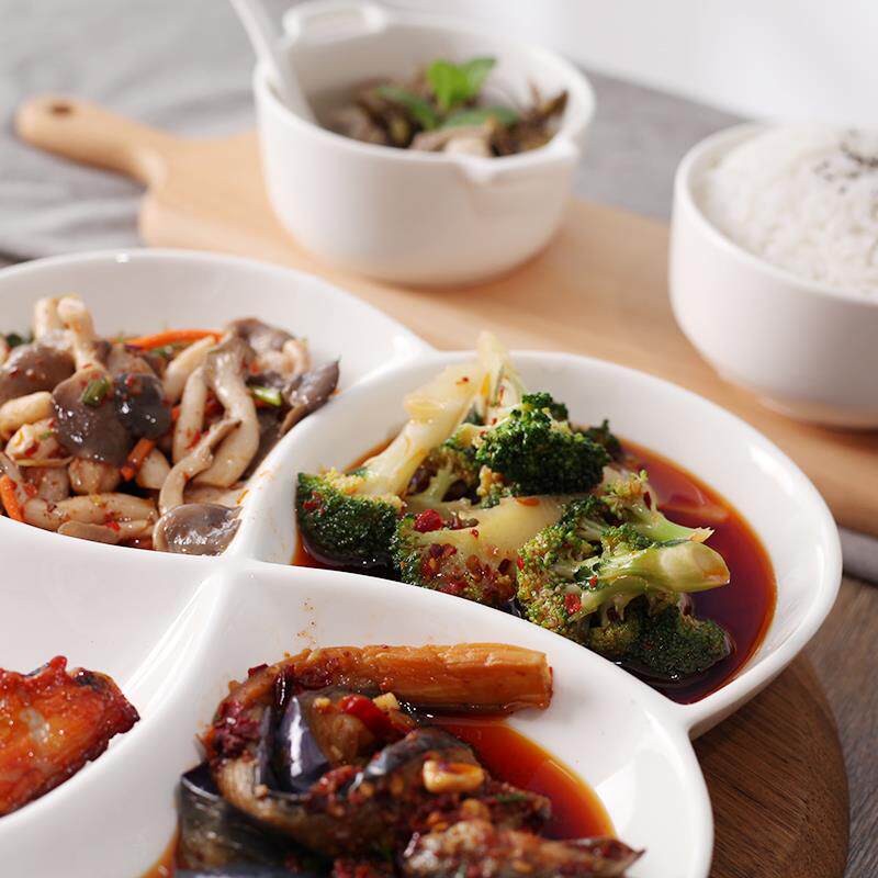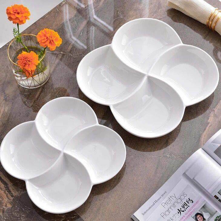 Чисто белый новый новый костный фарфор континентальный 10 -дюймовый керамическая тарелка с четырьмя гридными тарелками домашняя рисовая пластина