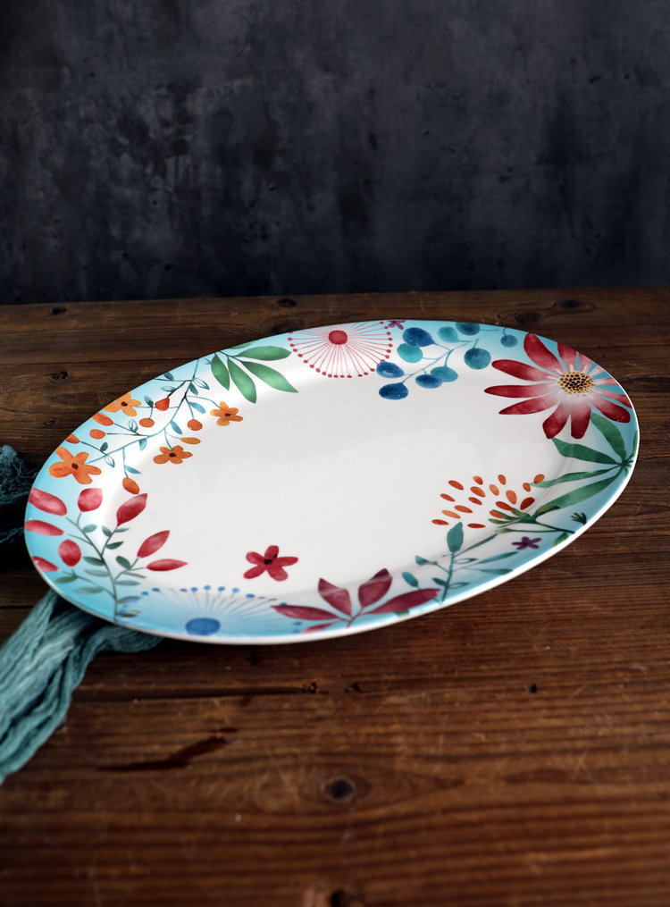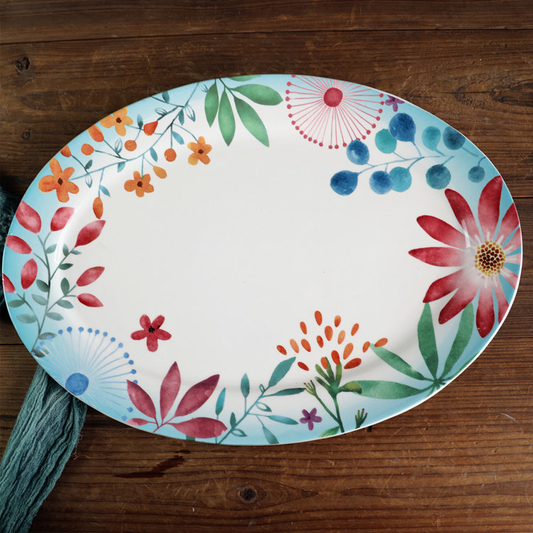 Красочные цветы керамический эллипс диск 41 см. Большая рыба