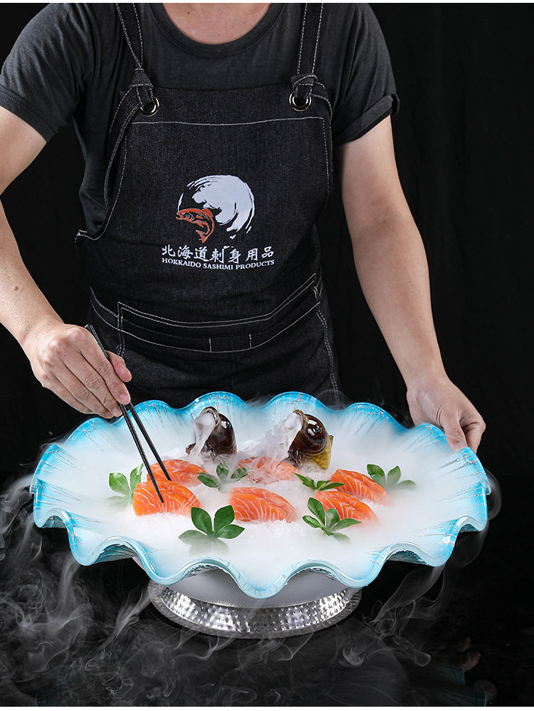Отель High -Fend Sashimi Ice Plate Big Platter Tableware Отель морепродукты с высокой высокой высокой высокой высокой тремя лобстерами.