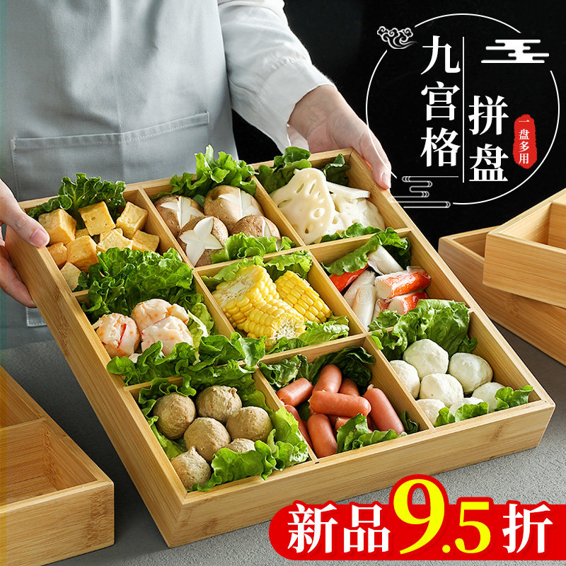 Японская стиль джиугонг сетка для поддона горячее горшок овощной блюдо из бамбука и деревянных подразделений для посуды Специализированные овощные паллет магазин барбекю