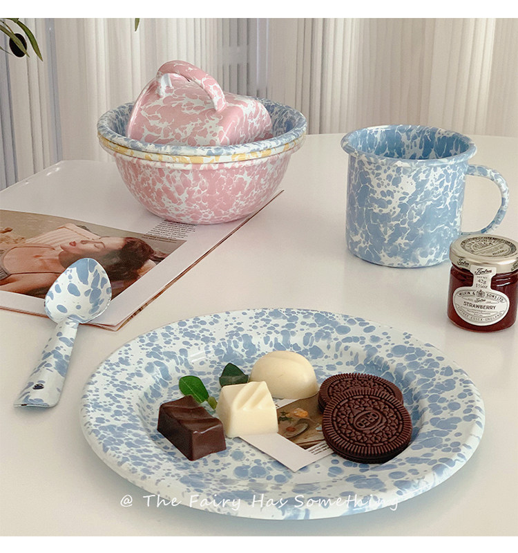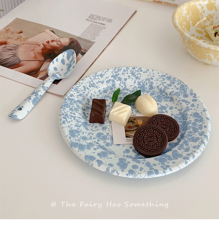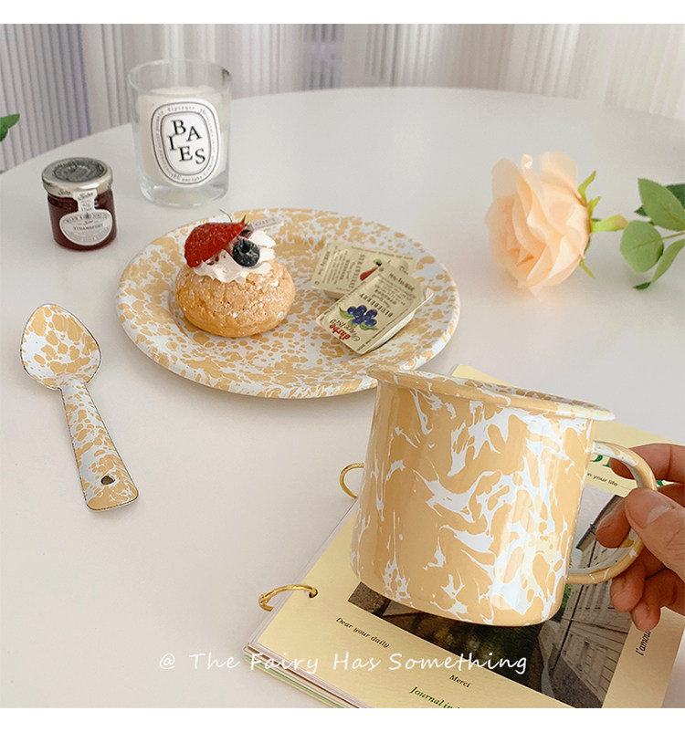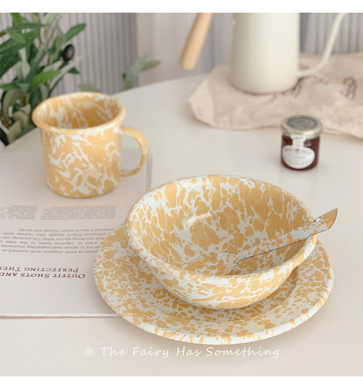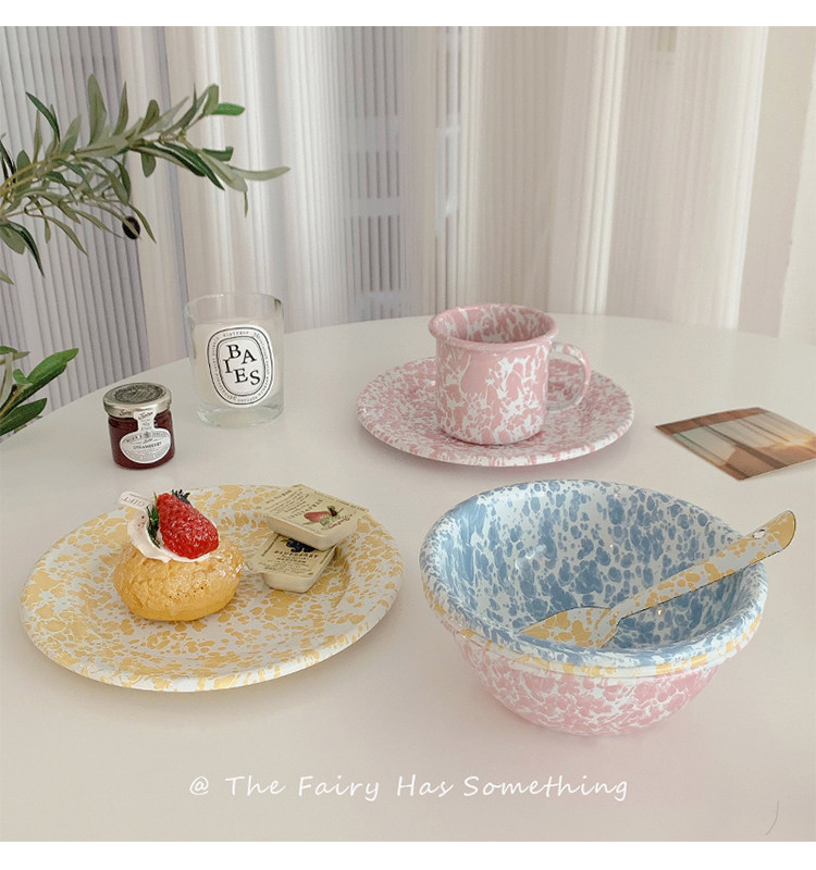 Корейская инспирация ветряной крыльцо чернила эмаль открытка завтрака фрукты салями миска кофейная чашка чашка Spoon сетевая красная посуда