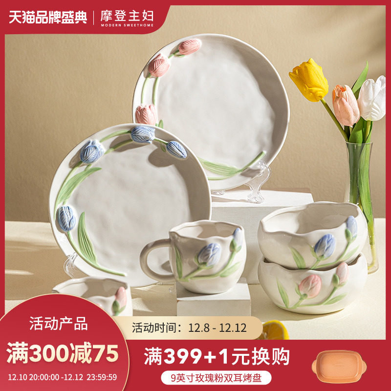 Посуда, брендовый керамический комплект, обеденная тарелка, изысканный стиль
