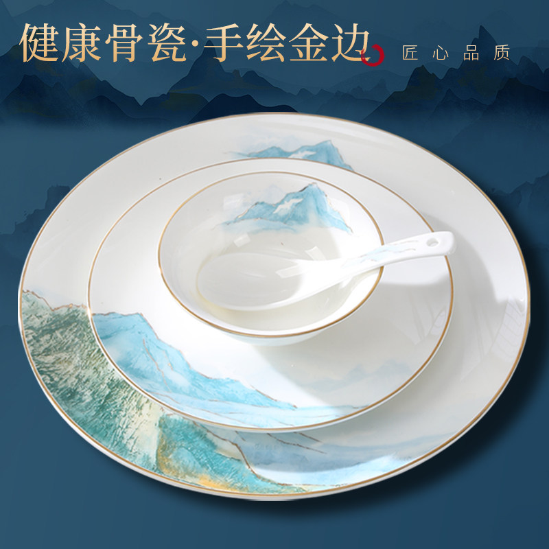 Обеденная тарелка для отеля, посуда, креативный комплект для домашнего использования, китайский стиль, легкий роскошный стиль