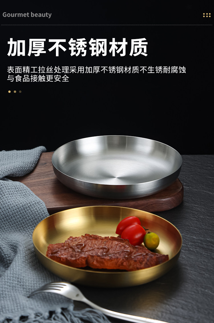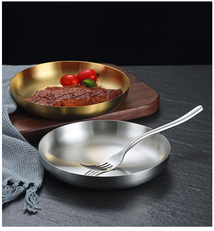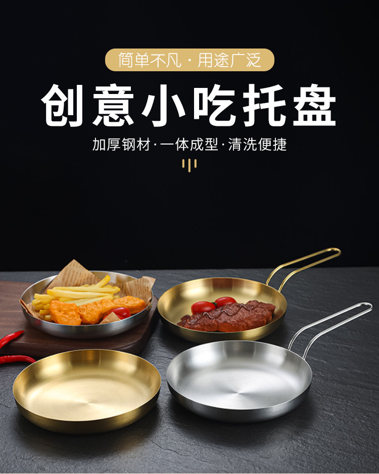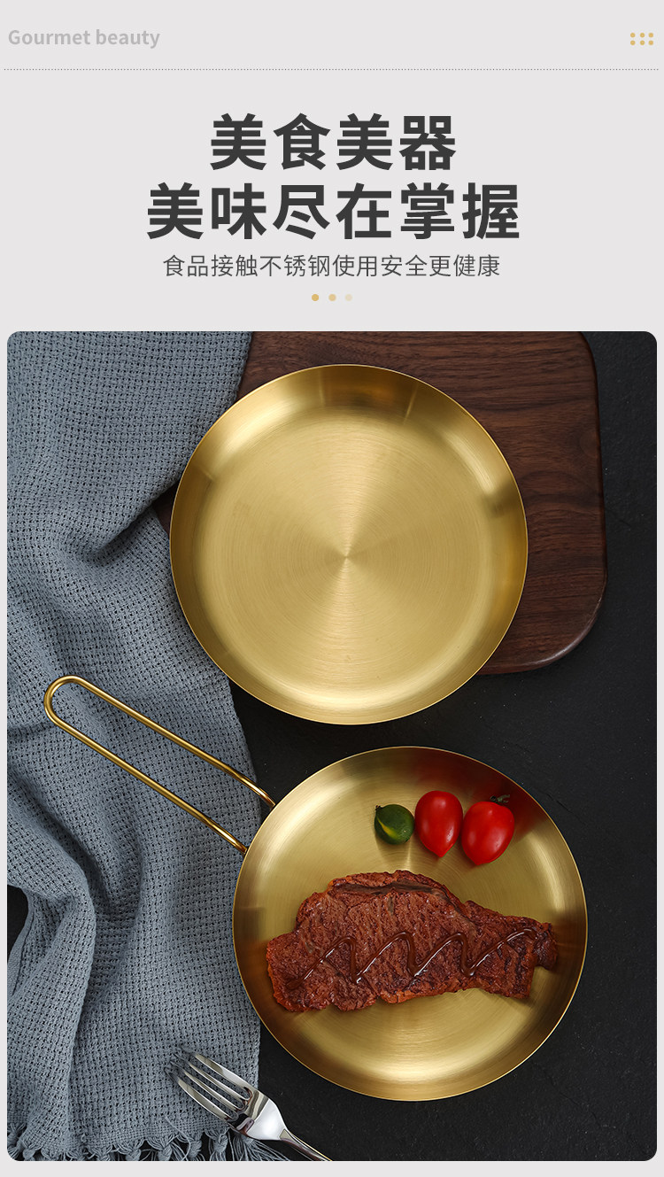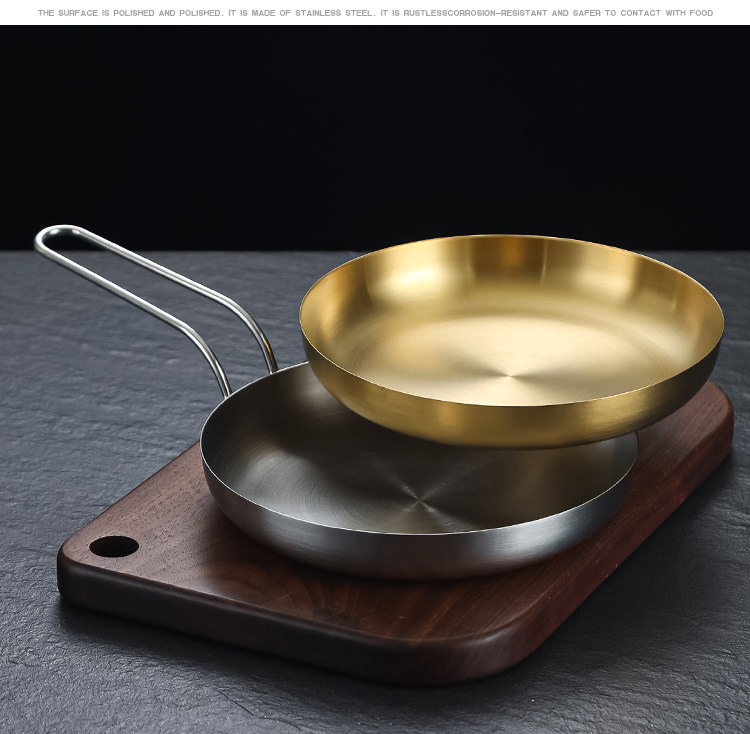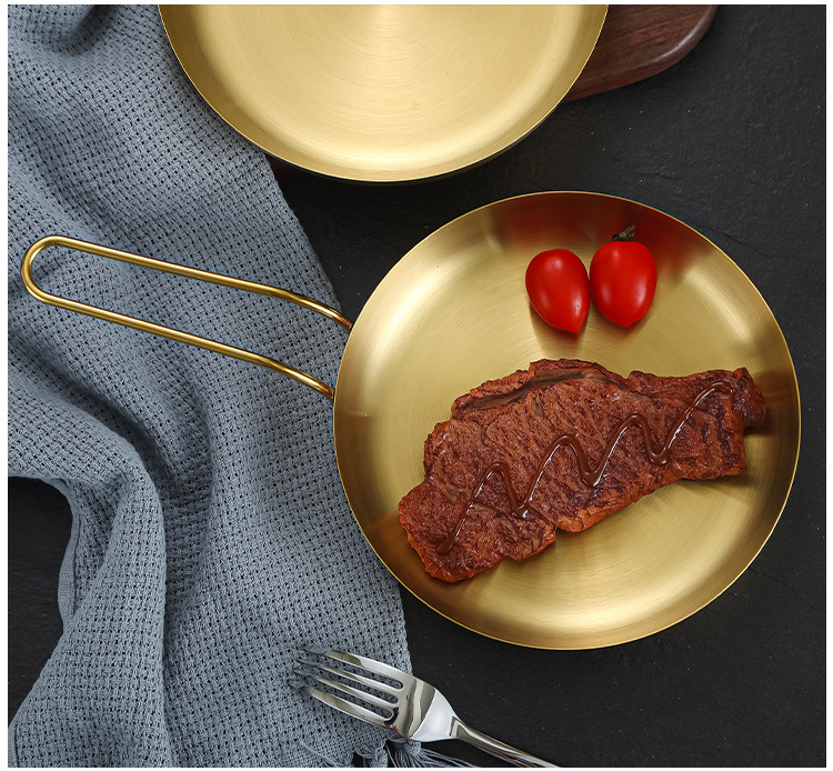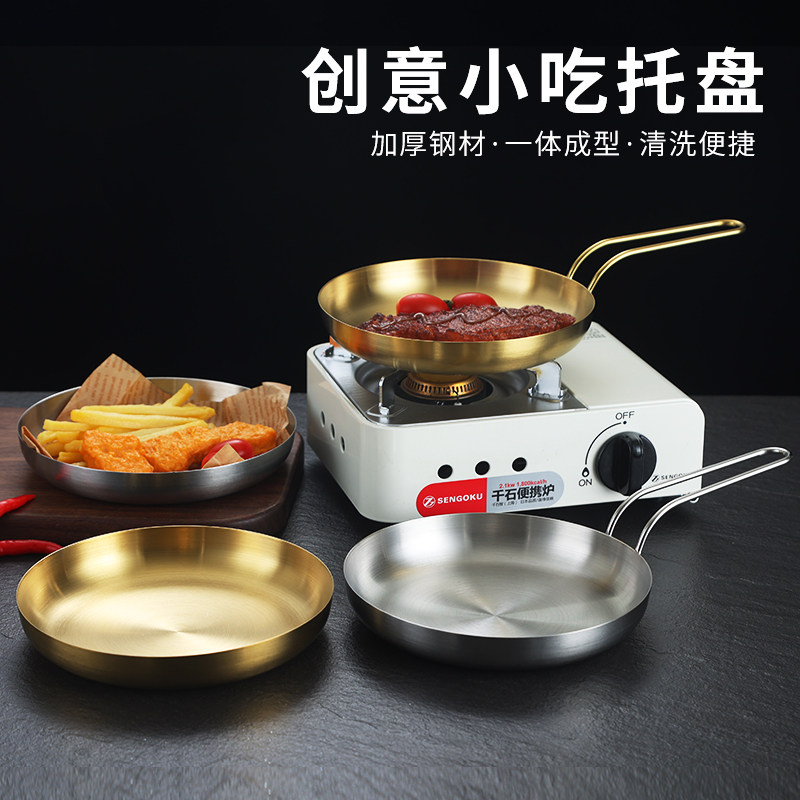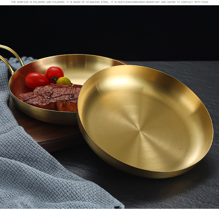 304 Корейская тарелка для закусок из нержавеющей стали, креативная золотая тарелка для стейка с ручкой, сковорода для барбекю, тарелка для барбекю, тарелка для барбекю, круглая тарелка
