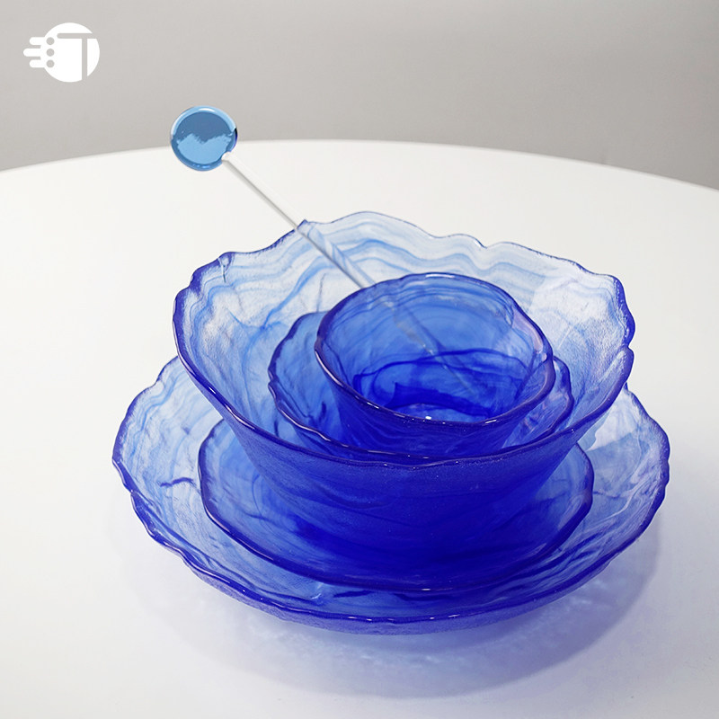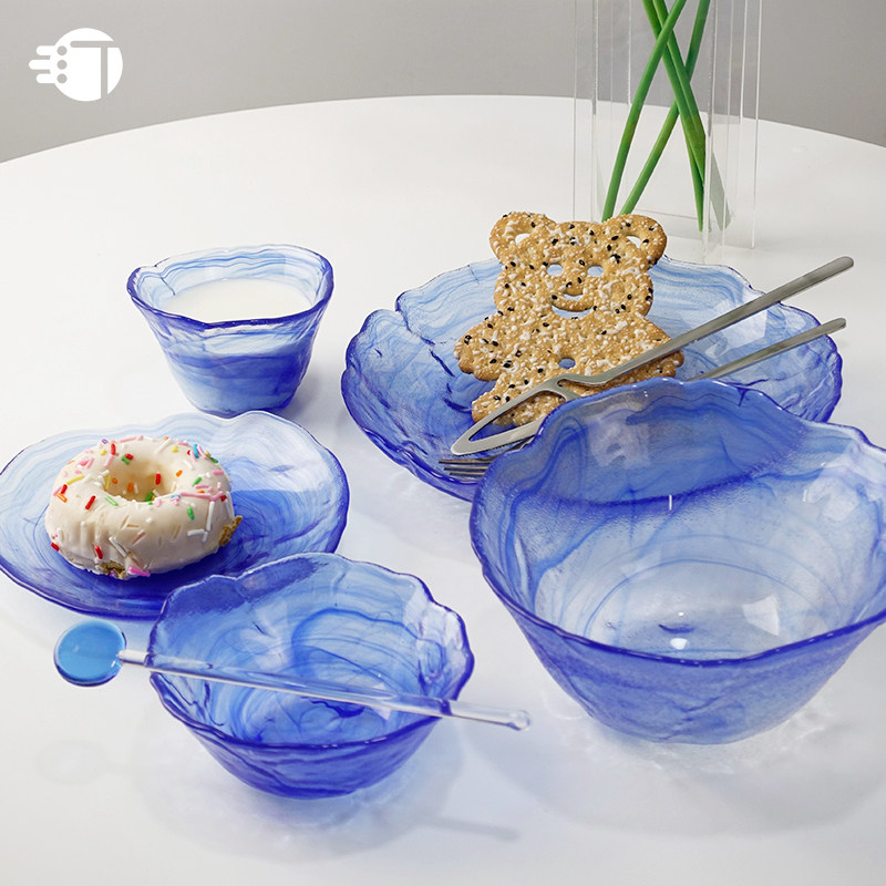 三汀 Синяя стеклянная обеденная тарелка для домашнего использования, посуда