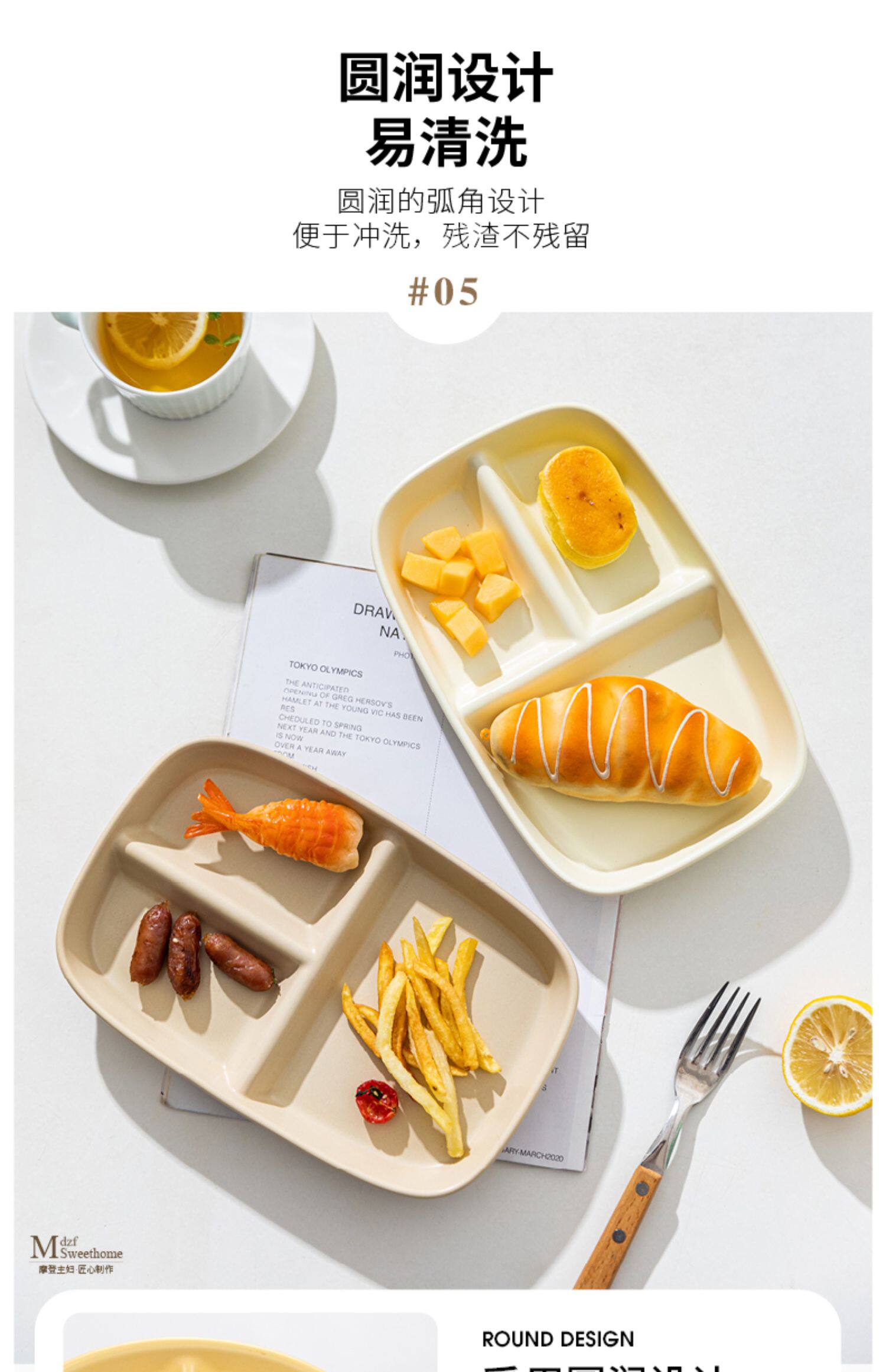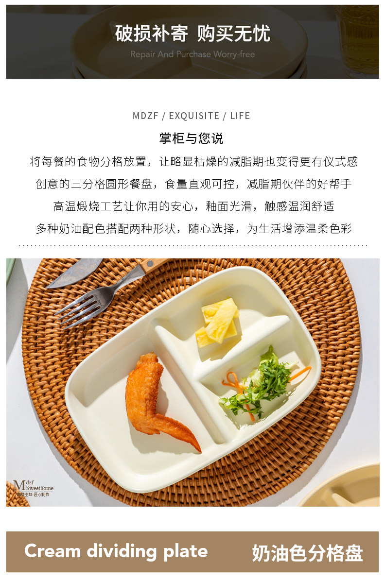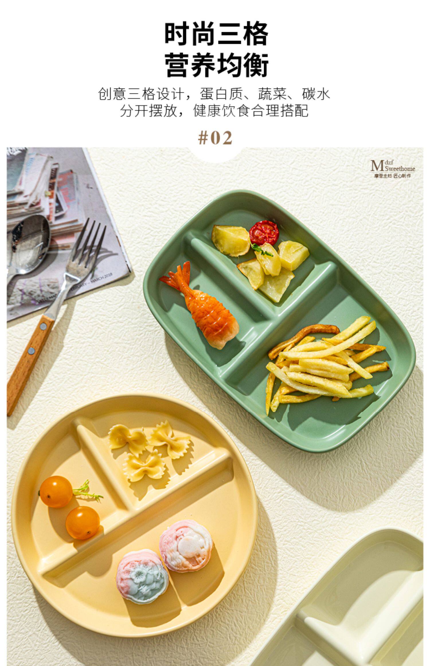 Современная разделенная обеденная тарелка для домохозяйки, керамическая тарелка для завтрака для взрослых на одного человека, детская посуда, бытовая разделенная тарелка с фруктами