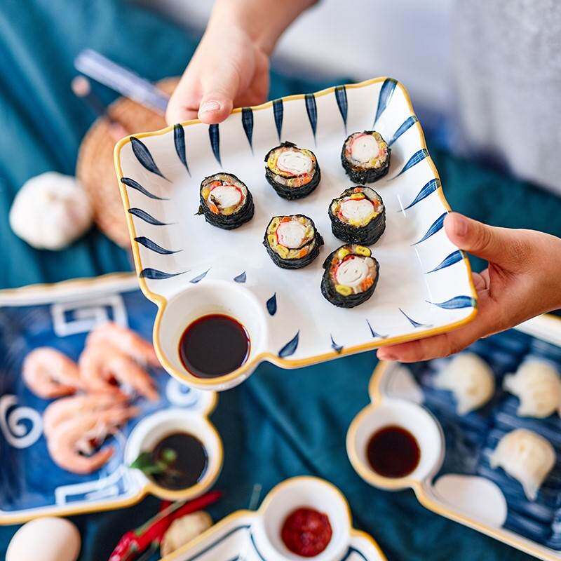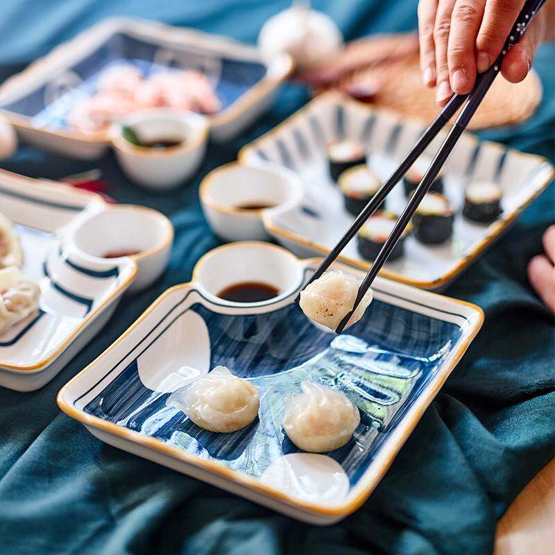 Японские керамические булочки с керамическими булочками на пару приготовленных на пару пельмени на пару с креветками и закусками тарелка для суши с погружением в блюдо из варенья с уксусом диском