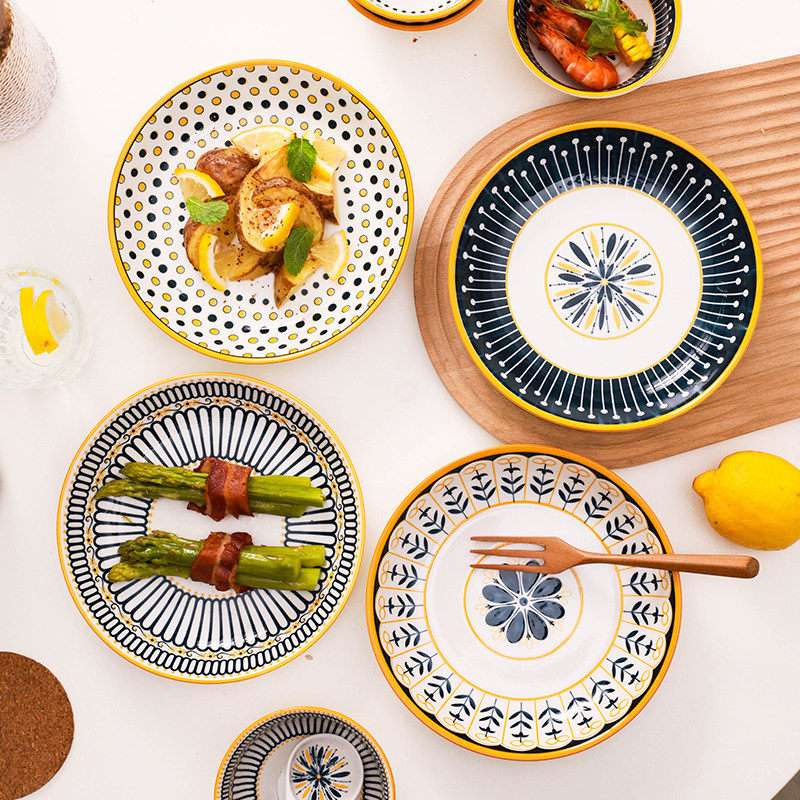 Нордическая ретро -домашняя керамическая тарелка суп -тарелка высокая ценностная стойкость высокотемпературная устойчивость против глазурной глазурки 8 -дюймовый диск