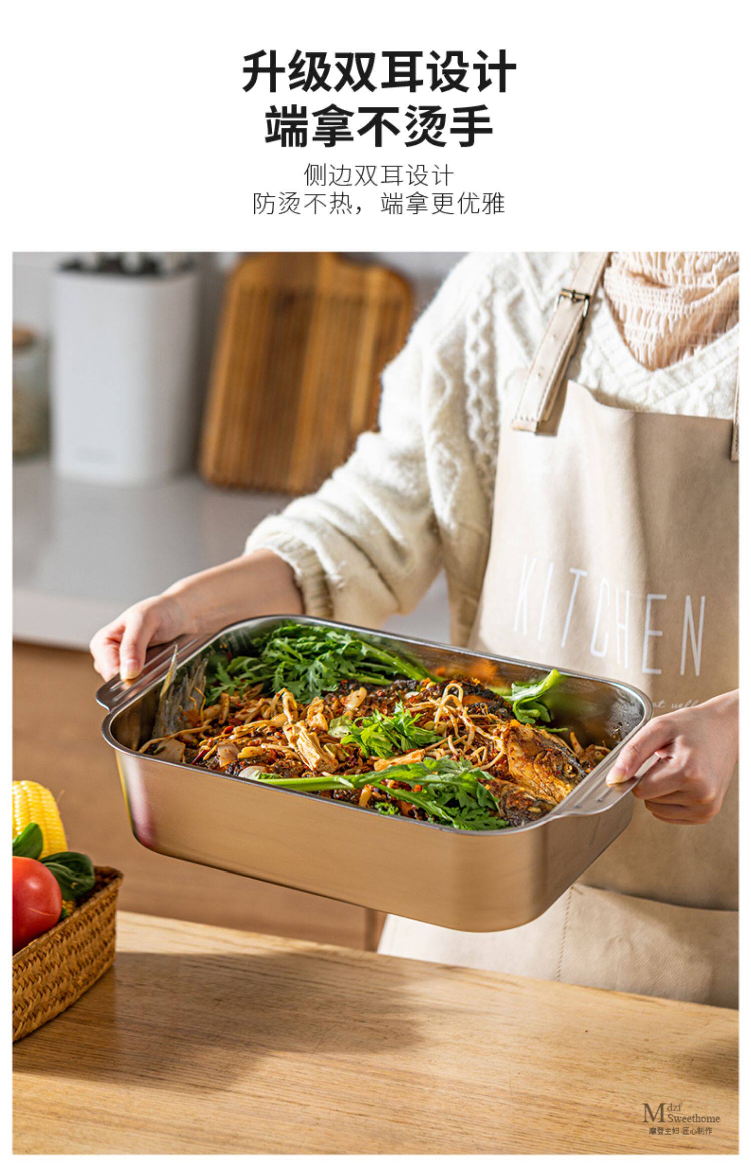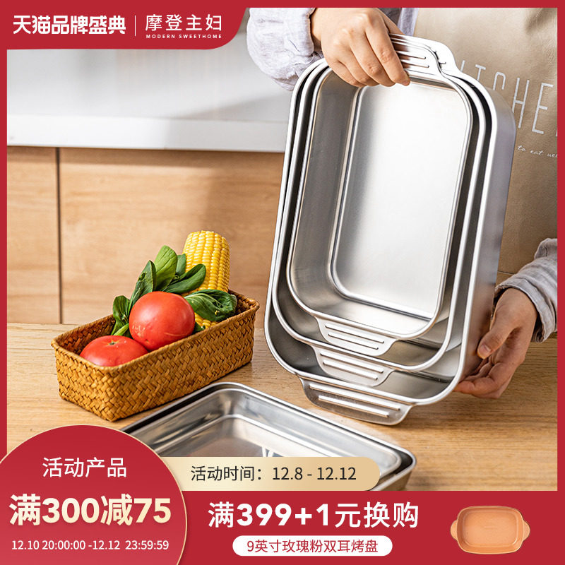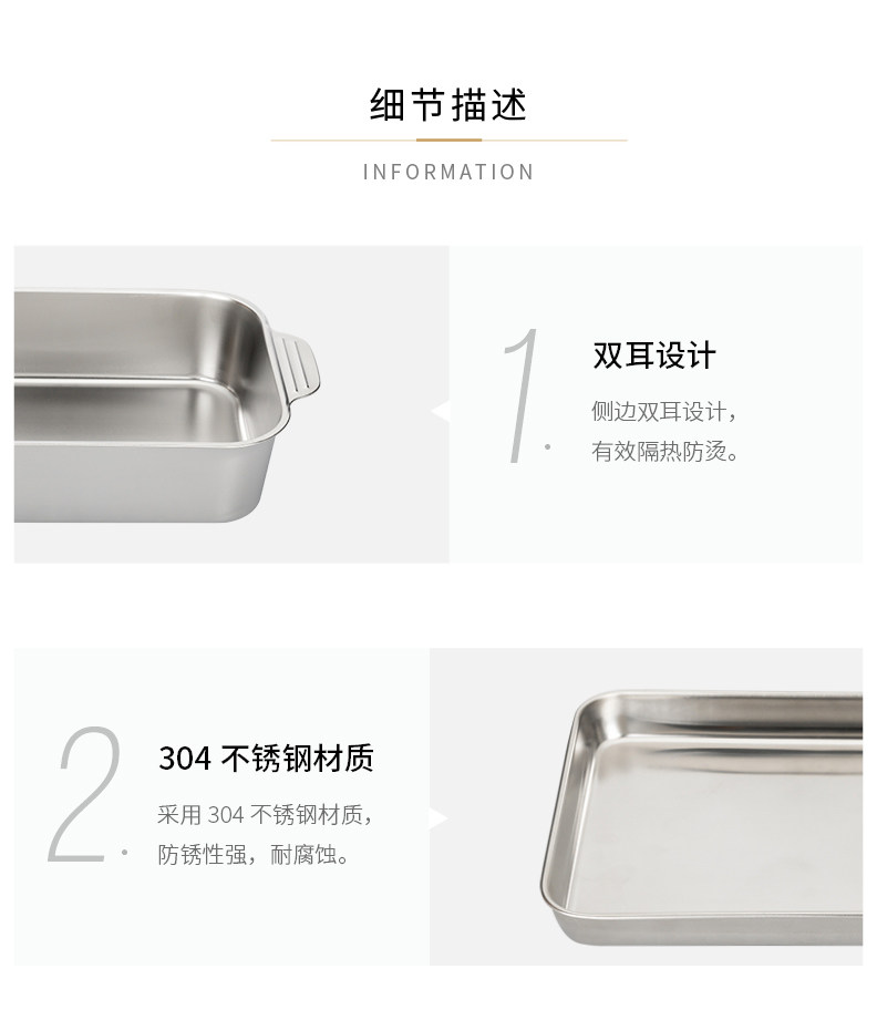 - Двойная глубокая пластина из нержавеющей стали 304 (маленький размер) 32,8*18,7*5,1 см