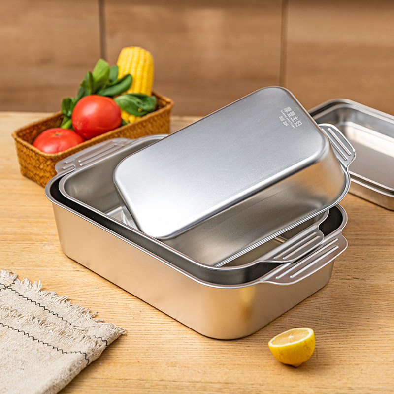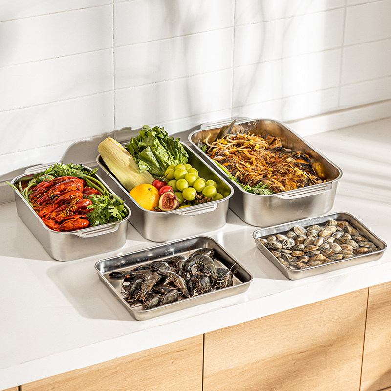 - Поднос из нержавеющей стали 304 (маленький размер) + крышка для сохранения свежести 24,3*18,5 см.
