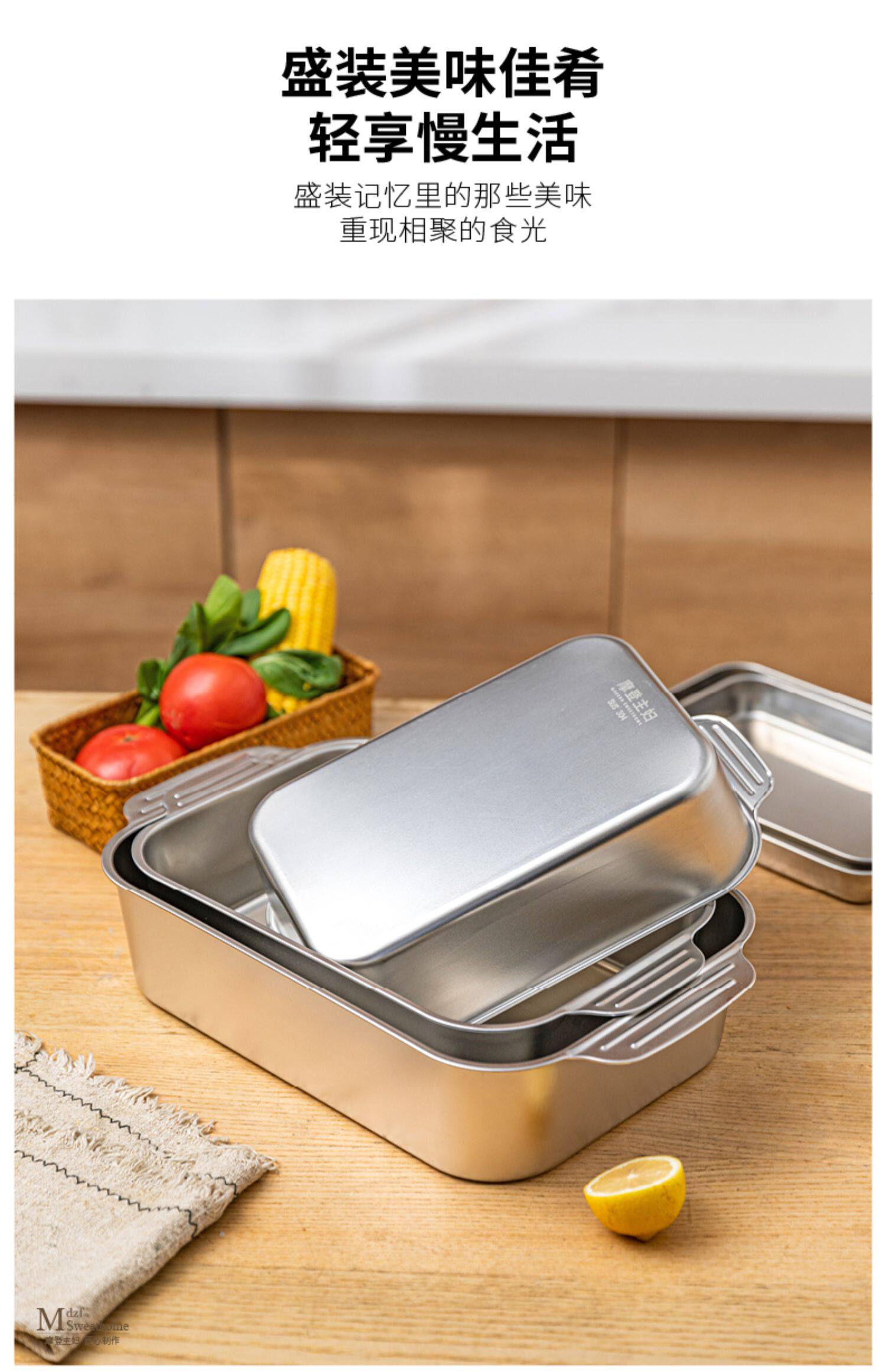 - Поднос из нержавеющей стали 304 (среднего размера) + крышка для сохранения свежести 27,2*21,2 см.