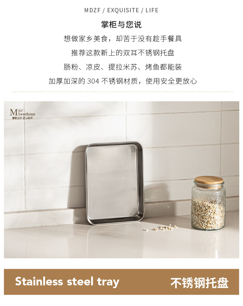 - Поднос из нержавеющей стали 304 (среднего размера) 26,5*20,5*2,5 см