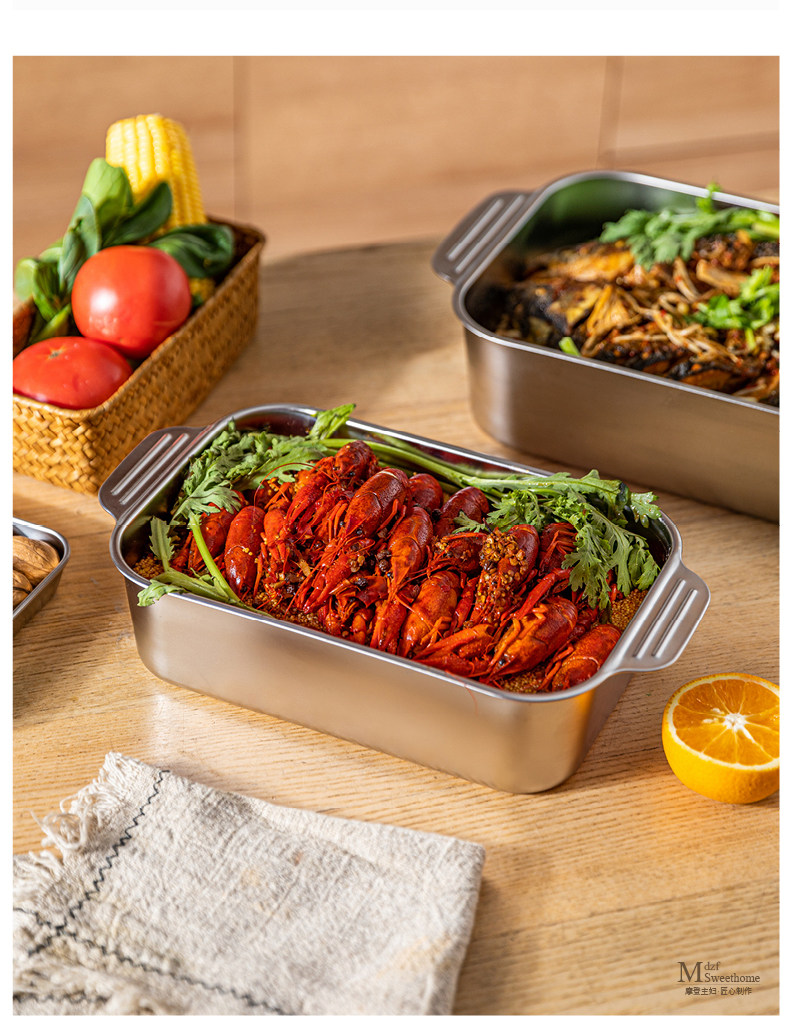 - Двойная глубокая пластина из нержавеющей стали 304 (среднего размера) 36,5*21,7*5,1 см