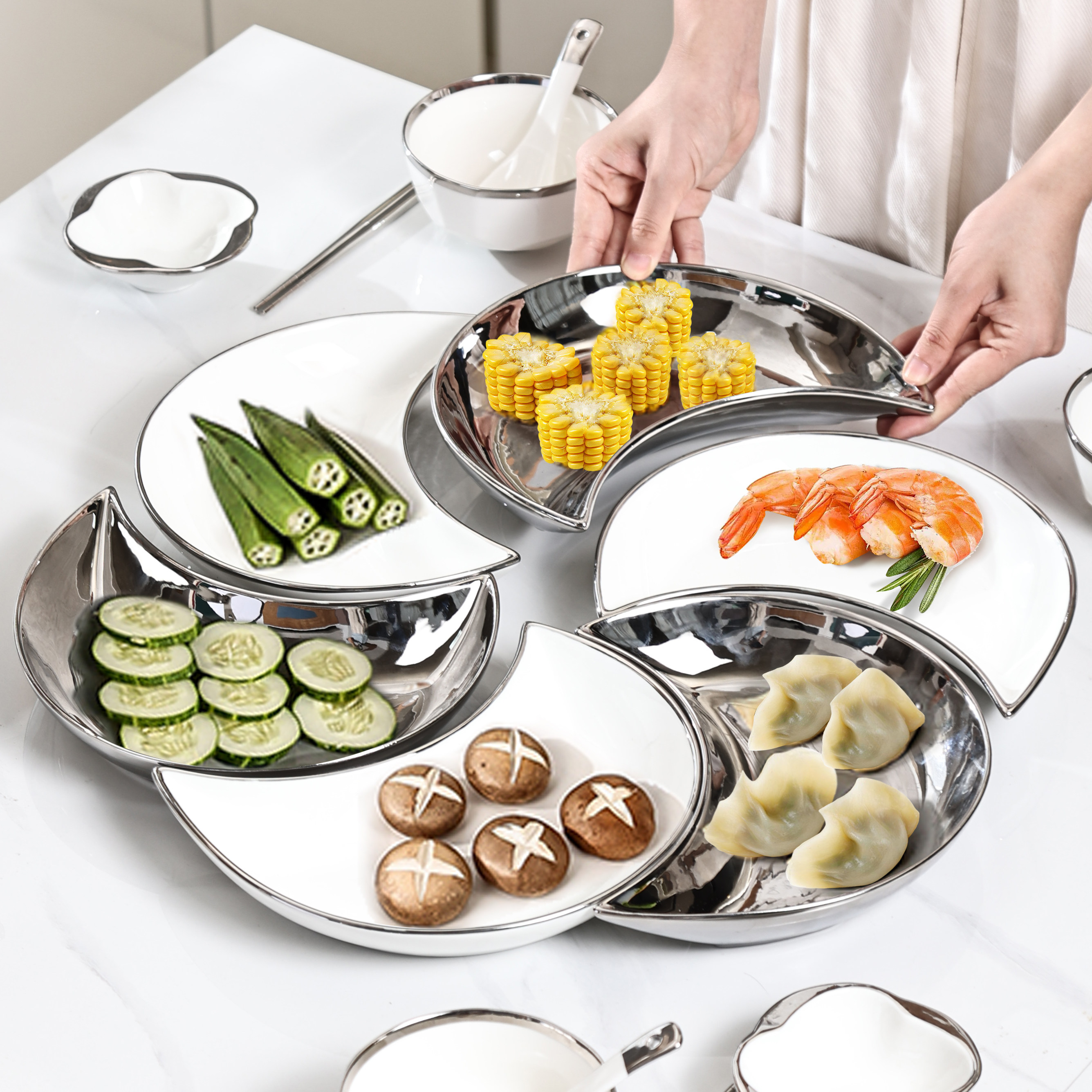 | Цвет: | Луновое блюдо 3 сетка (белый), Луновое блюдо 4 сетка (белый), Луновое блюдо 4 сетка (смешанный цвет), Луновое блюдо 5 сетка (белый), Луновое блюдо 6 сетка (белый), Луновое блюдо 6 сетка (смешанный цвет), Луновое блюдо 3 сетка+3 столовая ложка диски для палочек для еды (белый), Луновое блюдо 4 сетка+4 человека на столовой ложке блюдо палочки для еды (белое), Луновое блюдо 4 сетка+4 человека на столовой ложке блюдо для палочек для еды (смешанный цвет), Луновое блюдо 5 сетка+5 человек. Стол столовой ложки диски для палочек для еды (белый), Луновое блюдо 6 сетка+6 -личностные блюда и палочки для палочек (белые), Луновое блюдо 6 сетка+6 -личностные блюда и палочки для еды (смешанный цвет) |