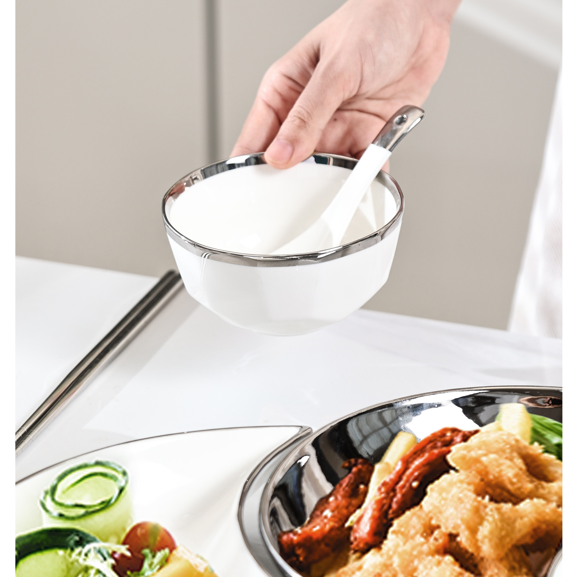 Керамическая посуда, креативный комплект, обеденная тарелка, легкий роскошный стиль