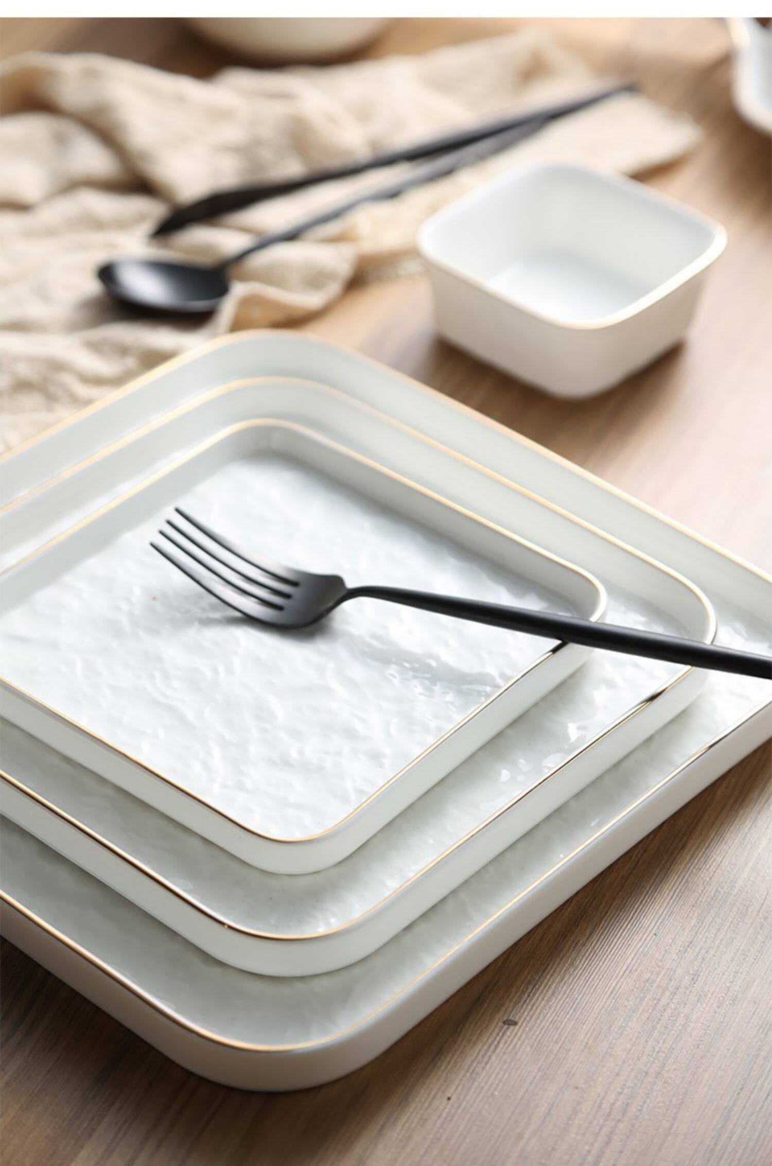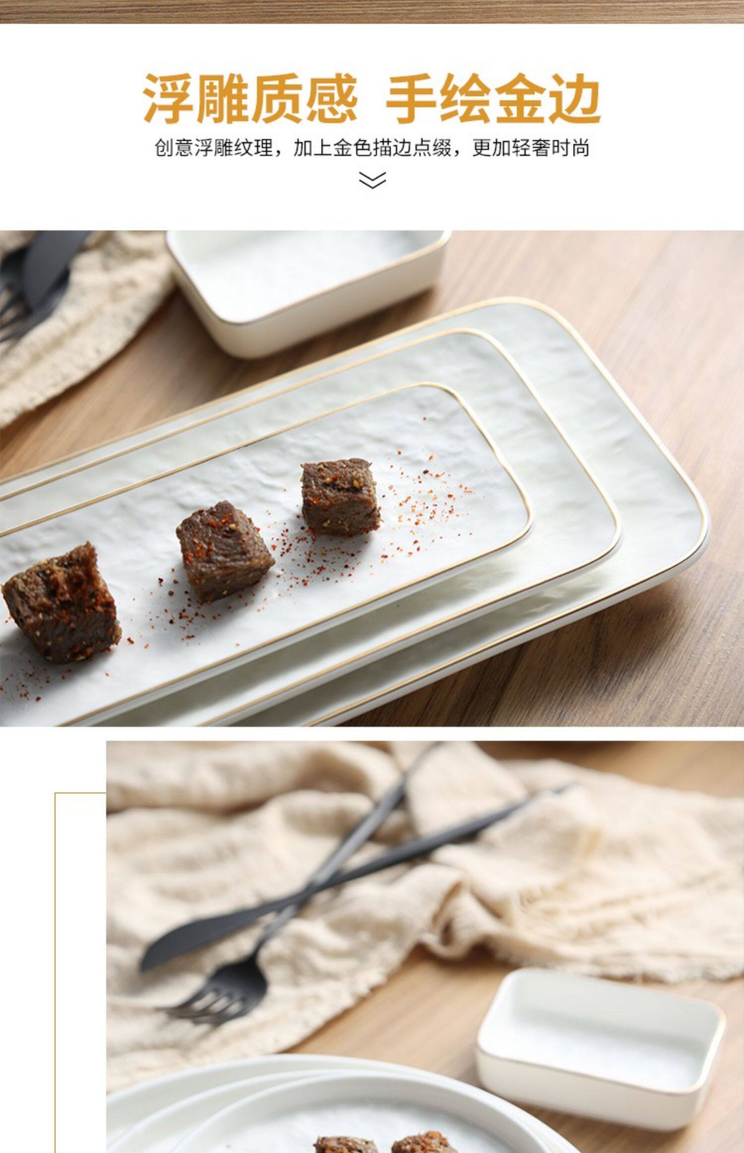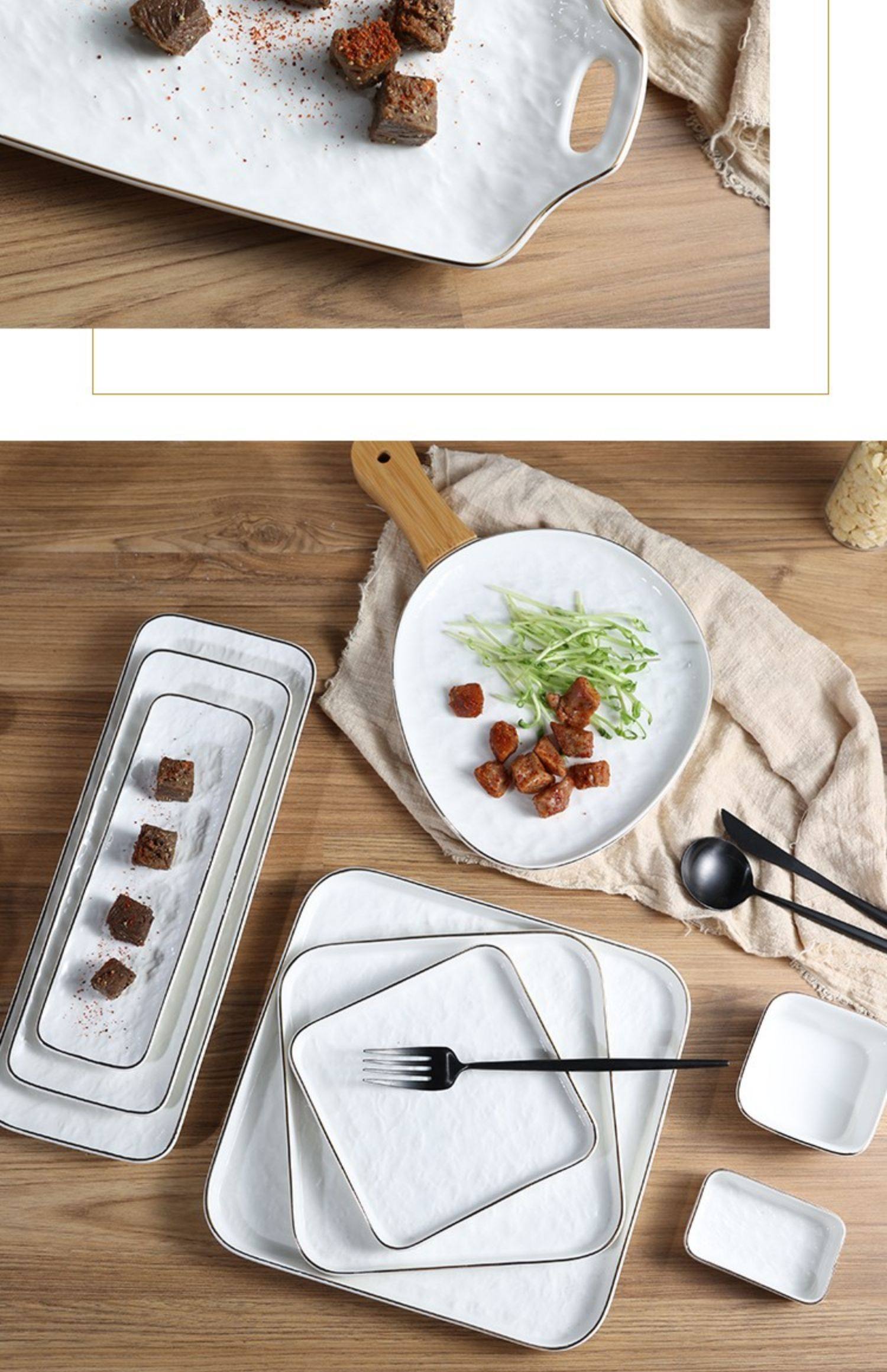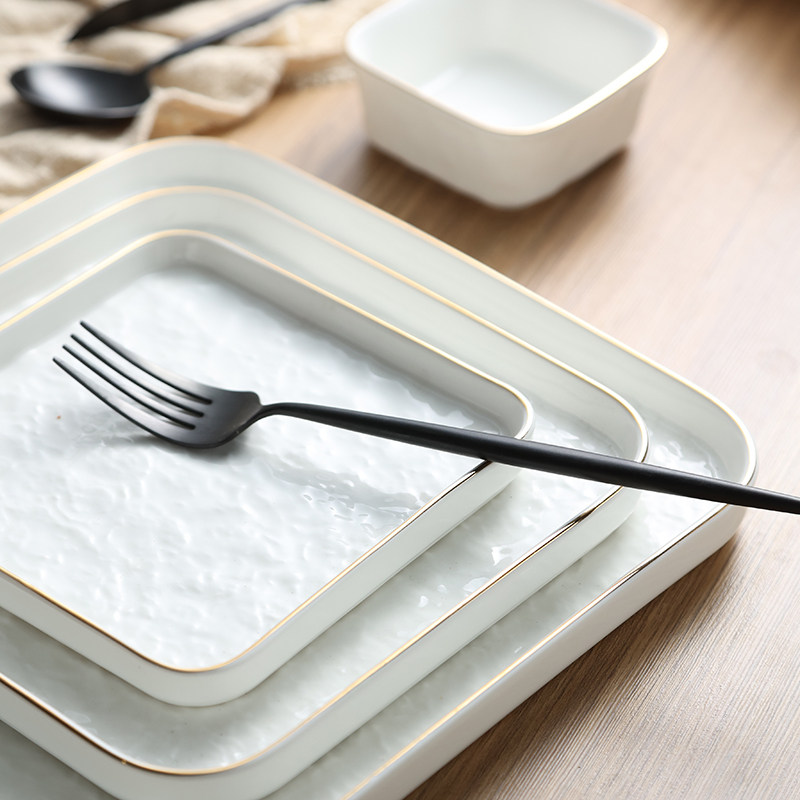 Современная простота легкая роскошная тарелка с рельефом с рельефом золотой рисовой тарелки творческий роман каменной рисунок квадратная тарелка пицца многоразовая тарелка