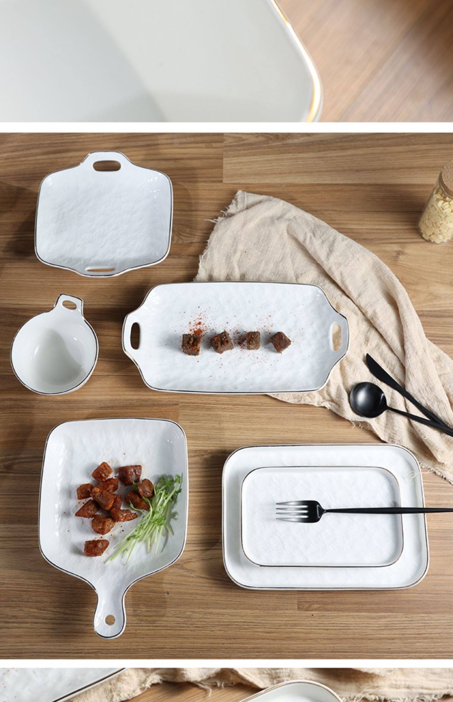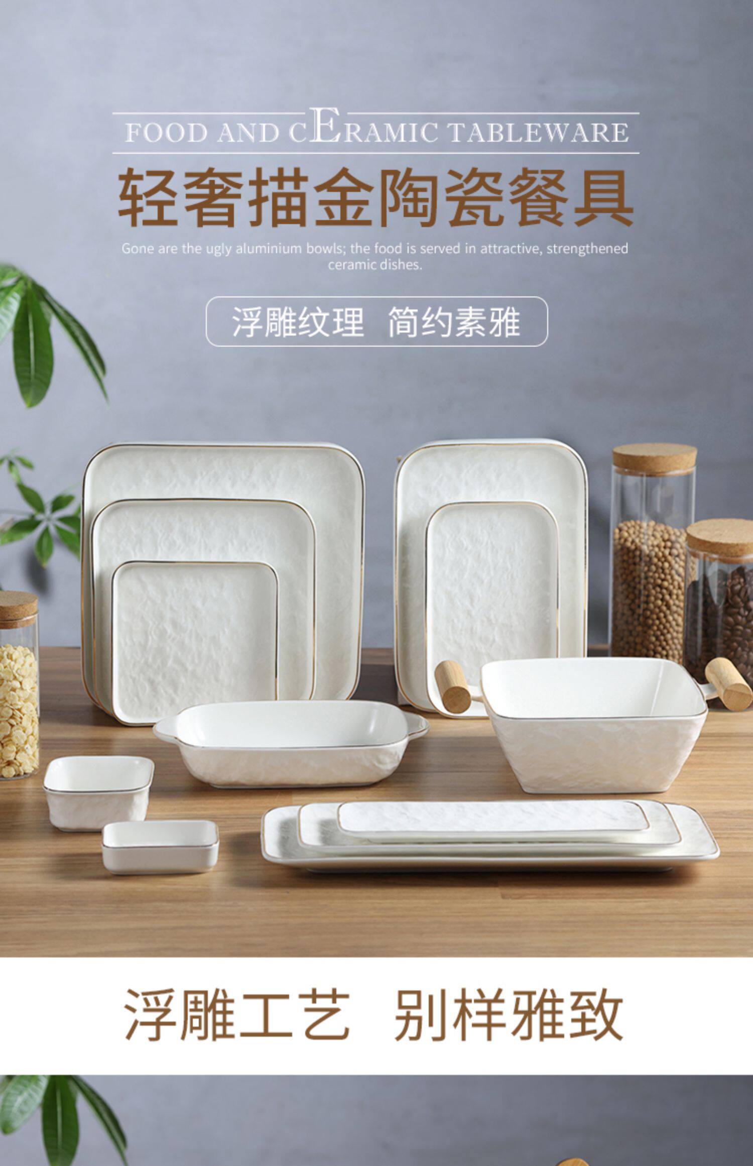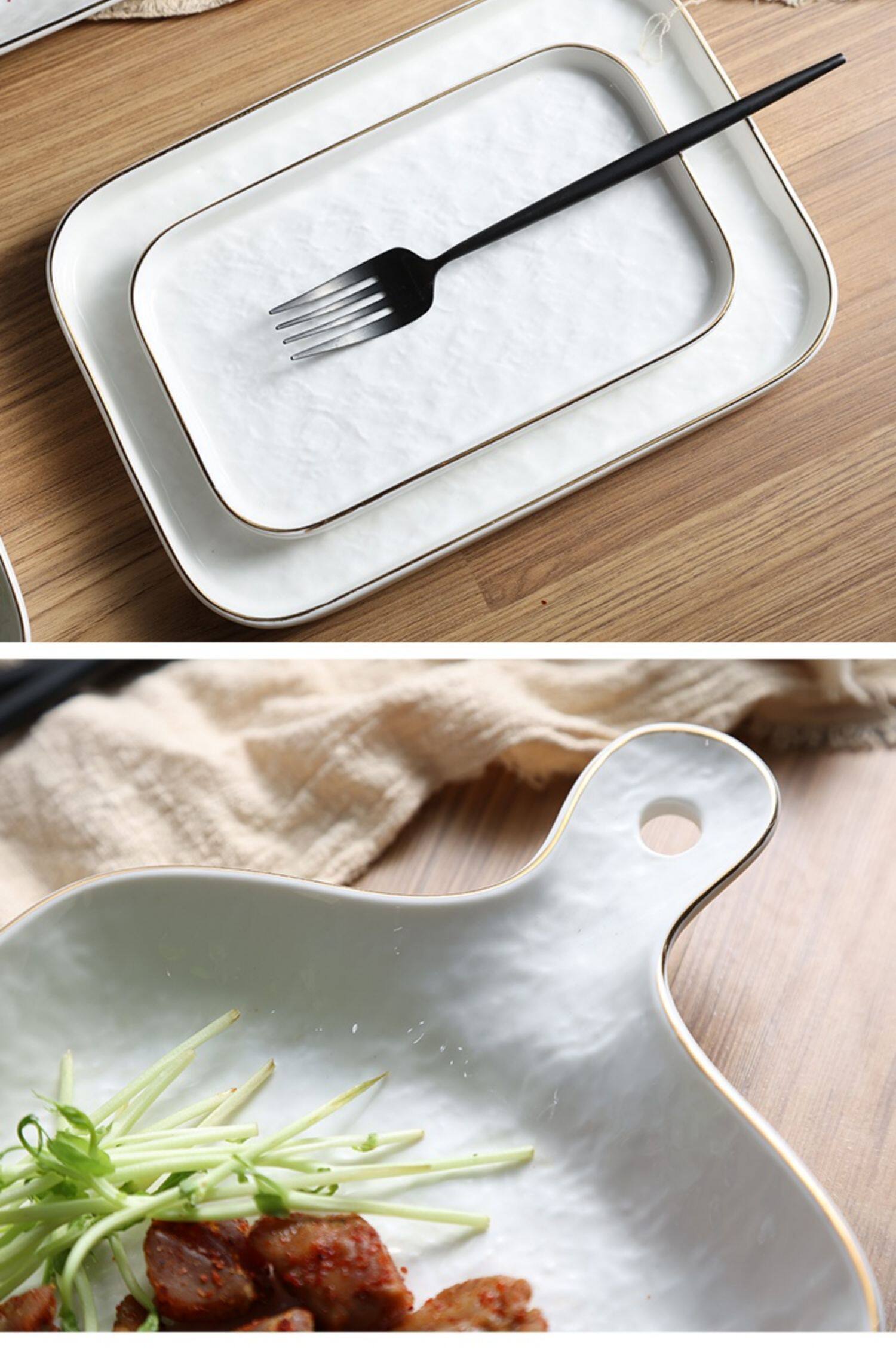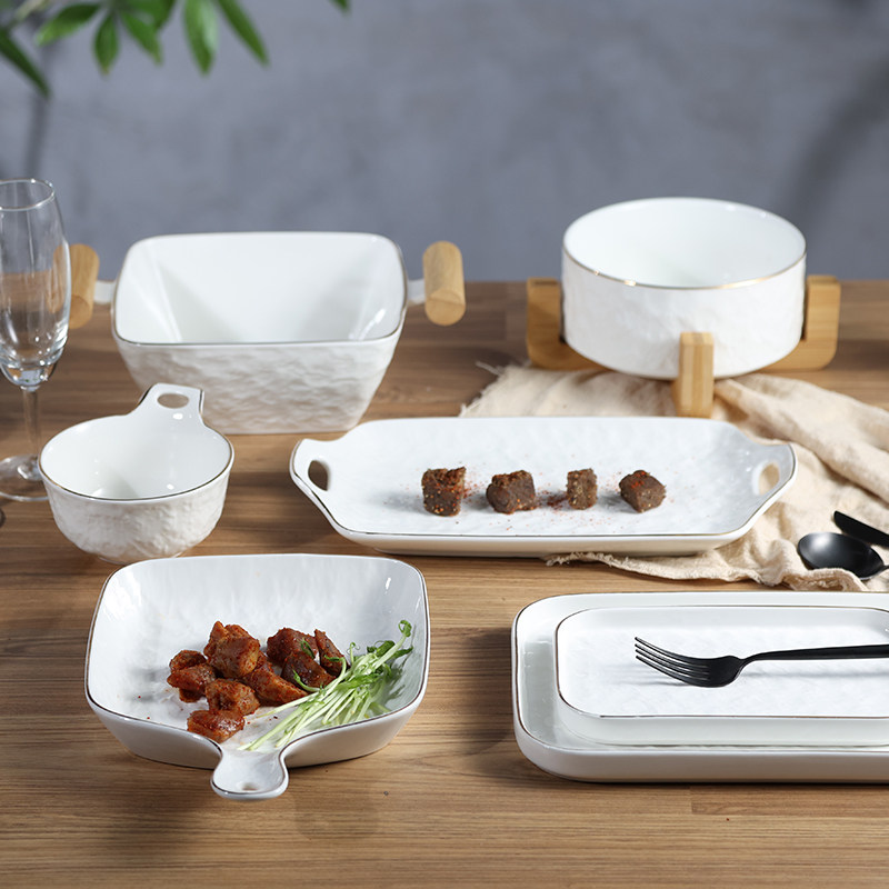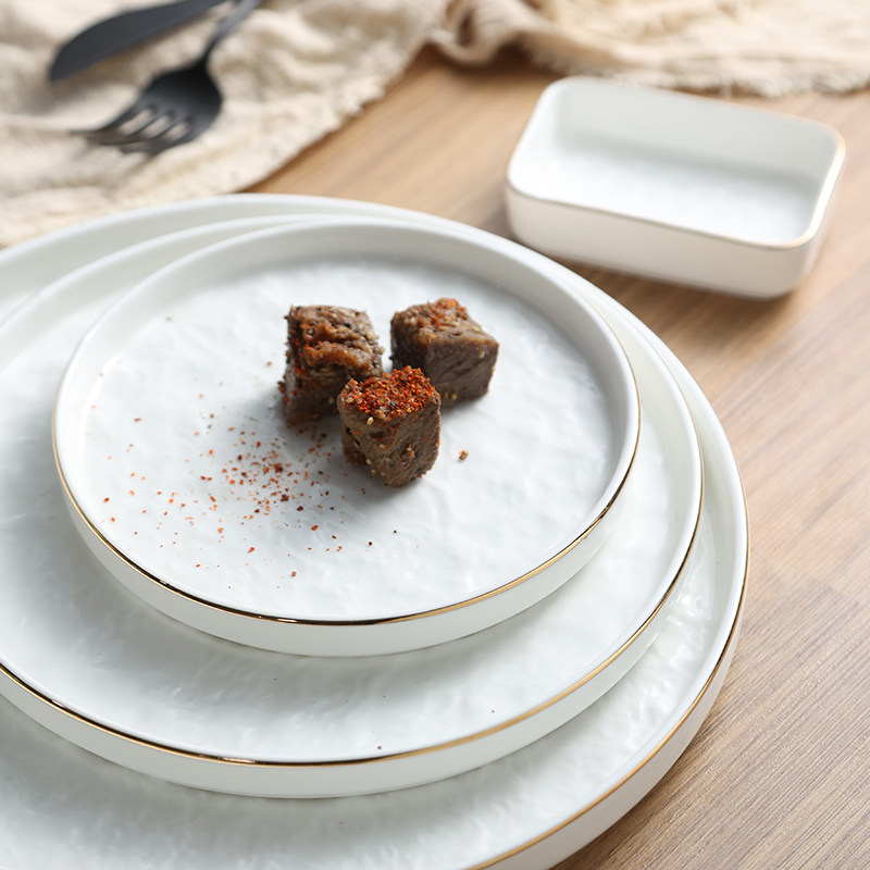 Современная простота легкая роскошная тарелка с рельефом с рельефом золотой рисовой тарелки творческий роман каменной рисунок квадратная тарелка пицца многоразовая тарелка