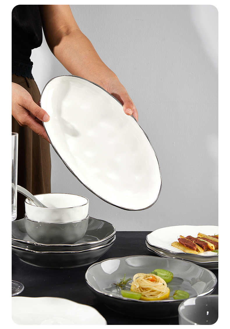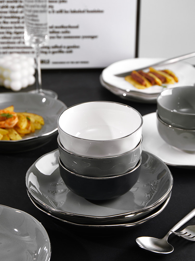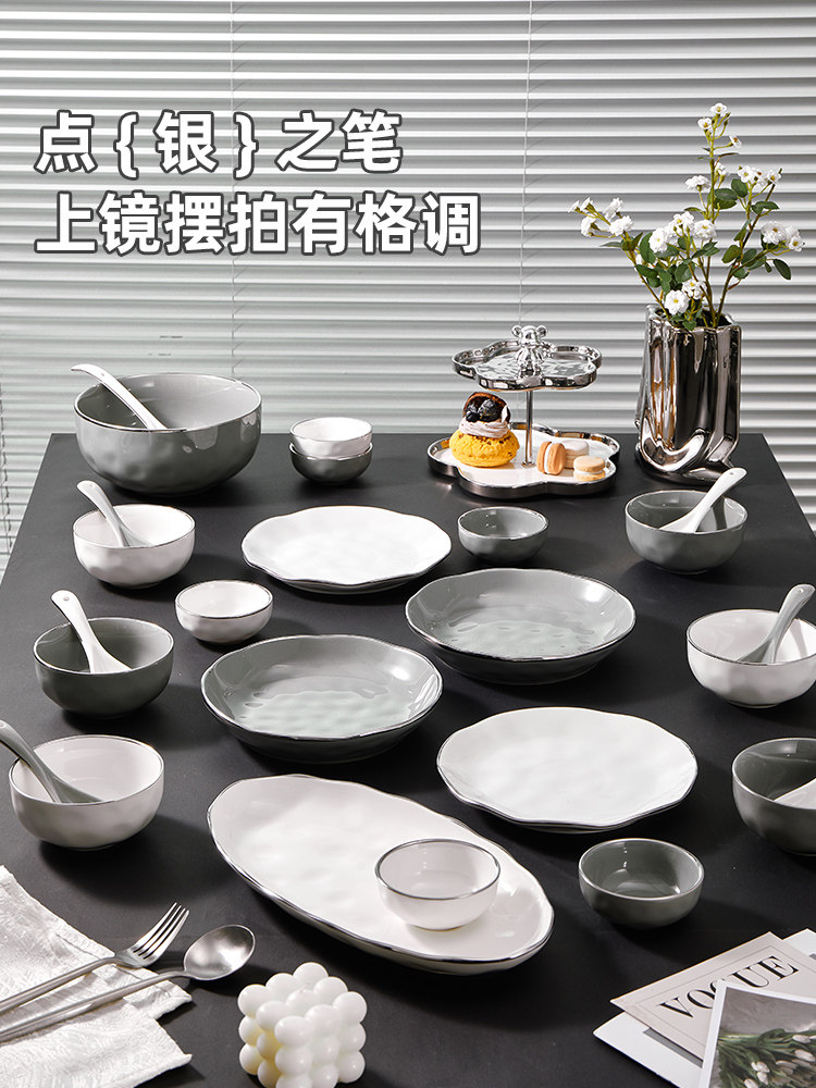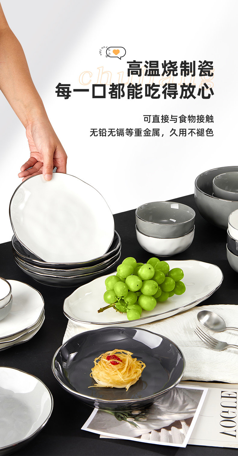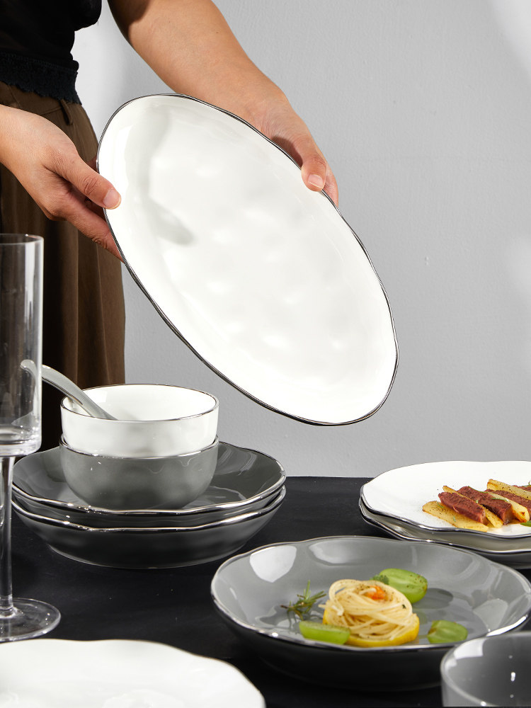 Брендовый комплект, керамическая современная посуда, обеденная тарелка, легкий роскошный стиль