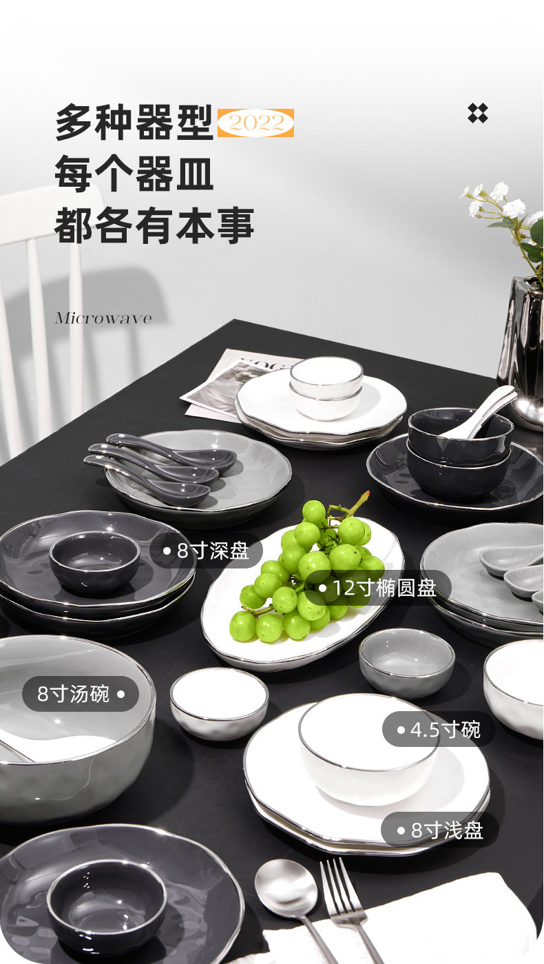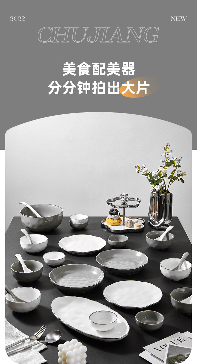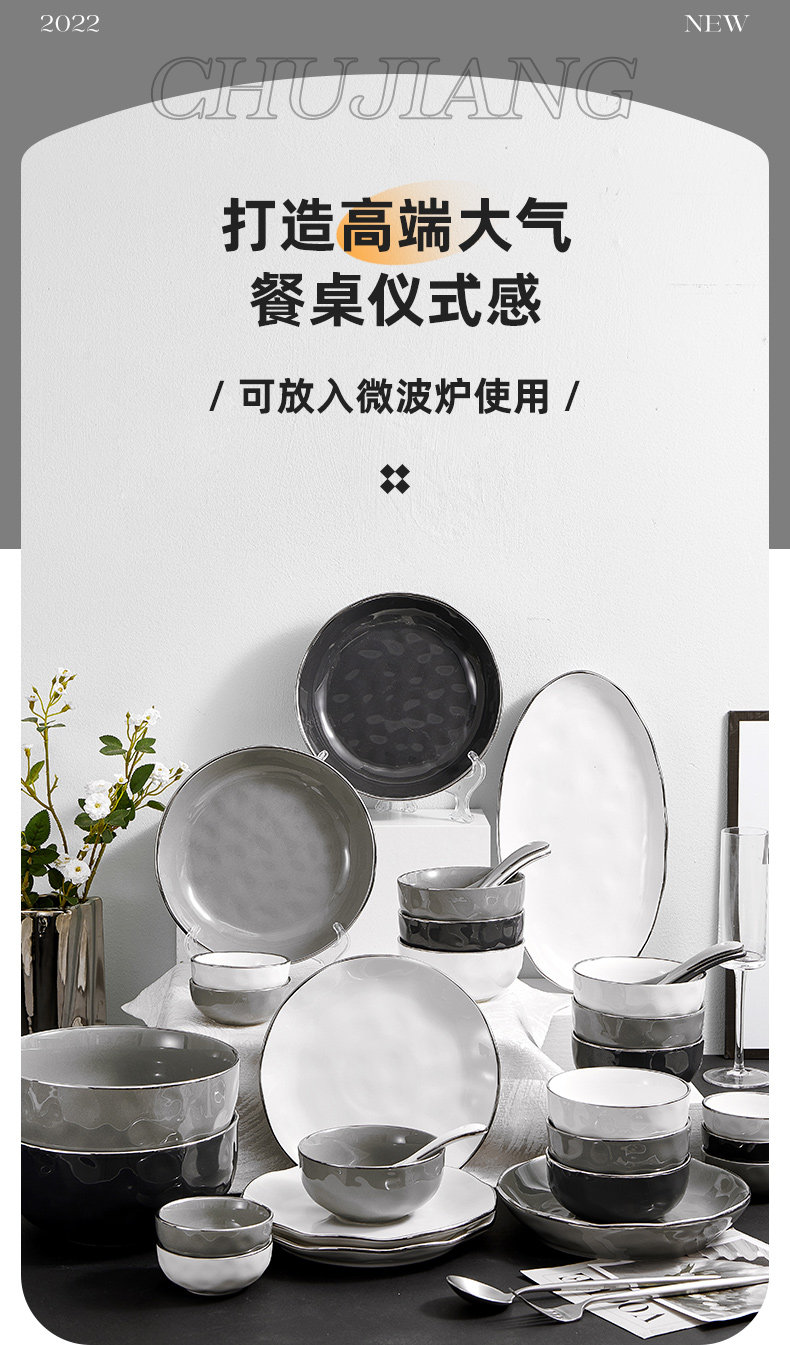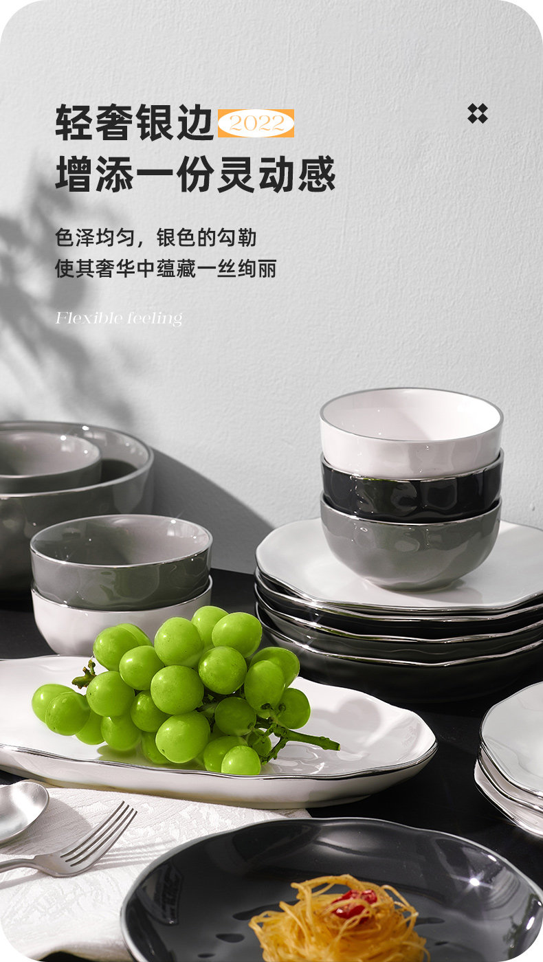 Брендовый комплект, керамическая современная посуда, обеденная тарелка, легкий роскошный стиль