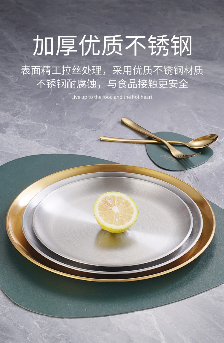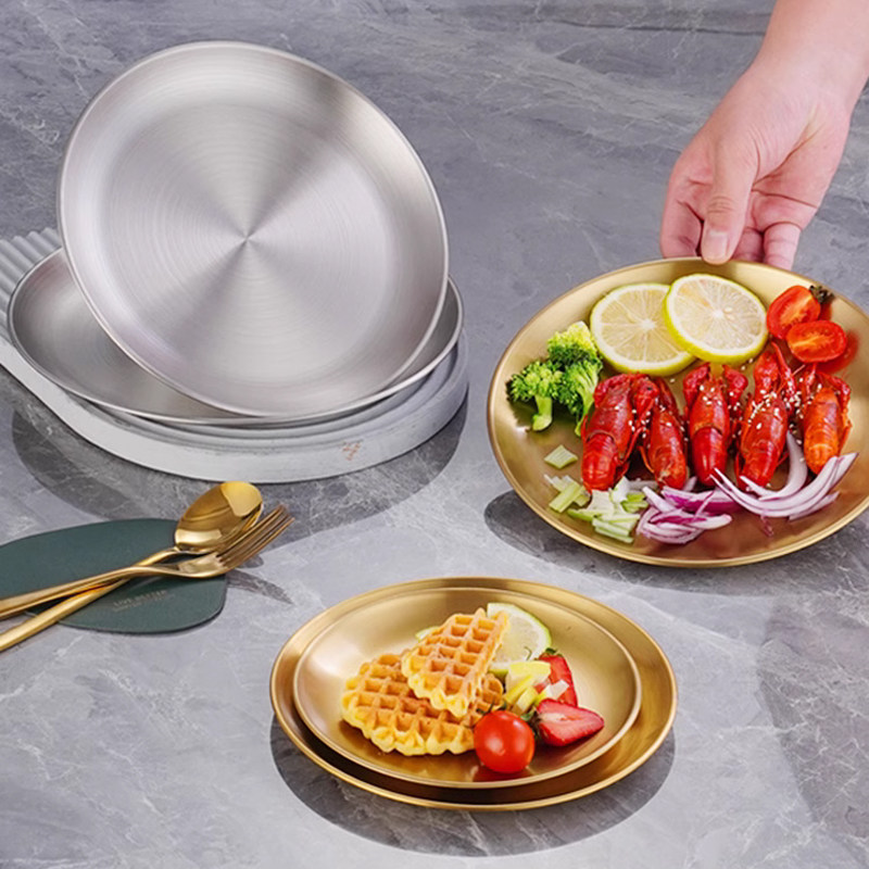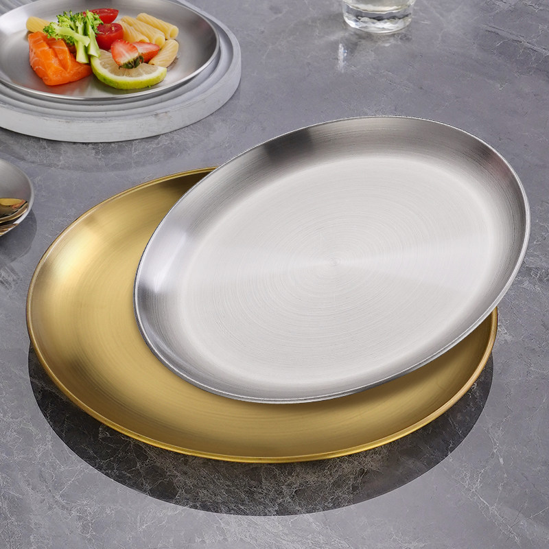 Корейская сталь из нержавеющей стали сгущенное блюдо для кости, мелкая тарелка кофейня Золотая поддона фрукты тарелка торт тарелка для выпечки