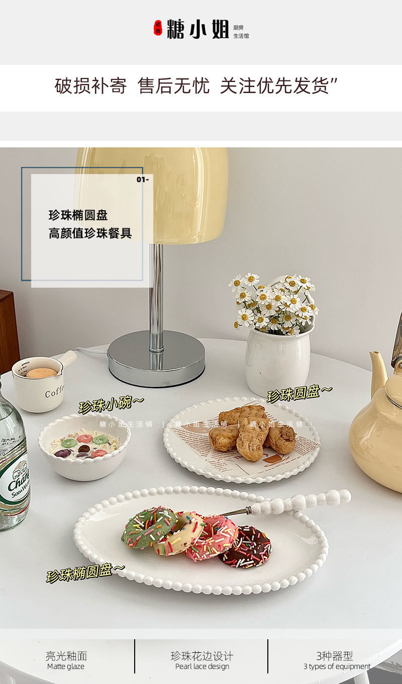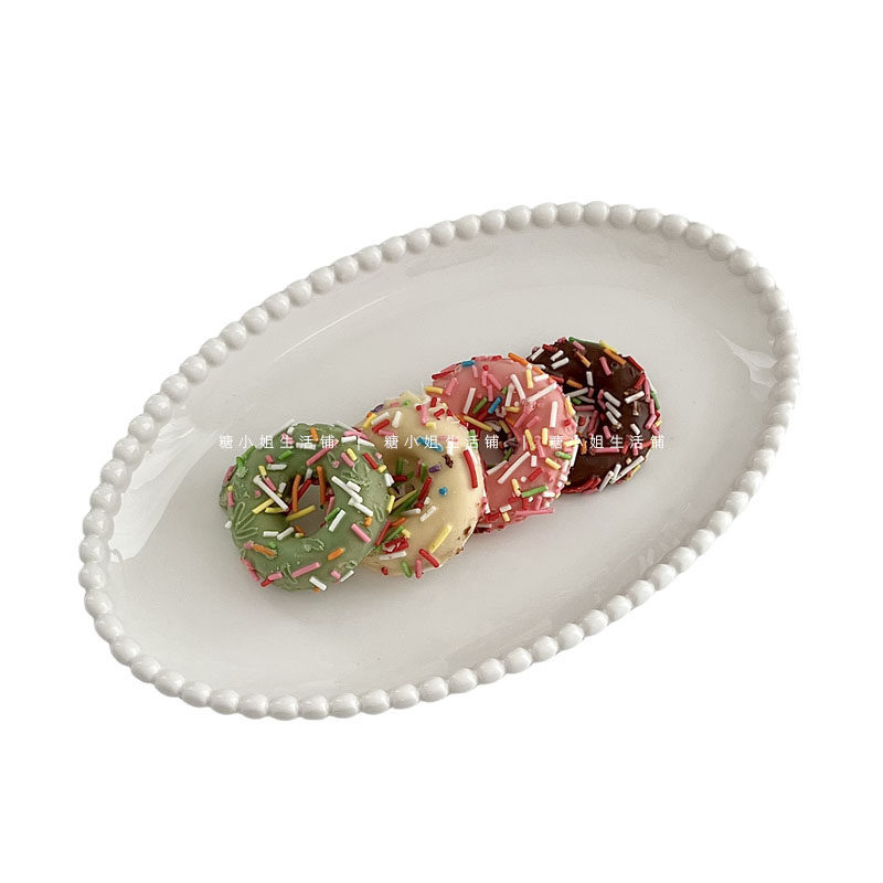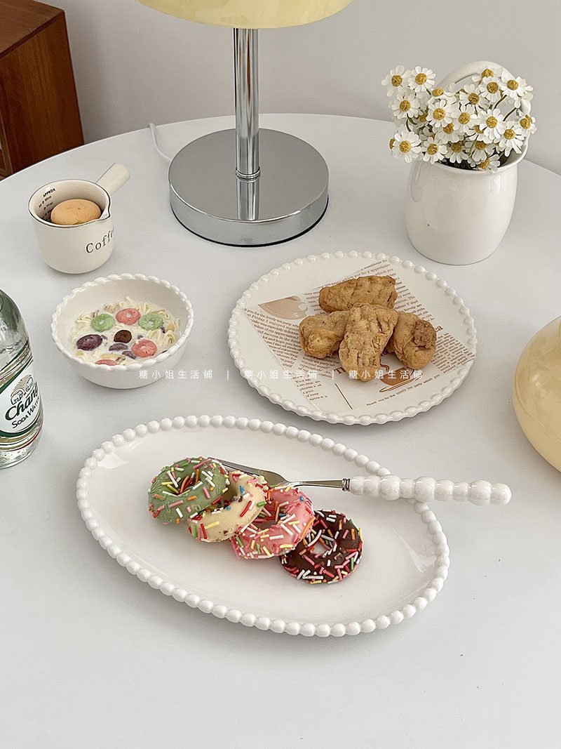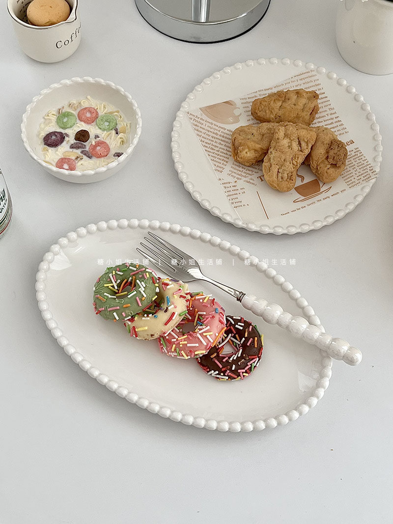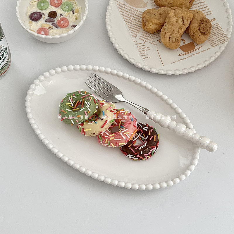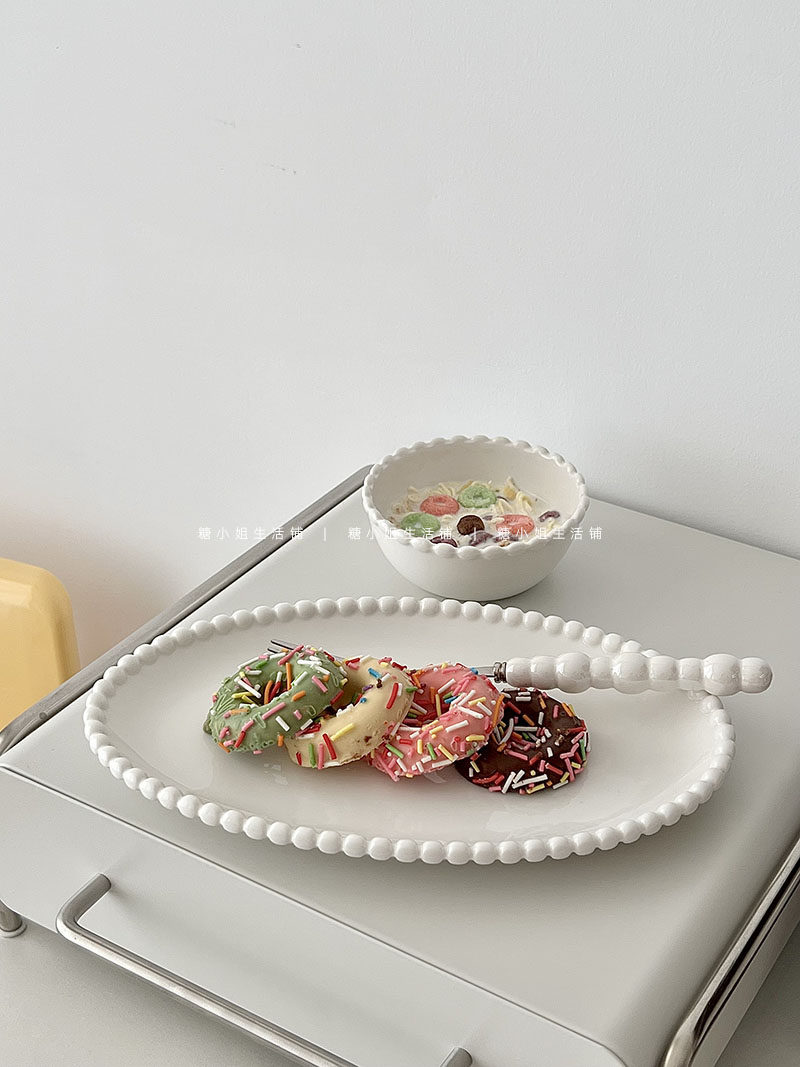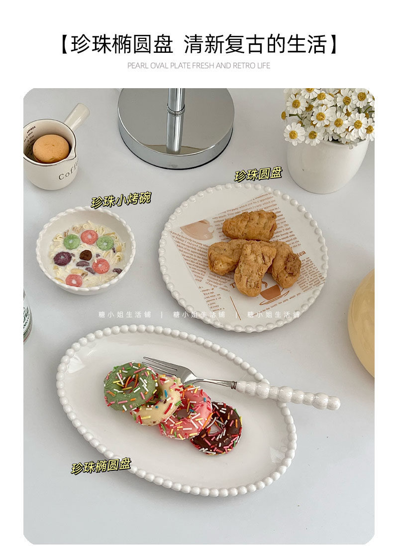 Miss Sugar Внешняя торговля Корейская ins Керамическая тарелка Жемчужная овальная тарелка Тарелка для завтрака Западная тарелка для послеобеденного чая Десертная тарелка