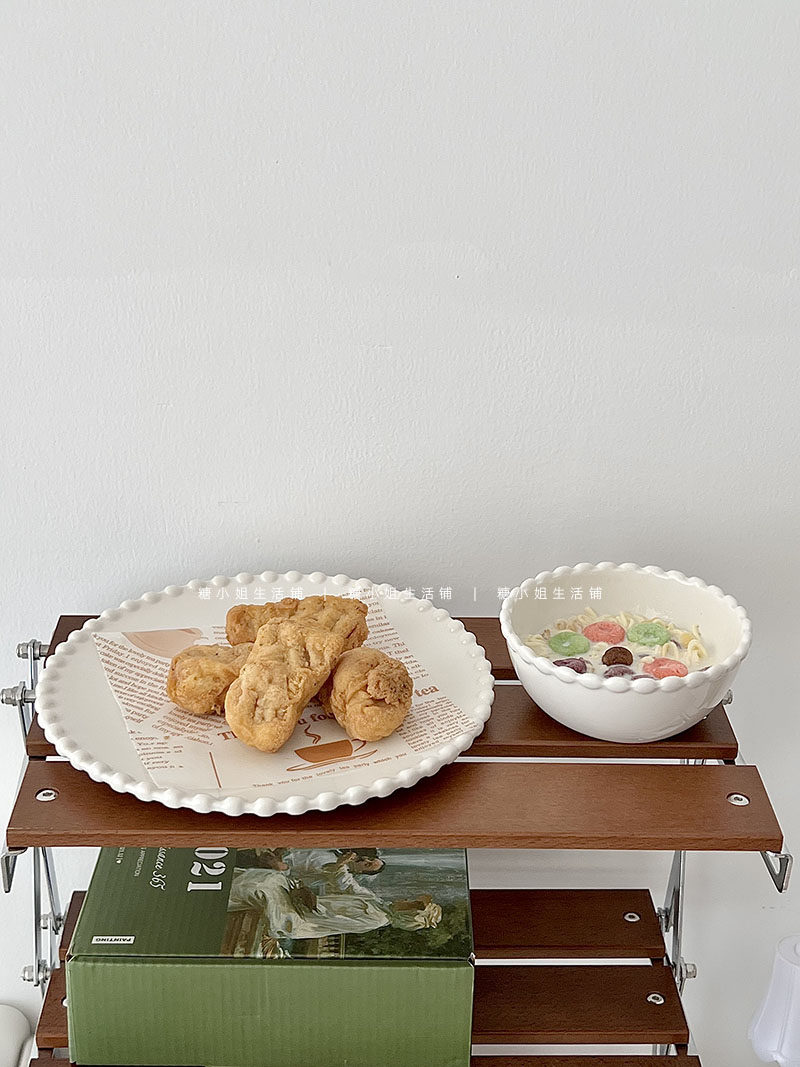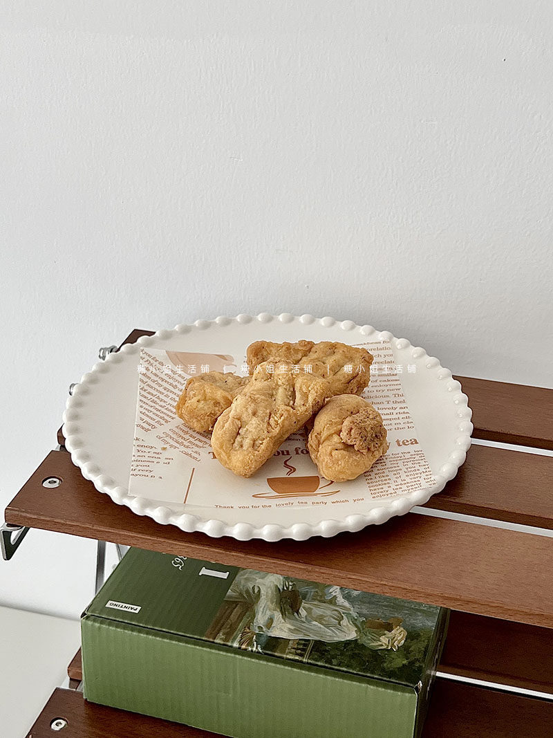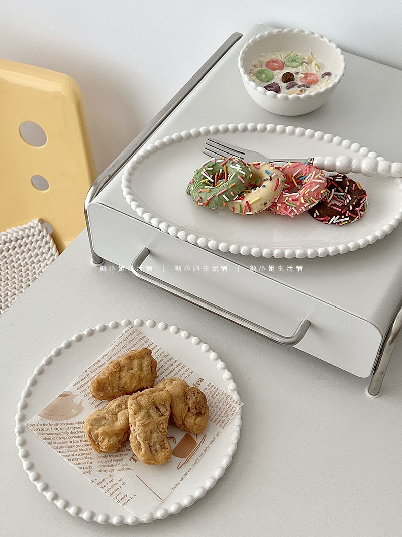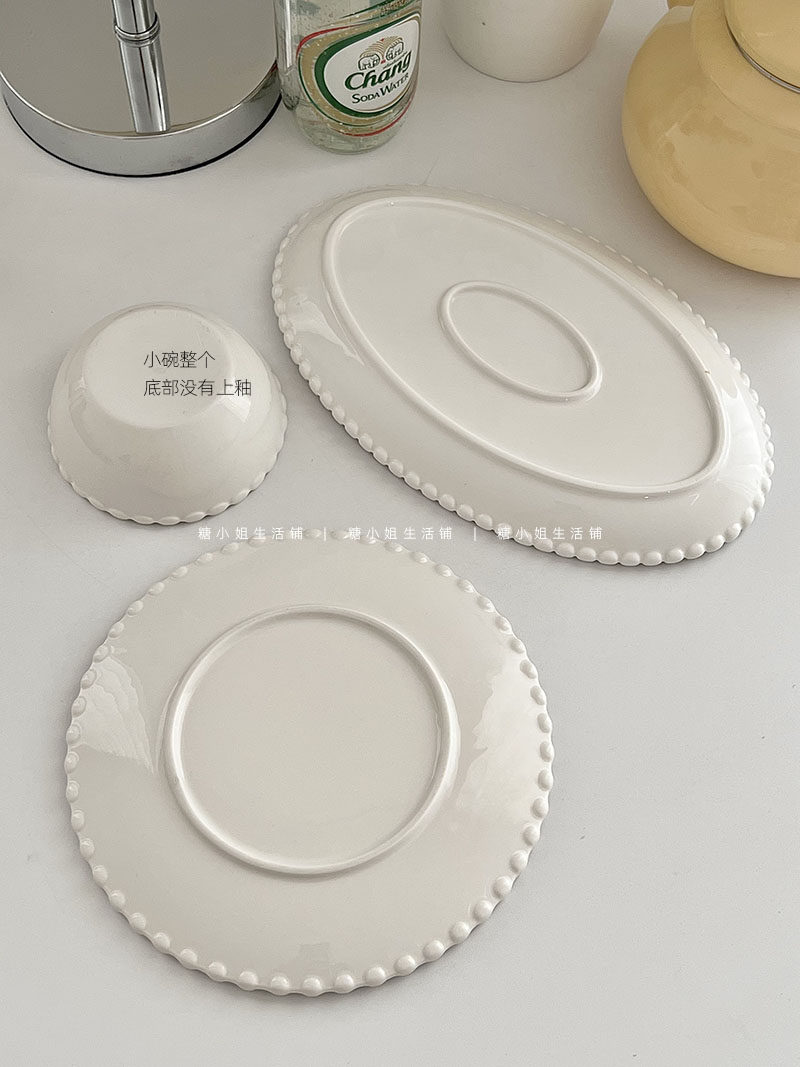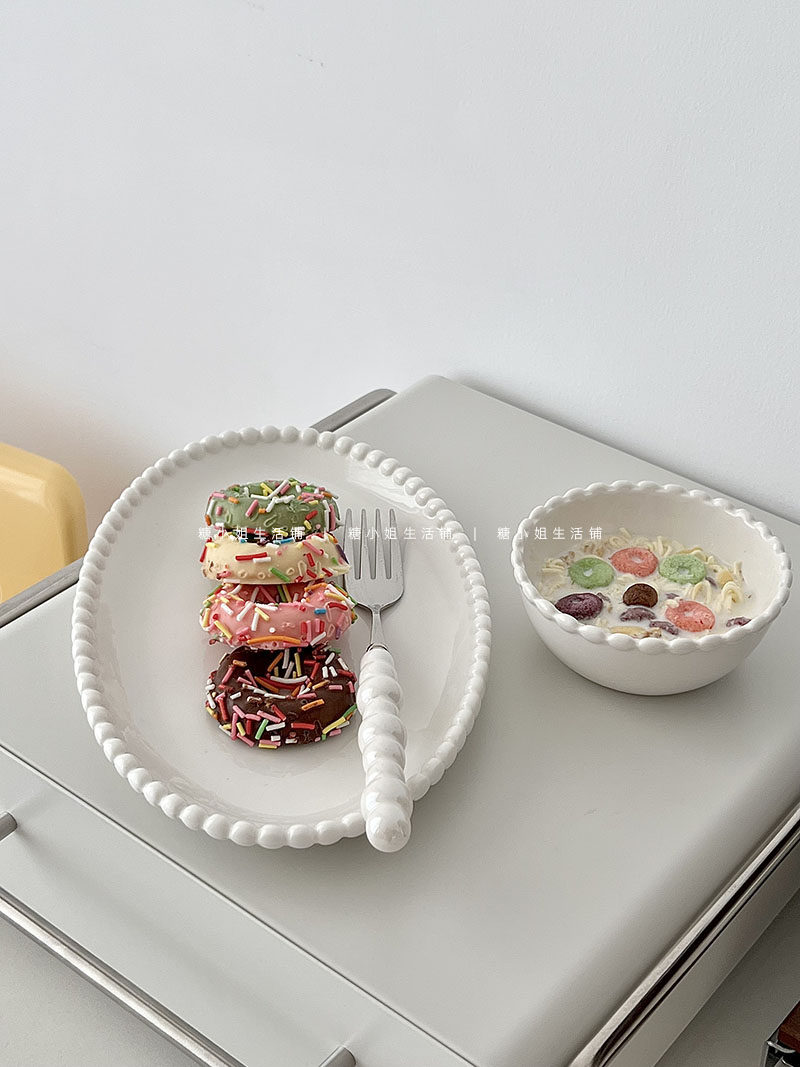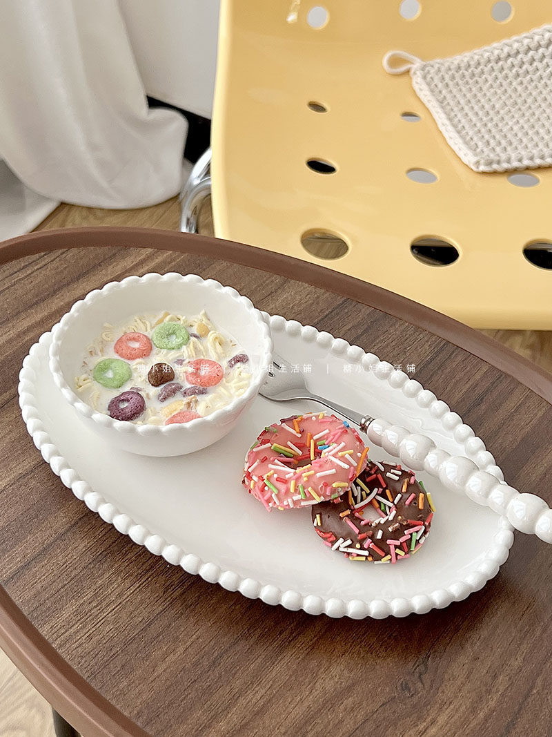 Miss Sugar Внешняя торговля Корейская ins Керамическая тарелка Жемчужная овальная тарелка Тарелка для завтрака Западная тарелка для послеобеденного чая Десертная тарелка