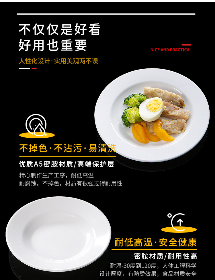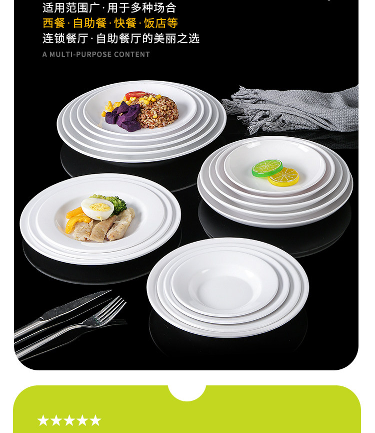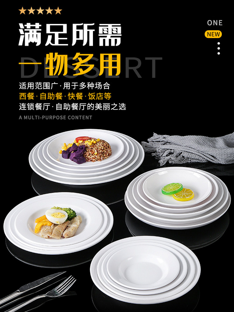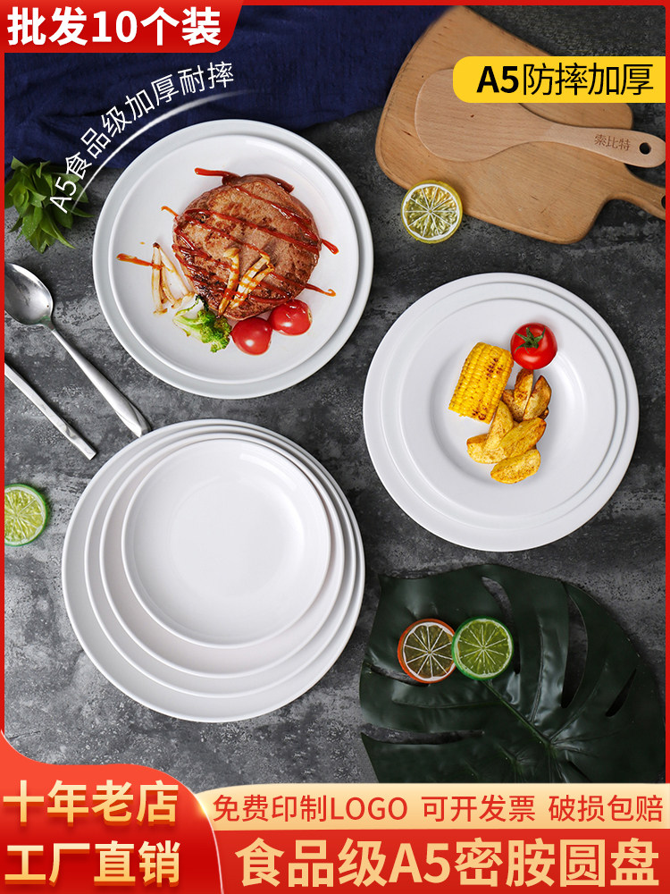 Бантаминовая посуда белая тарелка пластиковые диски коммерческие отели имитация фарфорового блюда ресторан специальное блюдо из глубокого диска блюдо