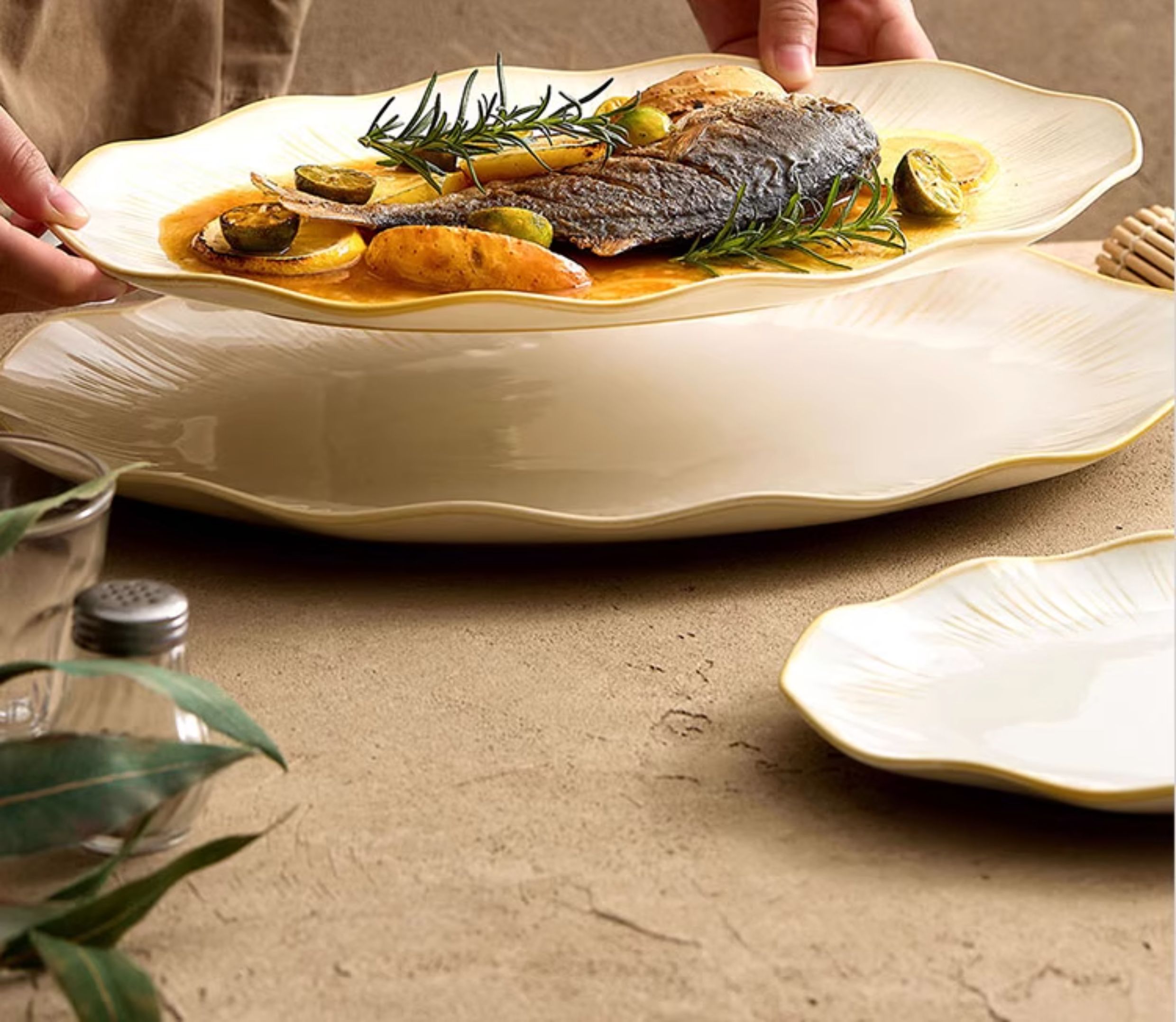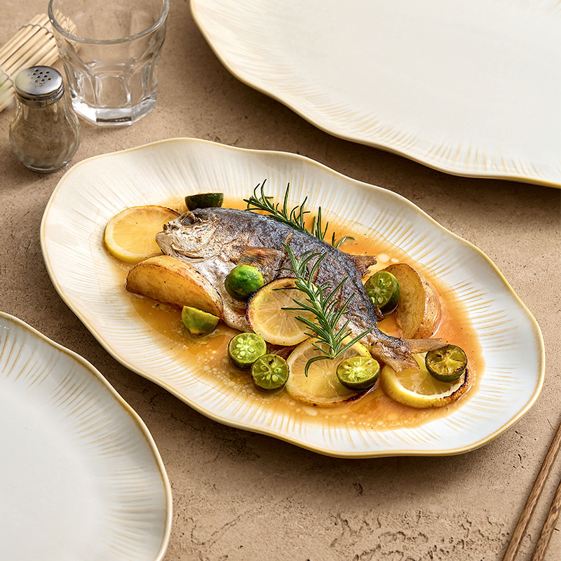 Рыбная тарелка с листьями лотоса для йогурта, бытовая рыбная тарелка на пару, большая керамическая тарелка Dehua, новинка 2025 года, высококачественная обеденная тарелка