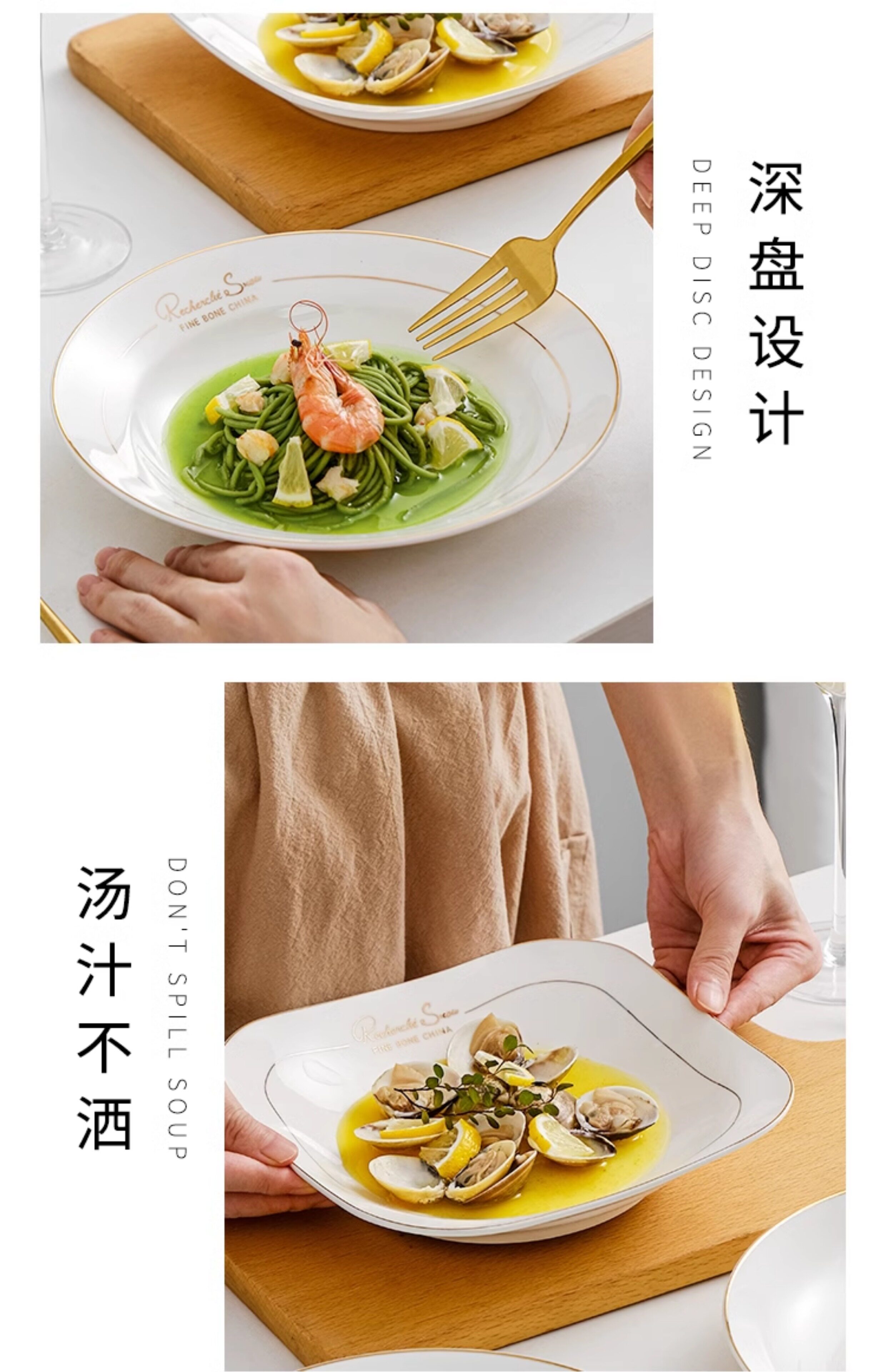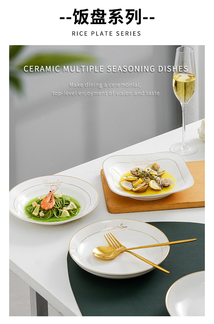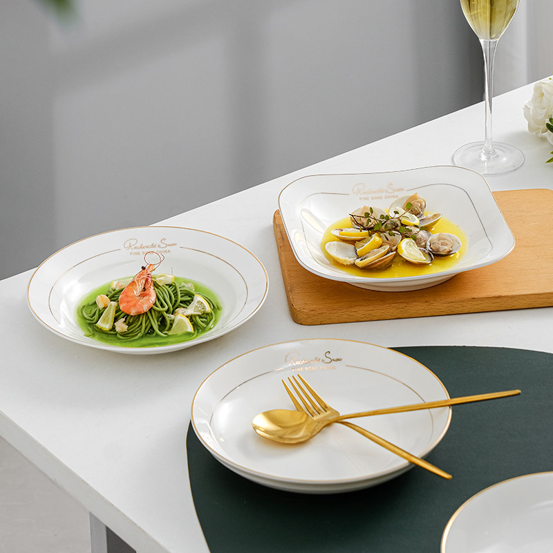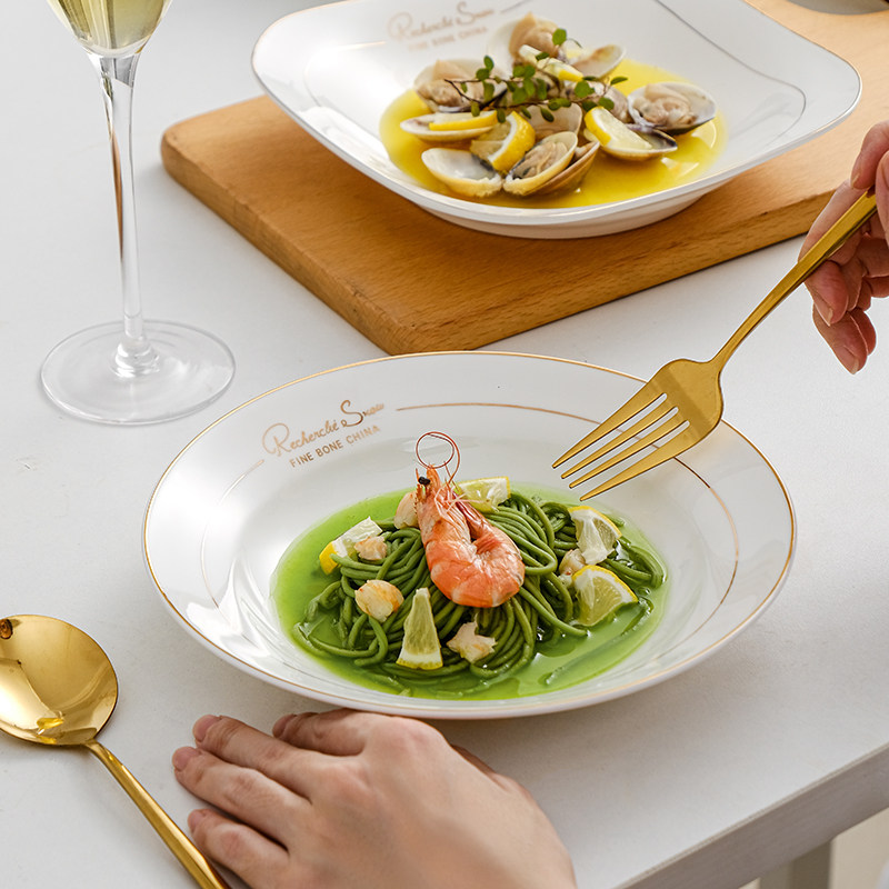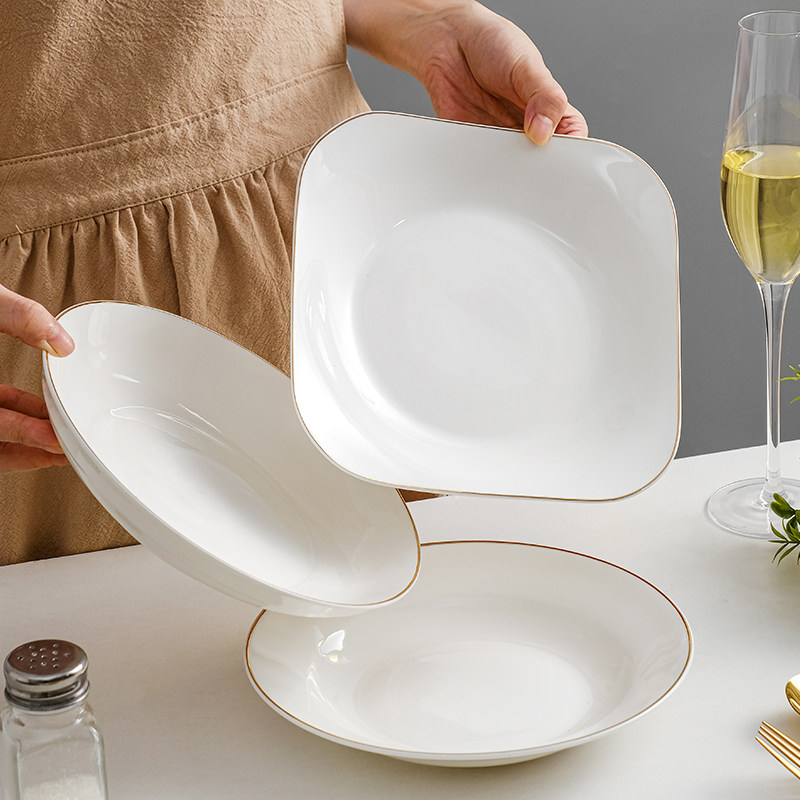 Тарелка овощной тарелки, тарелка, дома, используйте глубокие керамические креативные блюда, углубляют золотую столовую, рисовую тарелку, рисовая тарелка, гнездо гнездо