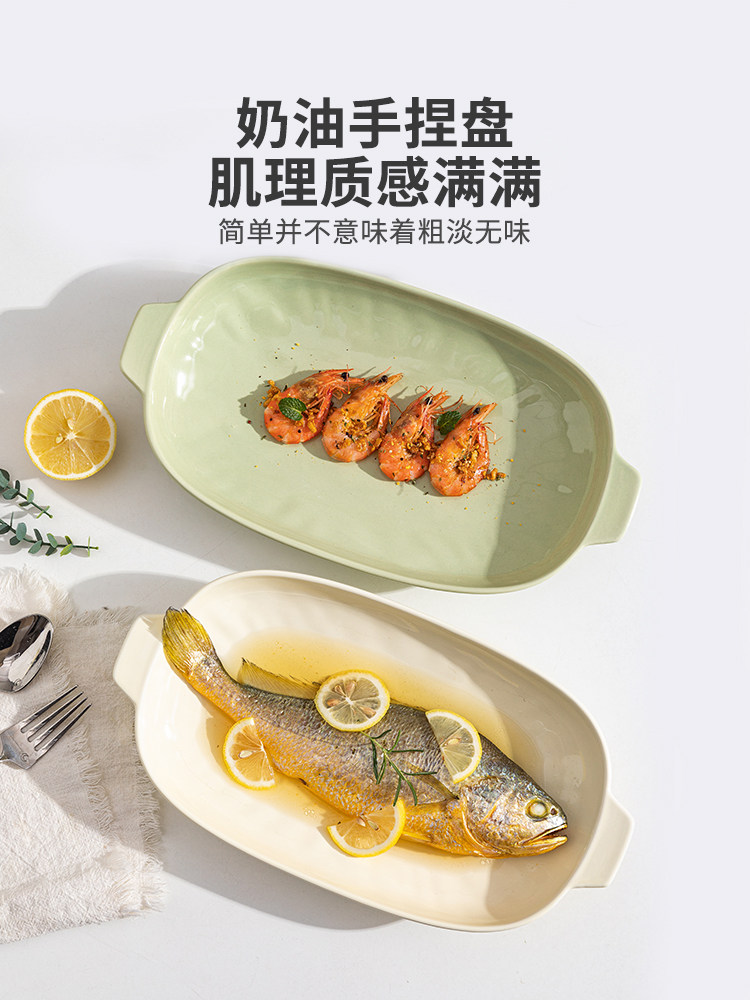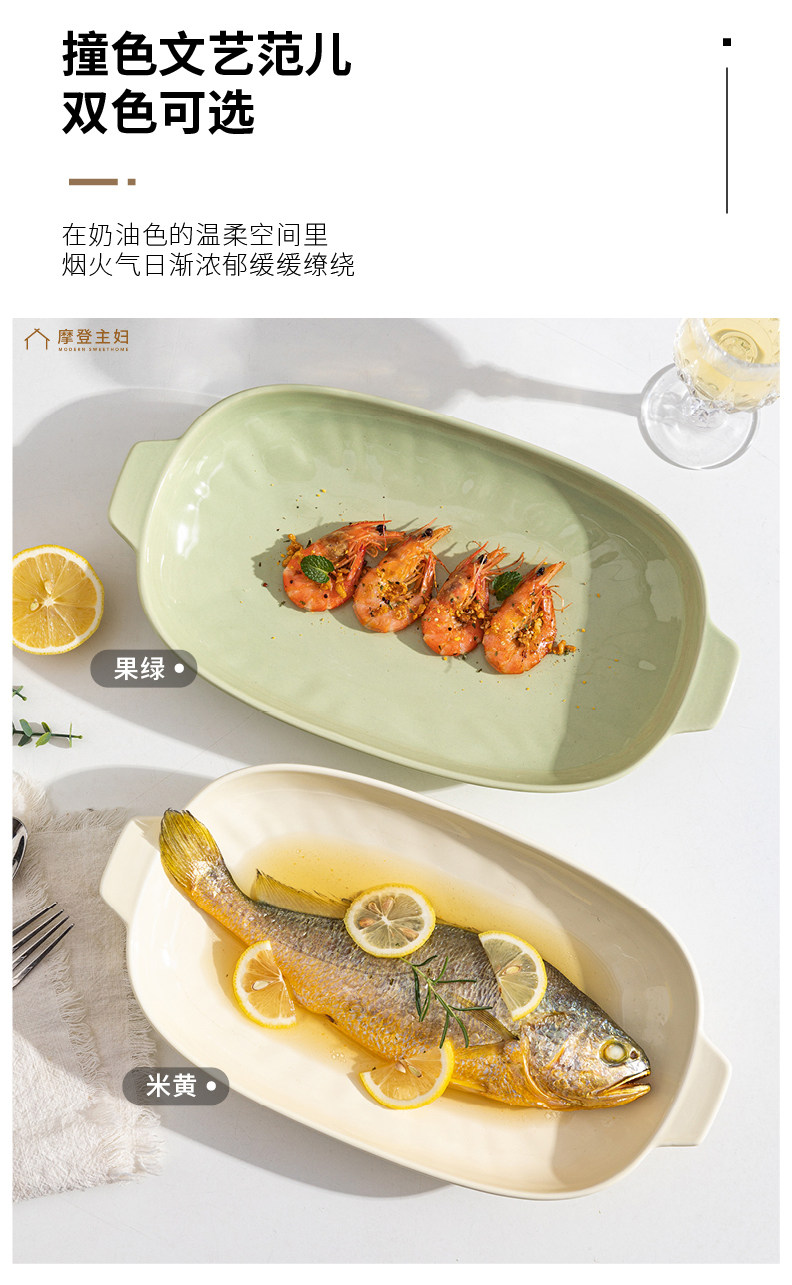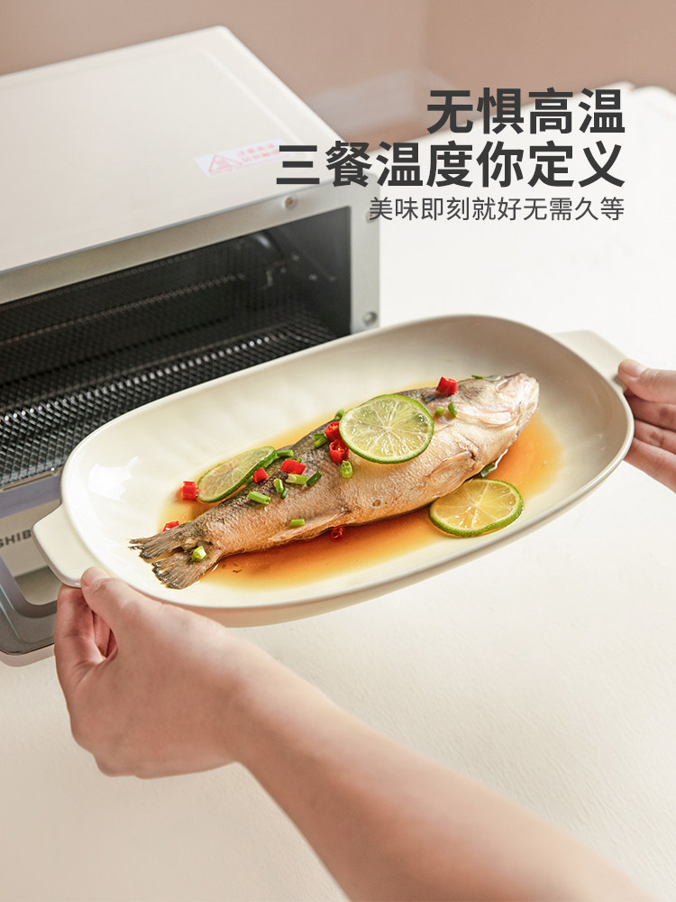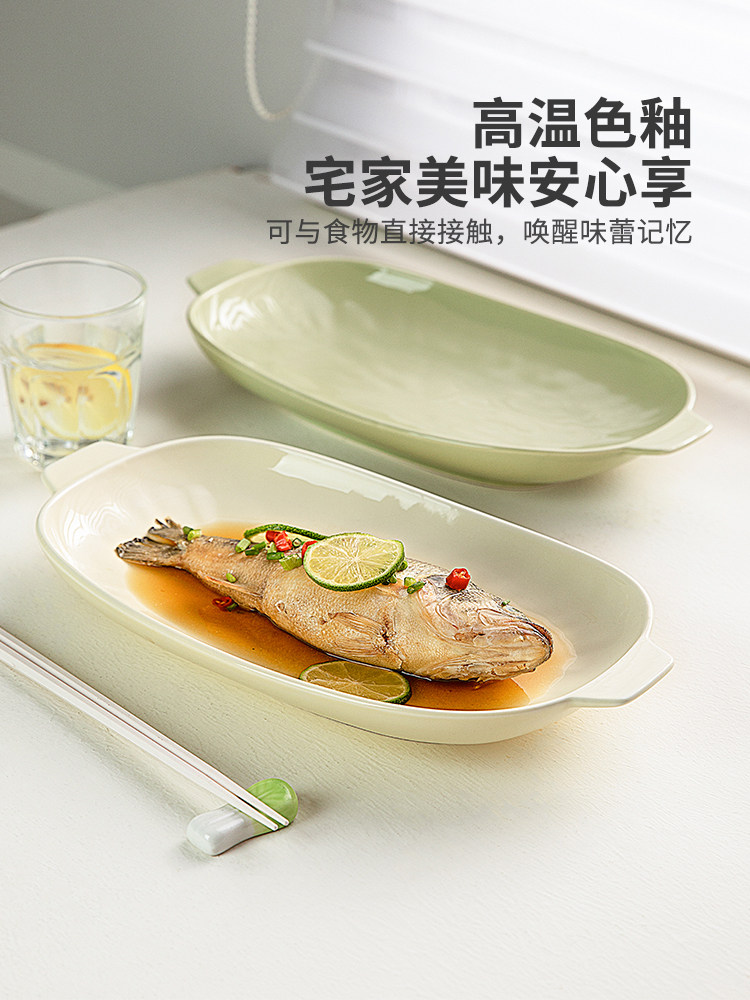摩登主妇 Двух -пластина для рыбы домохозяйство 2024 Новая на пару на пару рыбной тарелки с высоким содержанием датчика Сваренная посуда овальная рыба блюдо