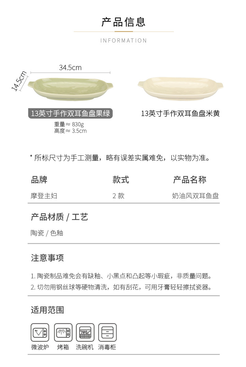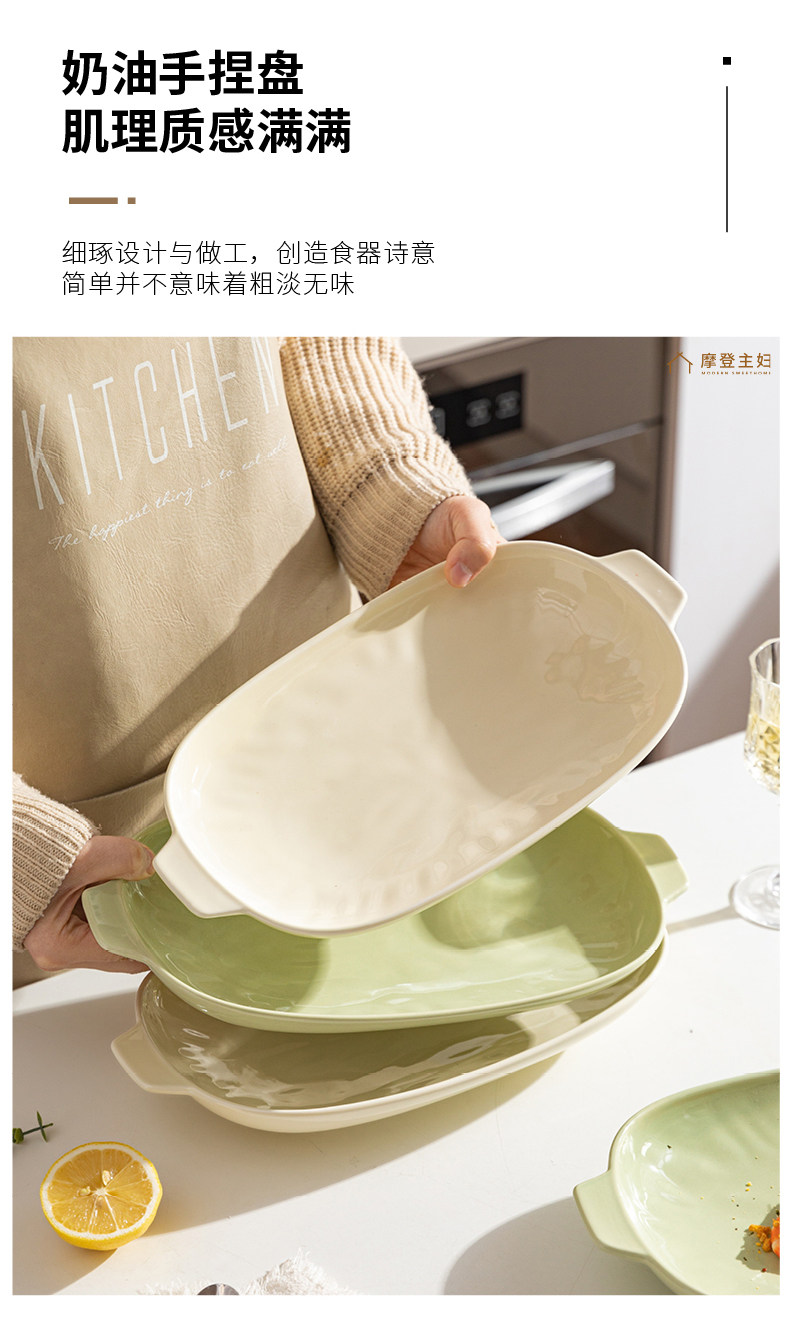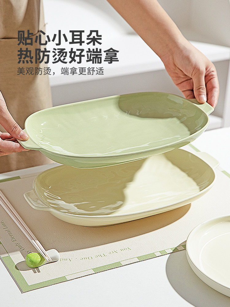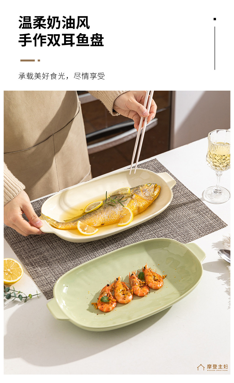 摩登主妇 Двух -пластина для рыбы домохозяйство 2024 Новая на пару на пару рыбной тарелки с высоким содержанием датчика Сваренная посуда овальная рыба блюдо