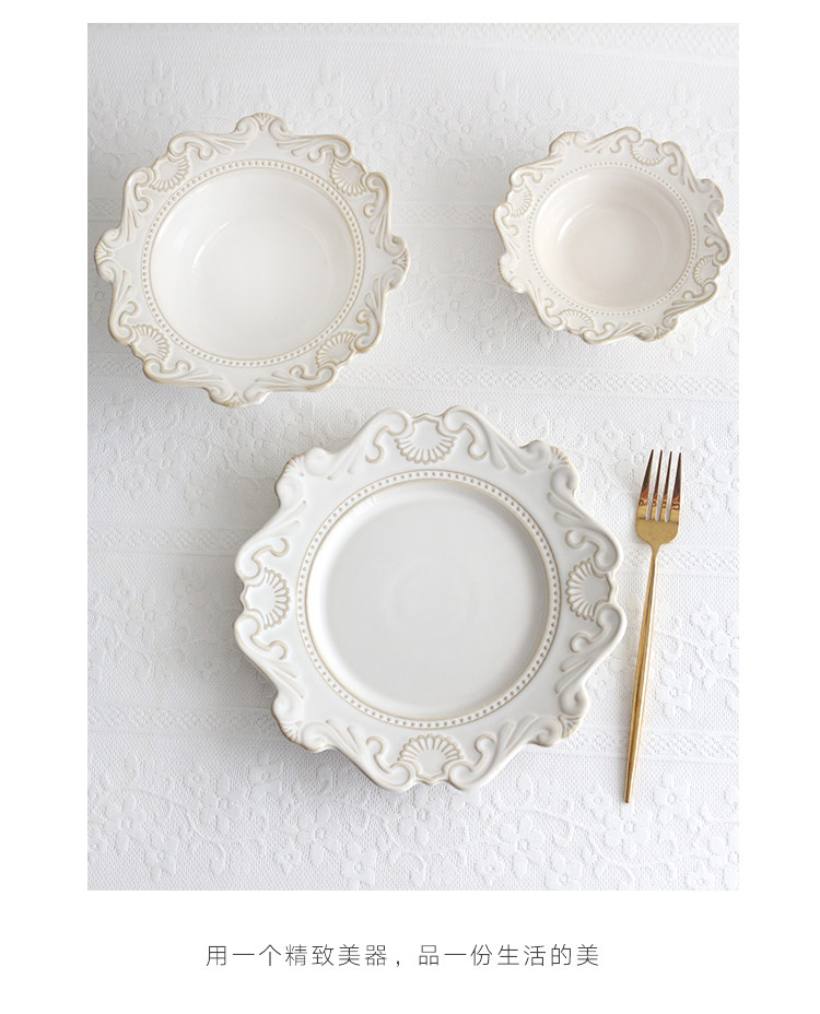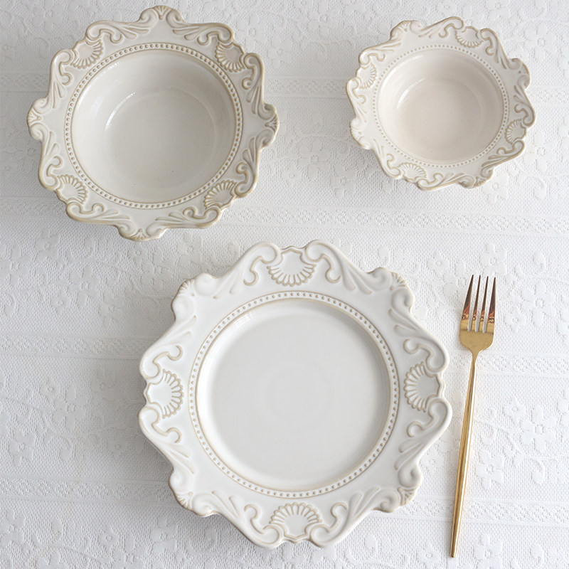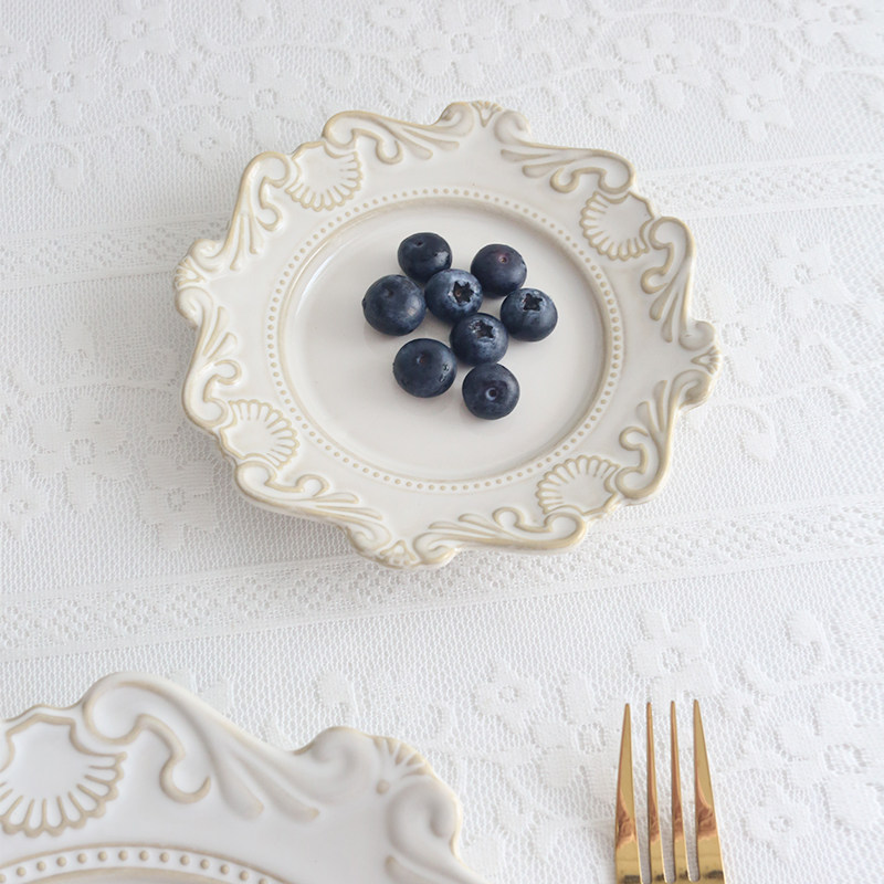 Круглая тарелка с тиснением цветка во французском европейском стиле, тарелка для еды в кубинском стиле в стиле барокко, тарелка для западной еды, тарелка для торта, вставка для банкетной тарелки