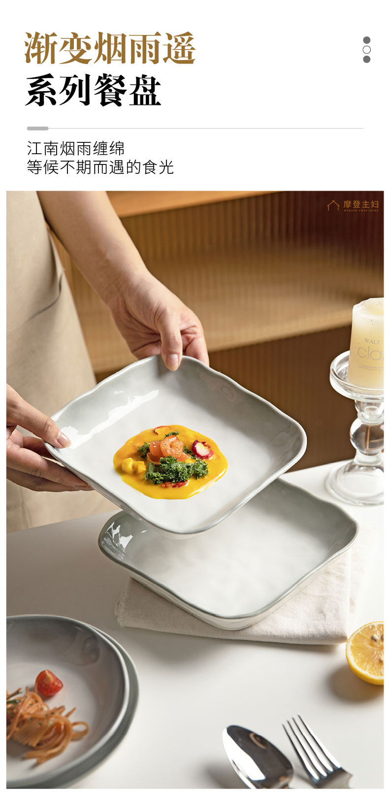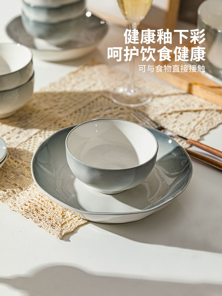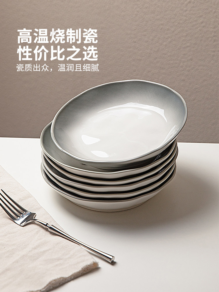 摩登主妇 Дымное дождь и дождь подглазе окрашенная керамическая тарелка Домашнее блюдо 2025 Новая посуда столовая блюдо глубокая тарелка