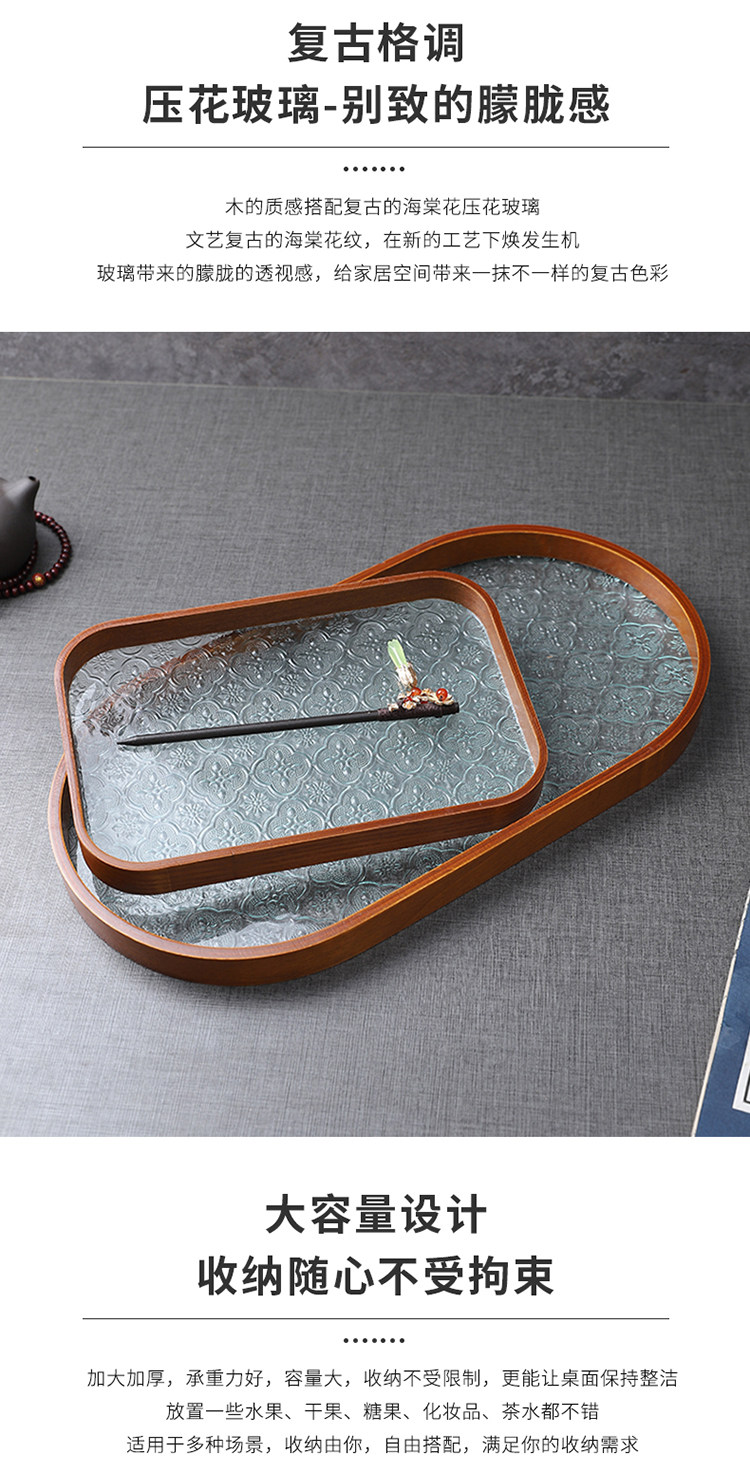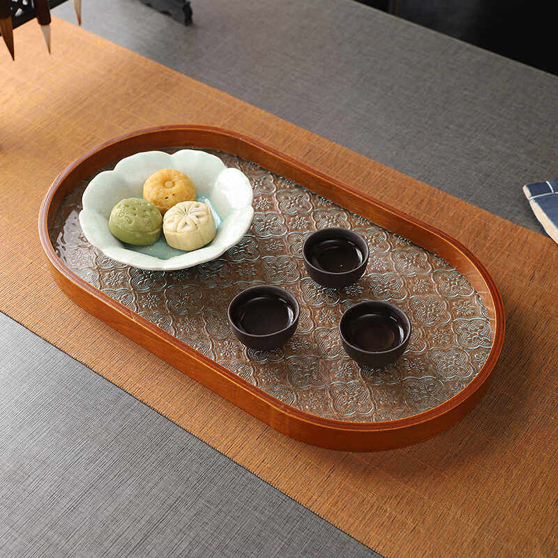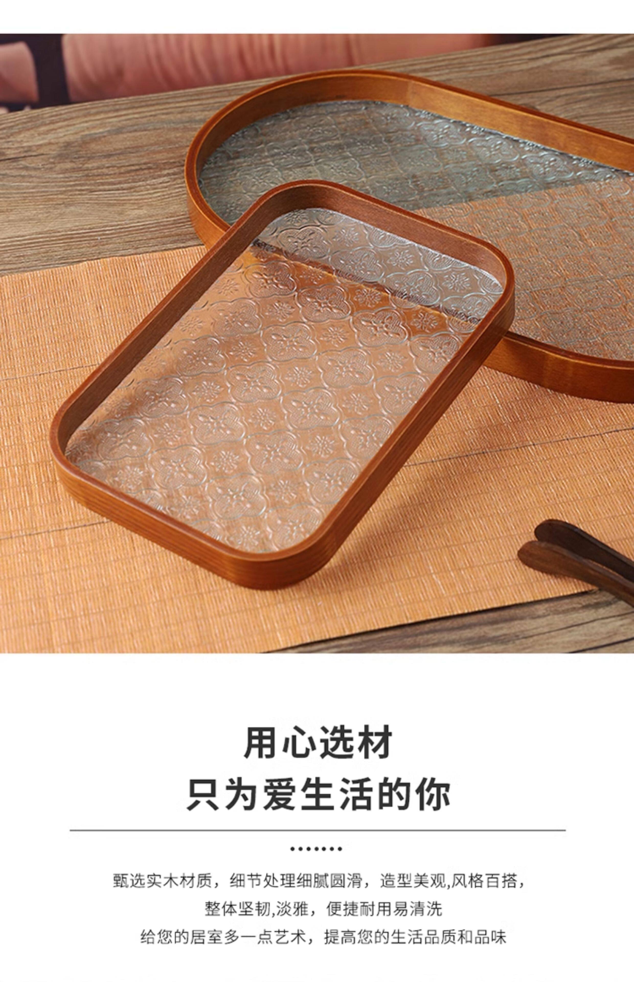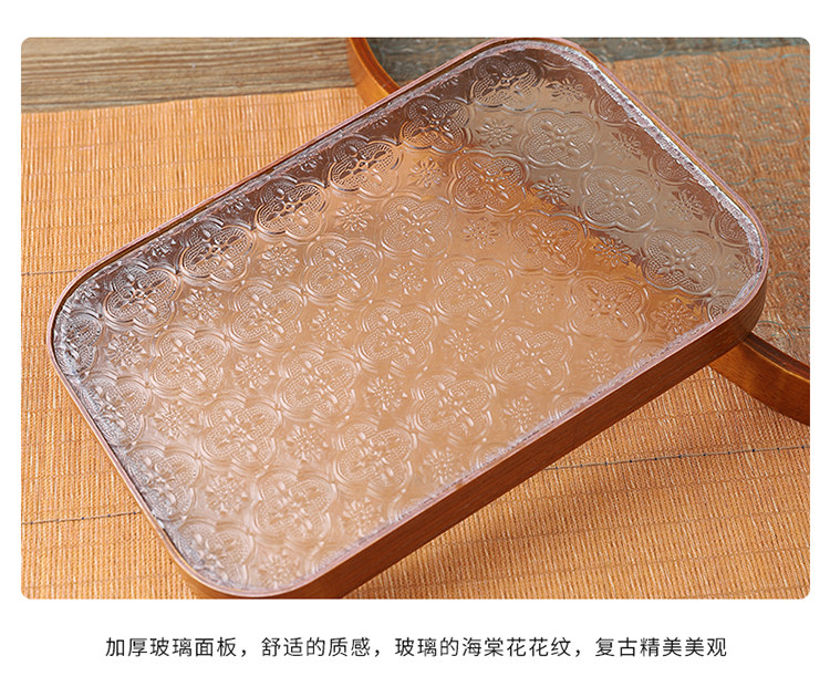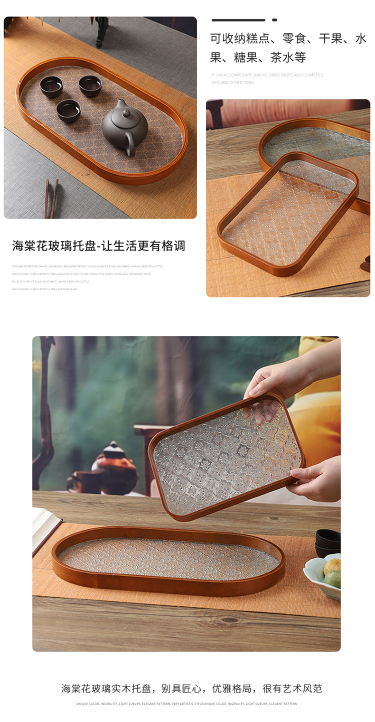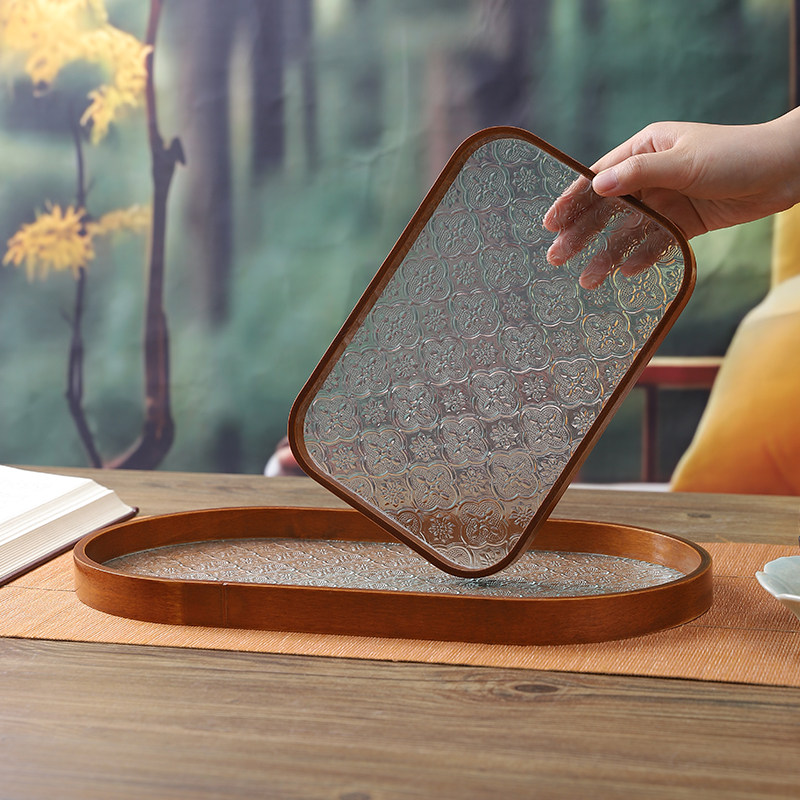 Прямоугольный поднос для хранения чашек, чайный поднос, стеклянный поднос с тиснением бегонии для дома, гостиной, поднос для десерта, поднос для фруктов, деревянный поднос