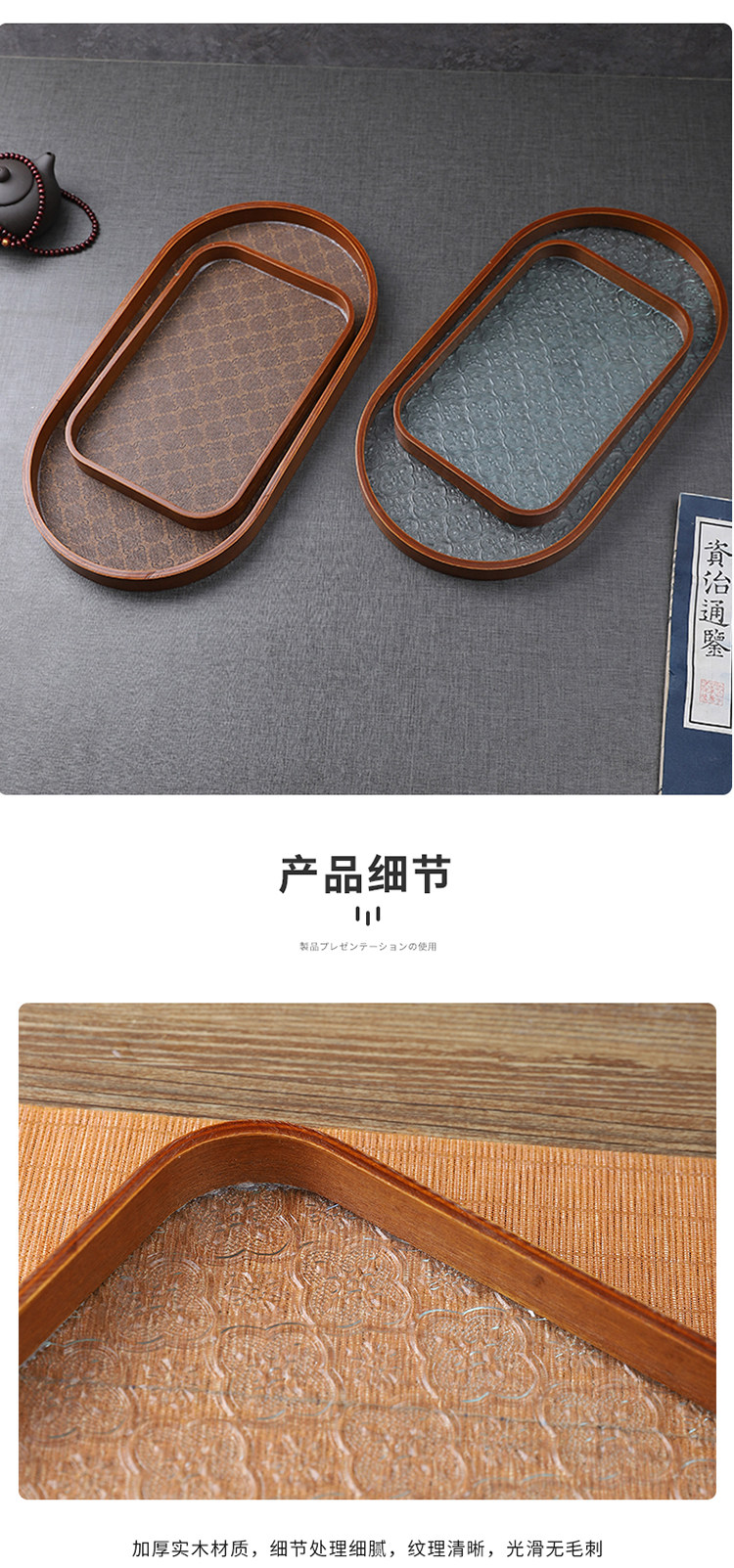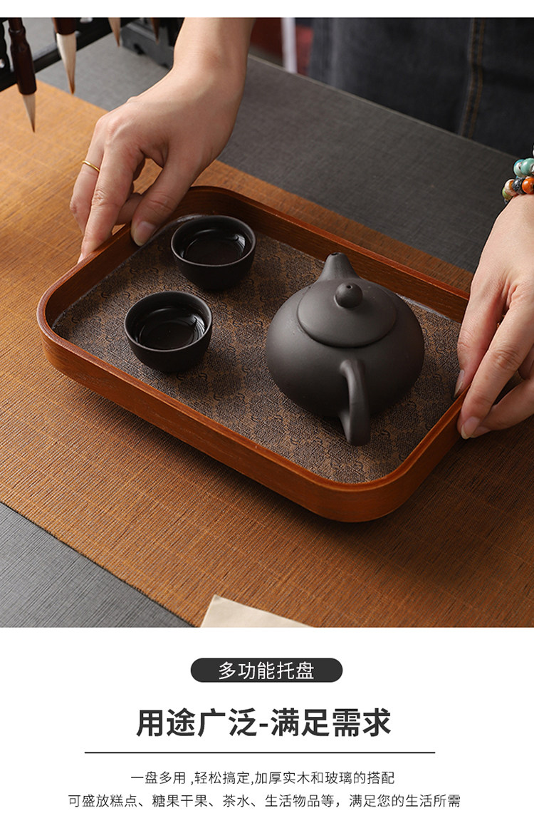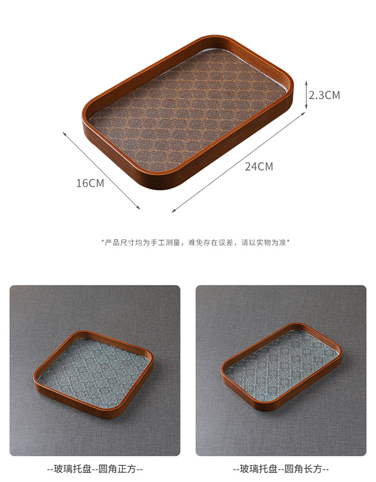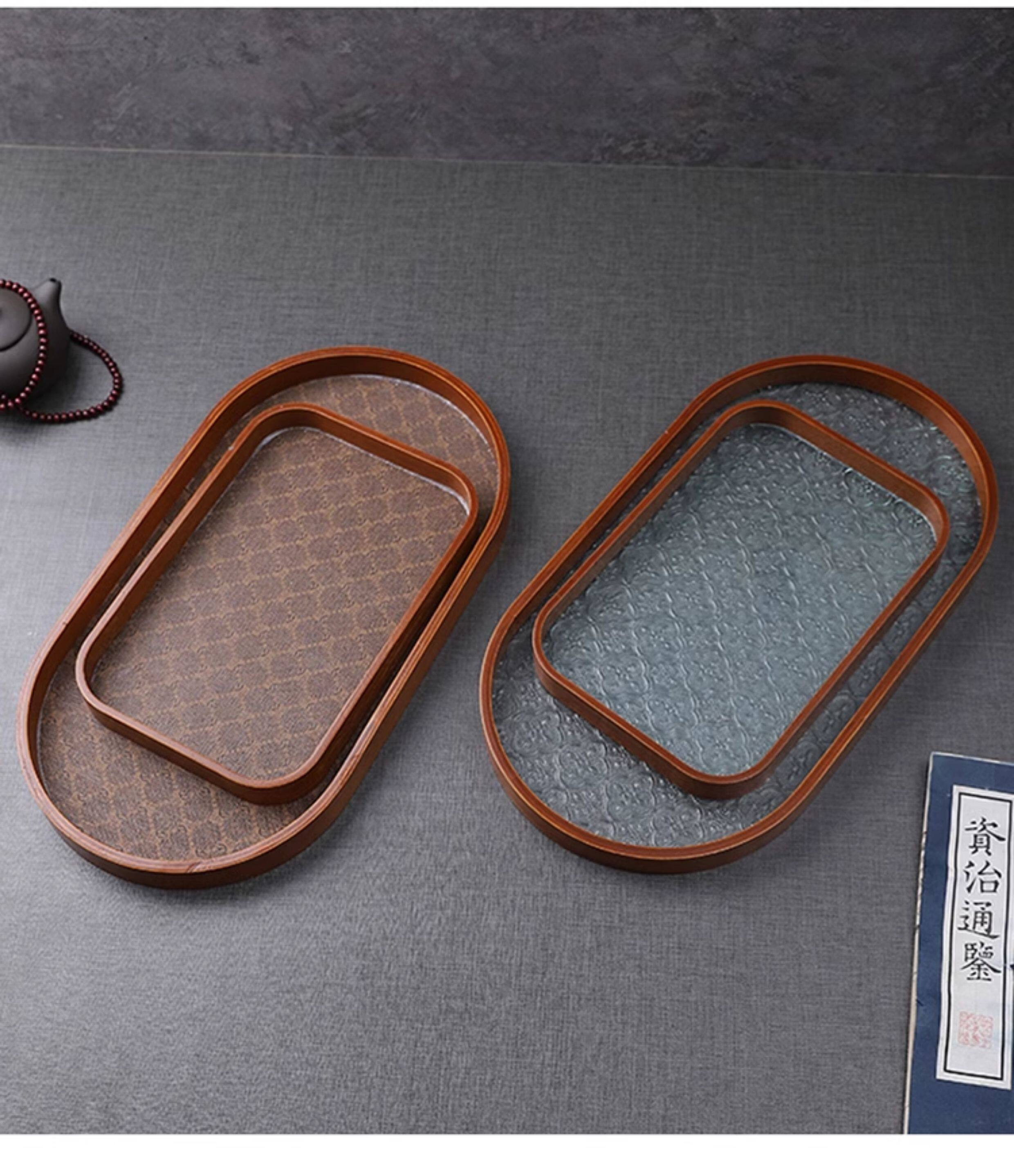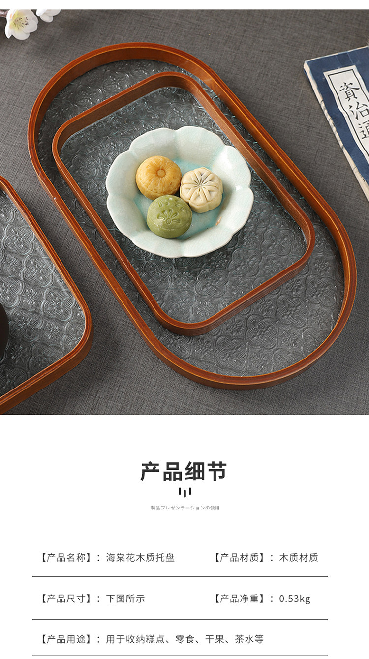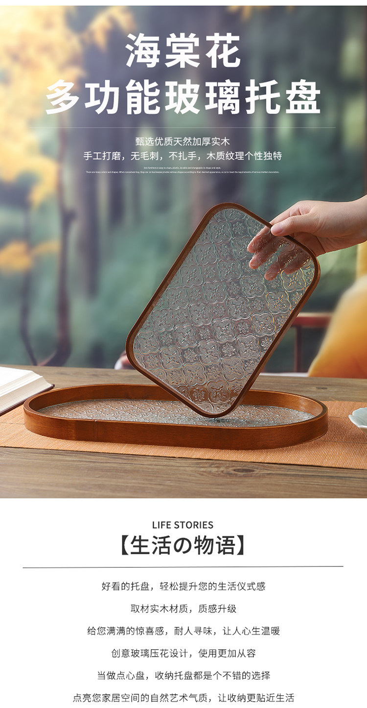 Прямоугольный поднос для хранения чашек, чайный поднос, стеклянный поднос с тиснением бегонии для дома, гостиной, поднос для десерта, поднос для фруктов, деревянный поднос