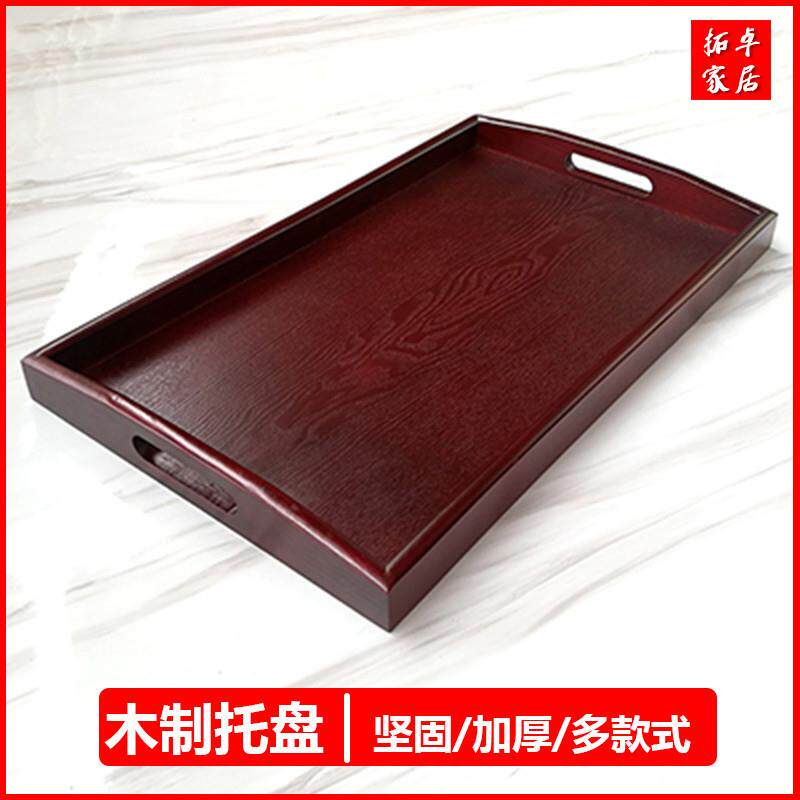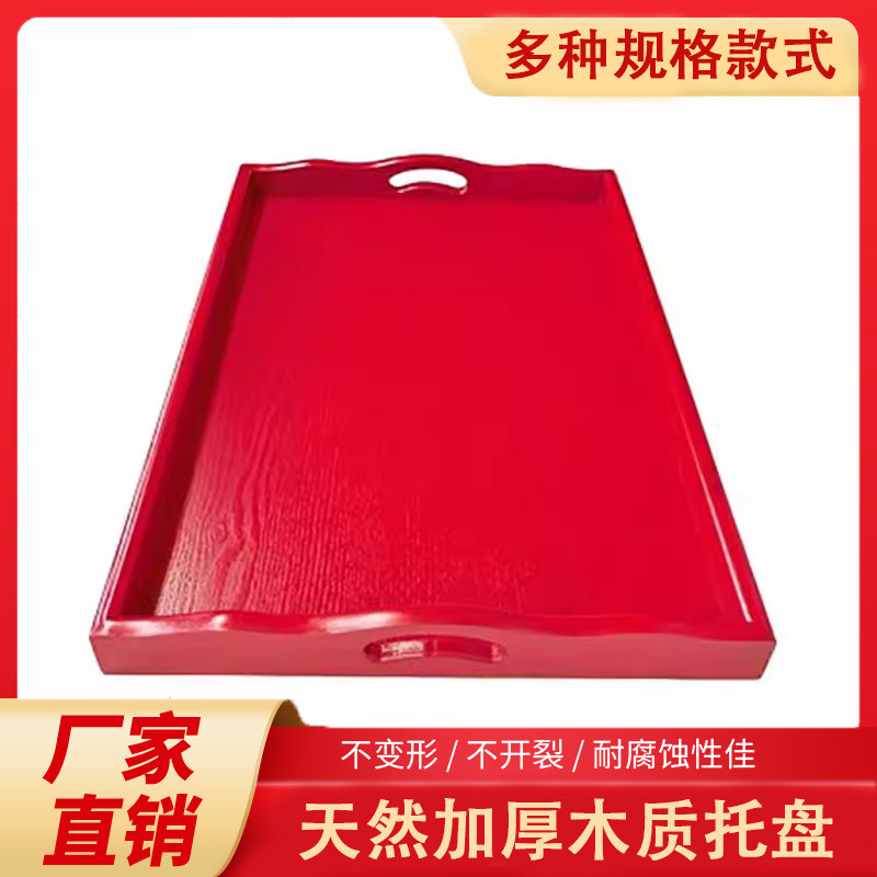 Деревянная прямоугольная красная обеденная тарелка из натурального дерева