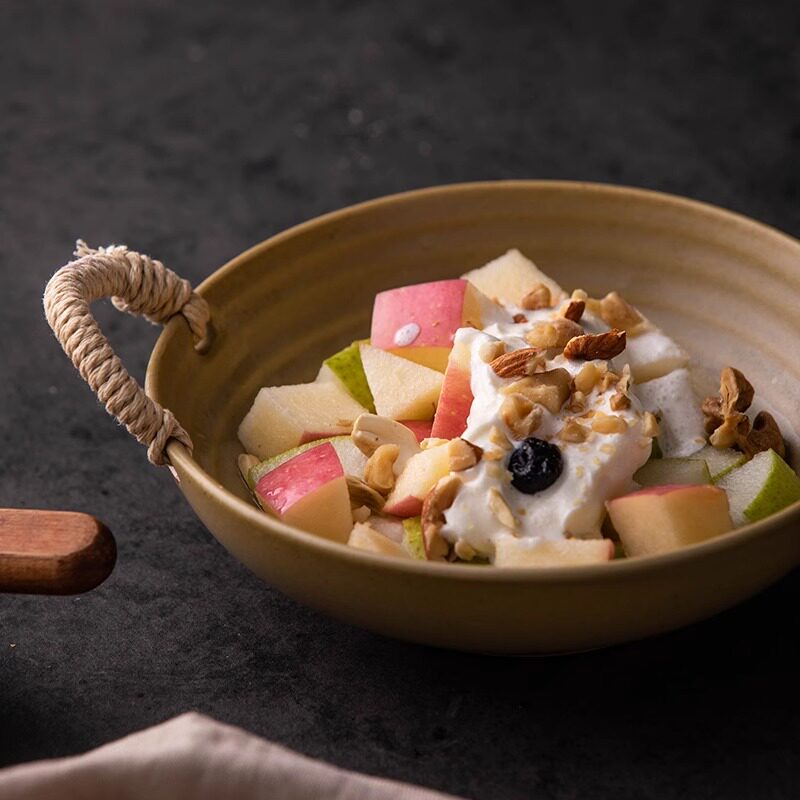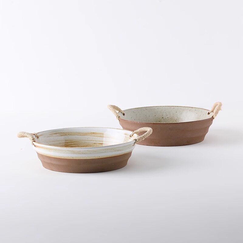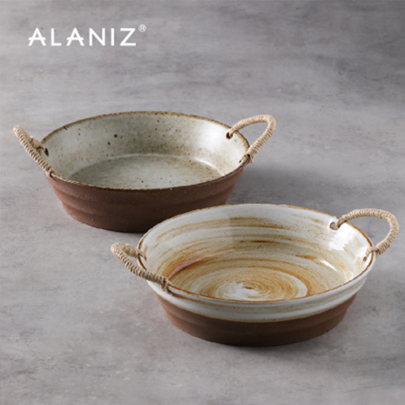 Alaniz Nanzijing пеньковая веревка двуухая грубая керамика глубокая тарелка большая тарелка блюдо домашняя японская посуда в стиле ретро суповая миска