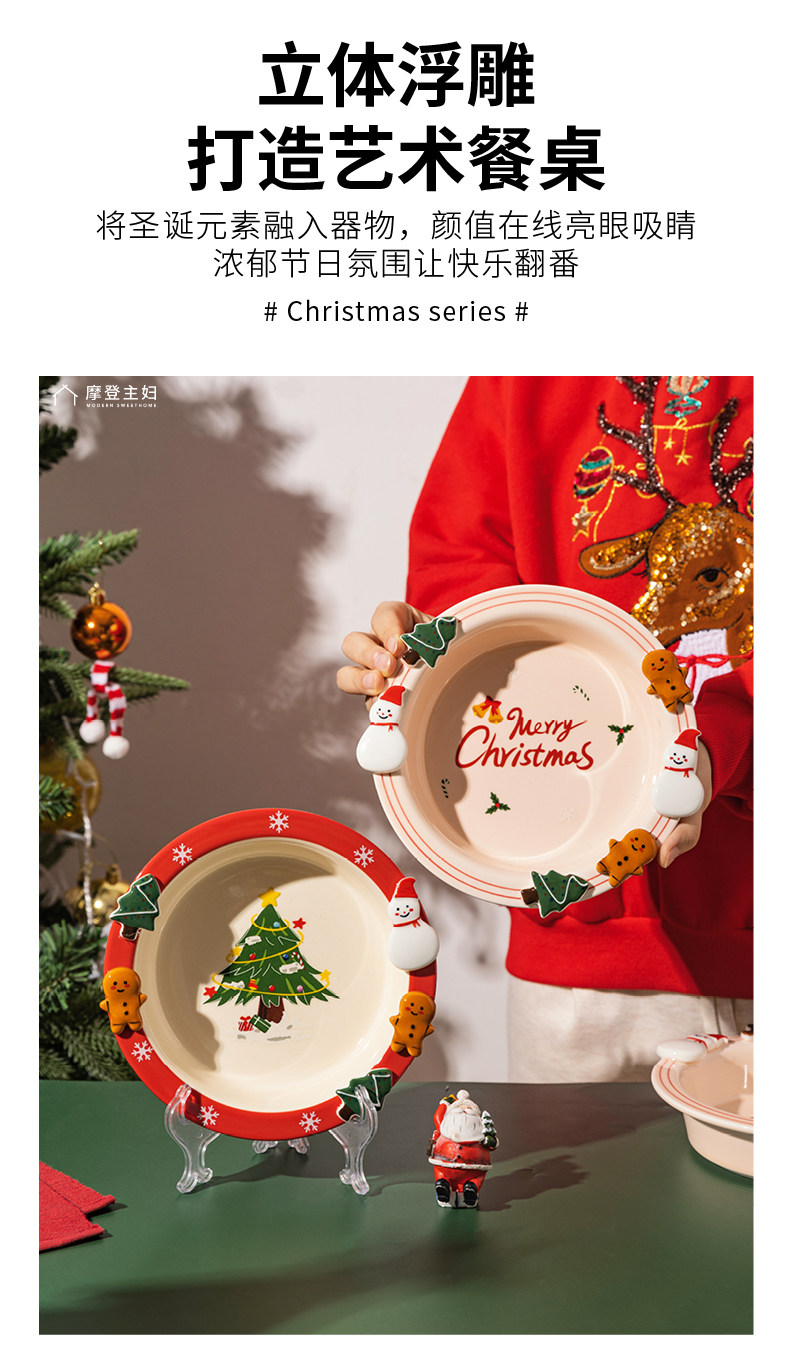 摩登主妇 Рождественская тарелка, десерт, тарелка с фруктами, миска для йогурта, домашний подарок на день рождения для девочек, милая посуда