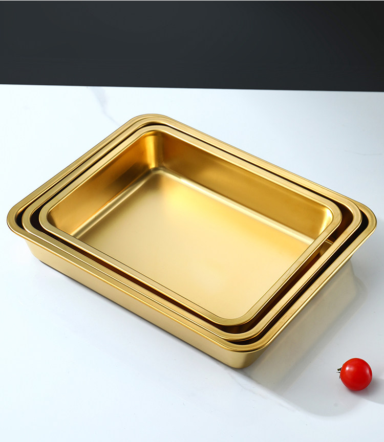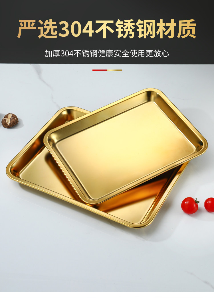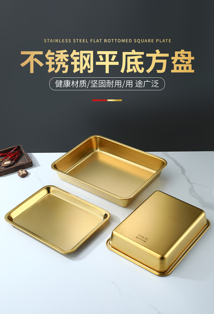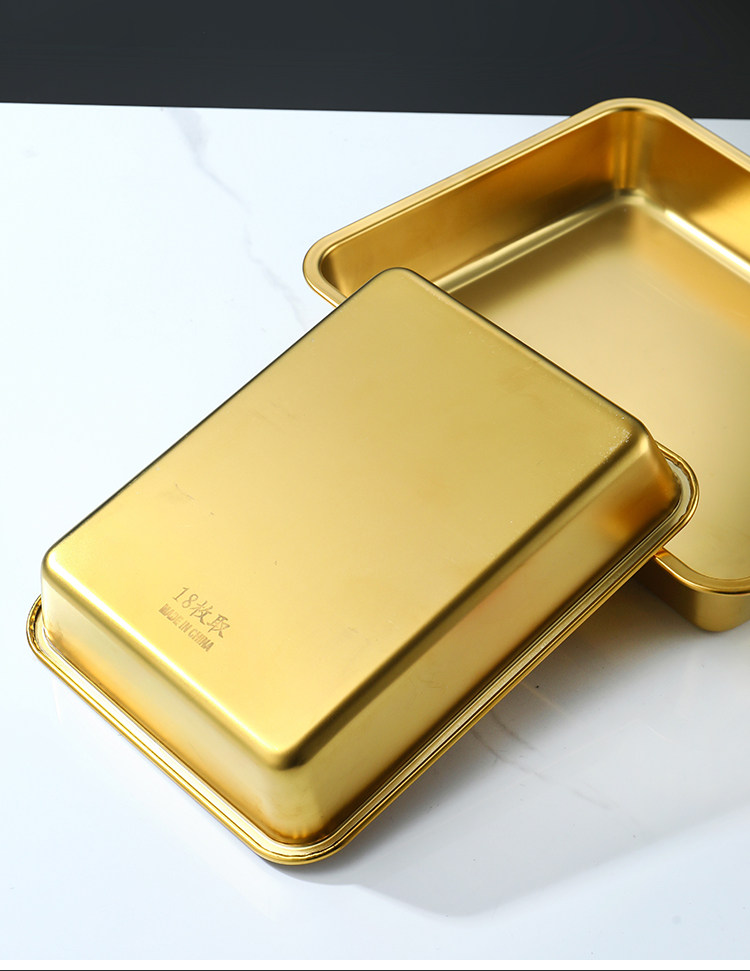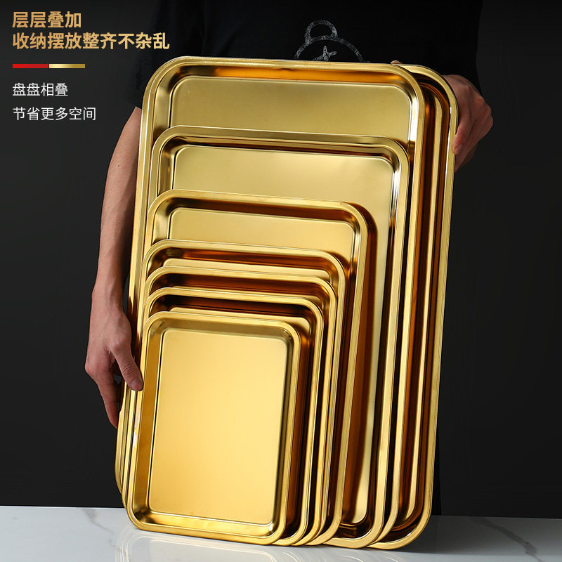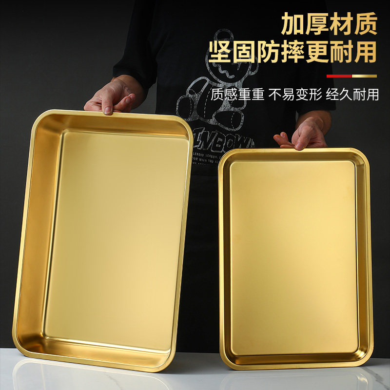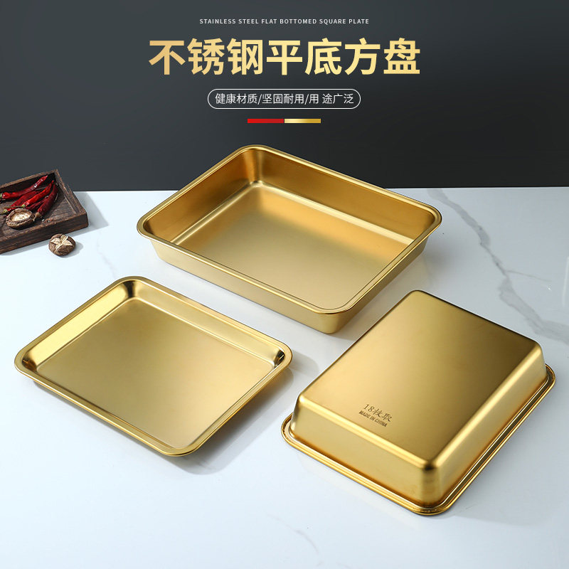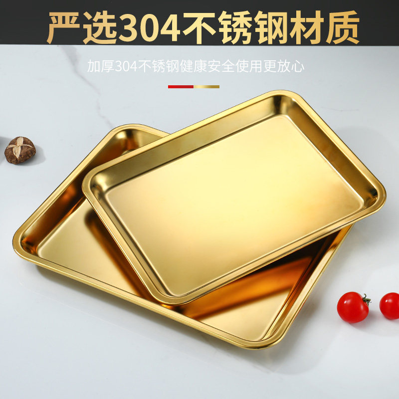 Нержавеющая сталь 304, золотой прямоугольный поднос, поднос для барбекю, витрина для тушеного мяса, приготовленная еда, острый горячий горшок, ресторанная тарелка
