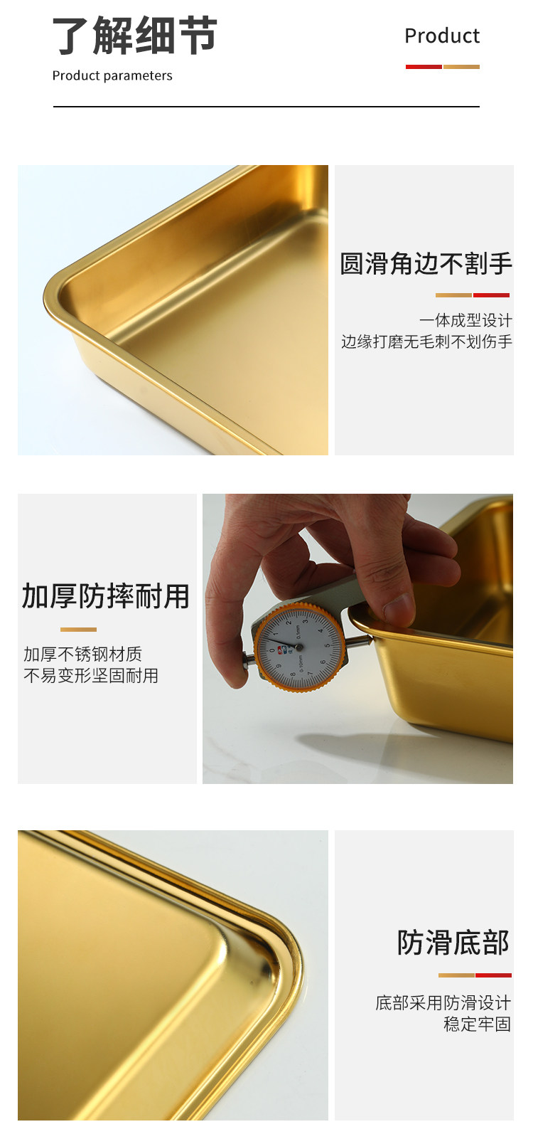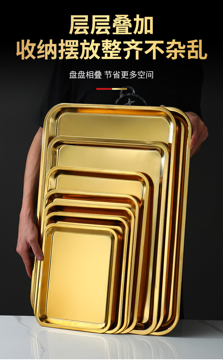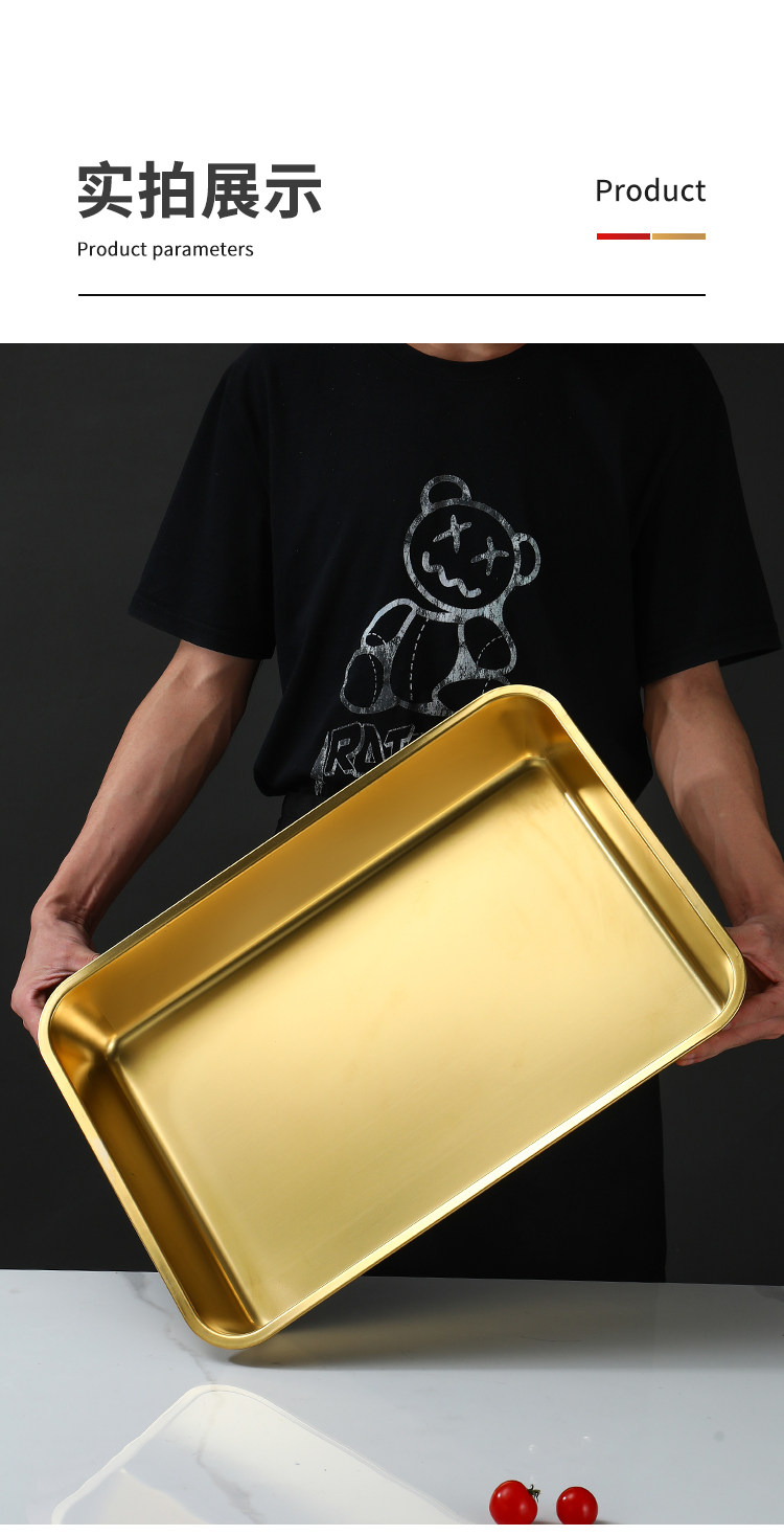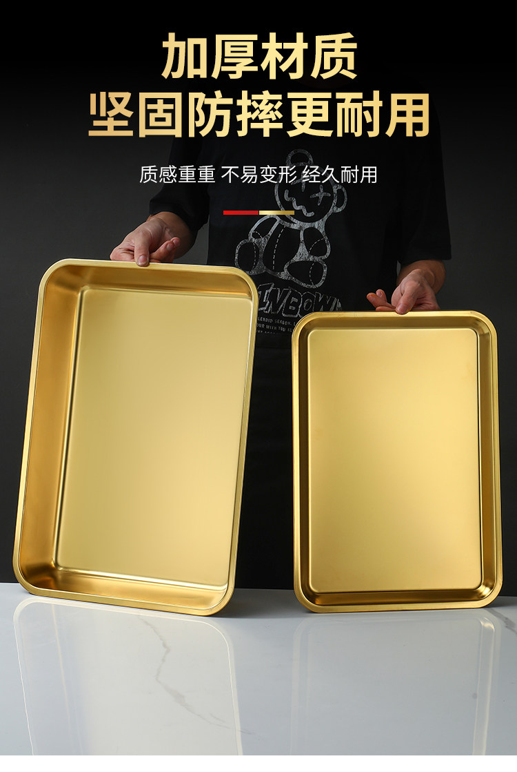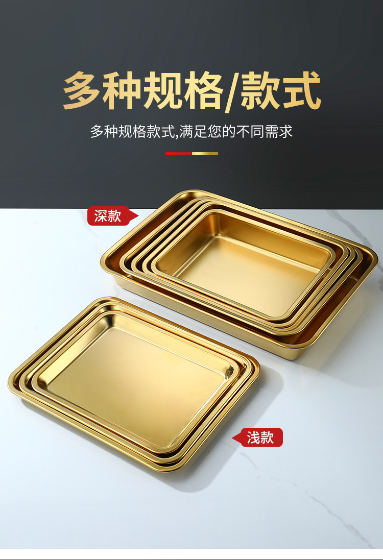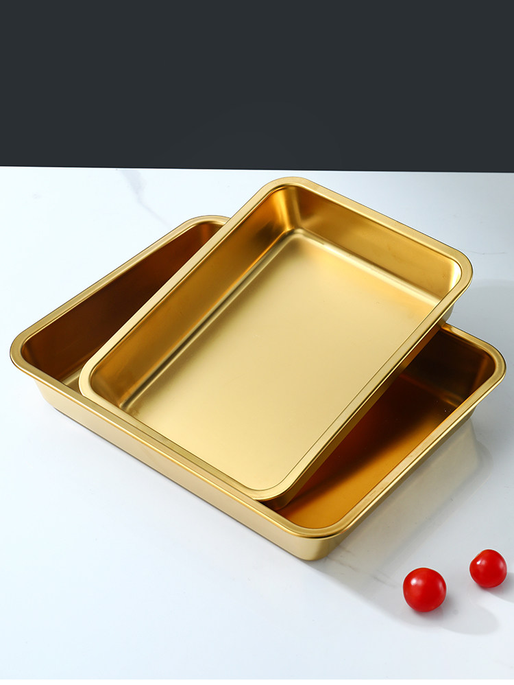Нержавеющая сталь 304, золотой прямоугольный поднос, поднос для барбекю, витрина для тушеного мяса, приготовленная еда, острый горячий горшок, ресторанная тарелка
