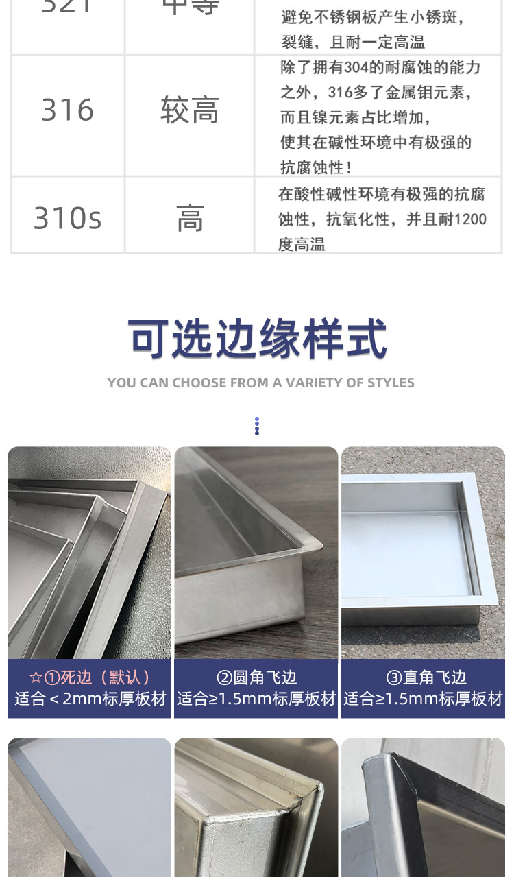 | Классификация цветов: | Для клиентов, которые хотят настроить по требованию, пожалуйста, свяжитесь со службой поддержки клиентов для получения расценок + Также доступны негабаритные размеры + Сварные сливные отверстия + ручки + подвесные уши и другие услуги., 201 стальное утолщение + длина 35*ширина 35*высота 5см, [304 квадратный поддон с обернутыми краями] длина 350*ширина 350*высота 30*толщина стенки 0,8 мм, [201 длинный поддон с краями] длина 400*ширина 300*высота 50*толщина стенки 0,8 мм, [304 длинный поддон с краями] длина 400*ширина 300*высота 50*толщина стенки 0,8 мм, [201 квадратный поддон с обернутыми краями] длина 400*ширина 400*высота 30*толщина стенки 0,8 мм, [304 квадратный поддон с краями] длина 400 * ширина 400 * высота 30 * толщина стенки 0,8 мм, [201 квадратный поддон с краями] длина 500*ширина 500*высота 50*толщина стенки 0,8 мм, [304 квадратный поддон с краями] длина 500*ширина 500*высота 50*толщина стенки 0,8 мм, [201 длинный поддон с краями] длина 600*ширина 400*высота 50*толщина стенки 0,8 мм, [304 длинный поддон с краями] длина 600*ширина 400*высота 50*толщина стенки 0,8 мм, [201 квадратный поддон с обернутыми краями] длина 600*ширина 600*высота 50*толщина стенки 0,8 мм, [304 квадратный поддон с краями] длина 600 * ширина 600 * высота 50 * толщина стенки 0,8 мм, [201 длинный поддон с краями] длина 700*ширина 500*высота 50*толщина стенки 0,8 мм, [304 длинный поддон с краями] длина 700*ширина 500*высота 50*толщина стенки 0,8 мм, [201 длинный поддон с краями] длина 800*ширина 600*высота 50*толщина стенки 0,8 мм, [304 длинный поддон с краями] длина 800*ширина 600*высота 50*толщина стенки 0,8 мм, [201 квадратный поддон с краями] длина 800 * ширина 800 * высота 50 * толщина стенки 0,8 мм, [304 квадратный поддон с краями] длина 800*ширина 800*высота 50*толщина стенки 0,8 мм, [Резервуар для воды с краями 304] длина 800* ширина 800* высота 500* толщина стенки 0,8 мм, [Овальная пластина с кромкой 304] длина 900*ширина 700*высота 100*толщина стенки 1 мм, [201 большой поддон с краями] длина 1040*ширина 600*высота 80*толщина стенки 0,8 мм, [304 большой поддон с краями] длина 1040*ширина 600*высота 80*толщина стенки 0,8 мм |