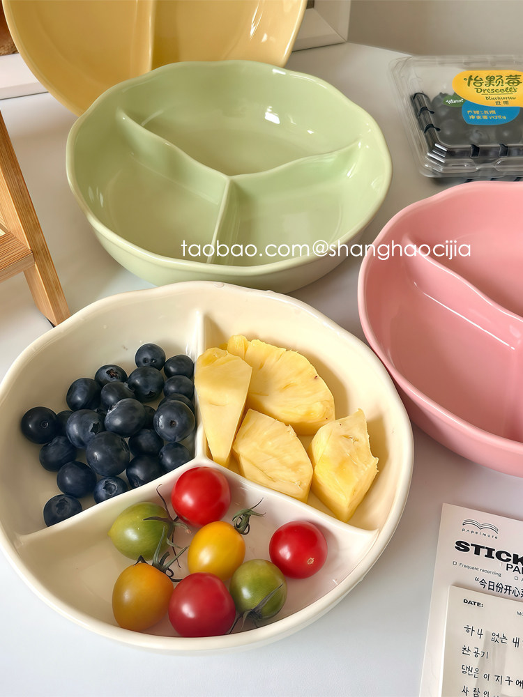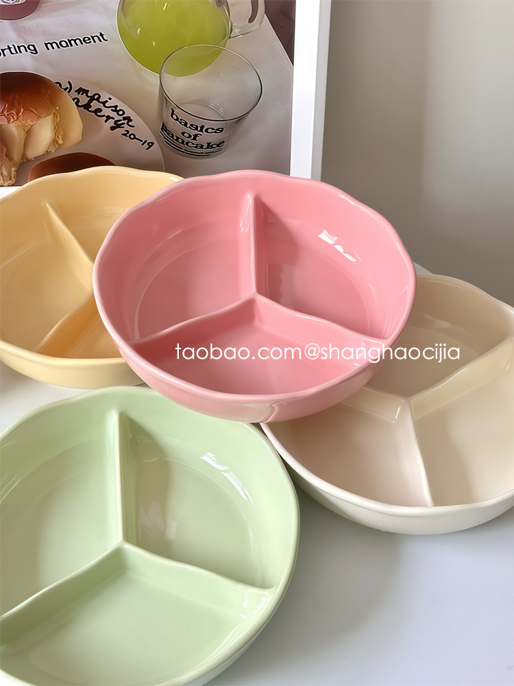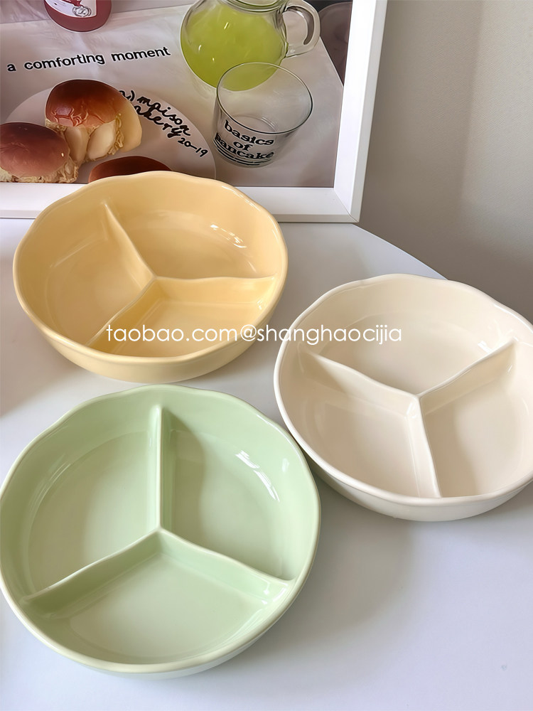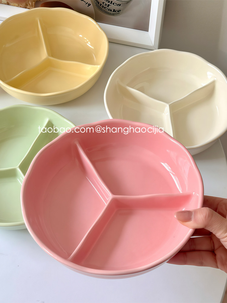 Корейская красивая обеденная тарелка с тремя отделениями для похудения и похудения, бытовая керамическая посуда, миска для фруктового завтрака