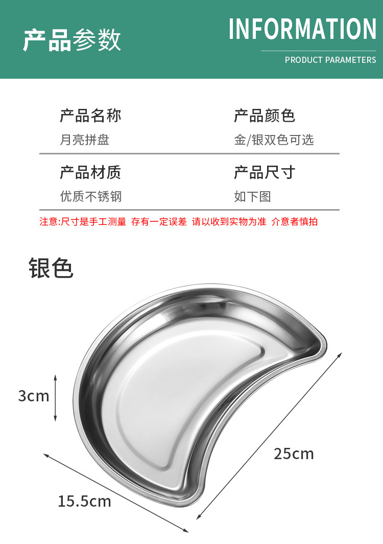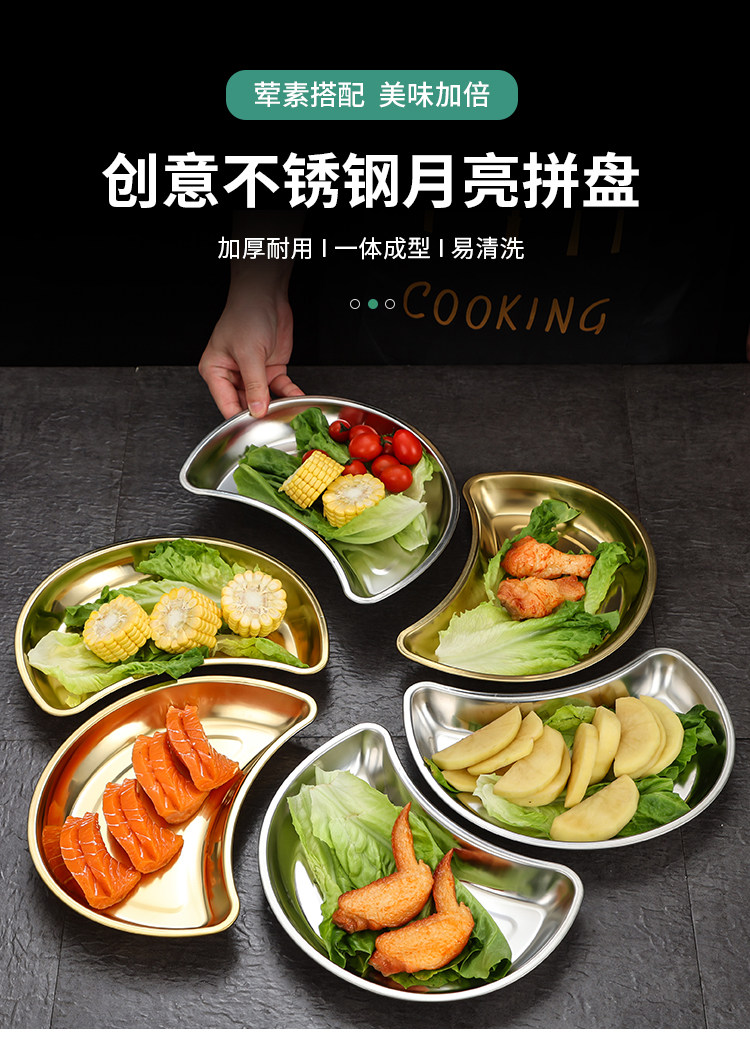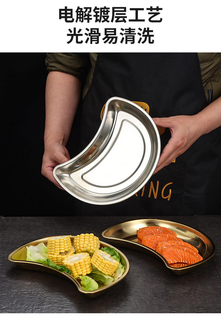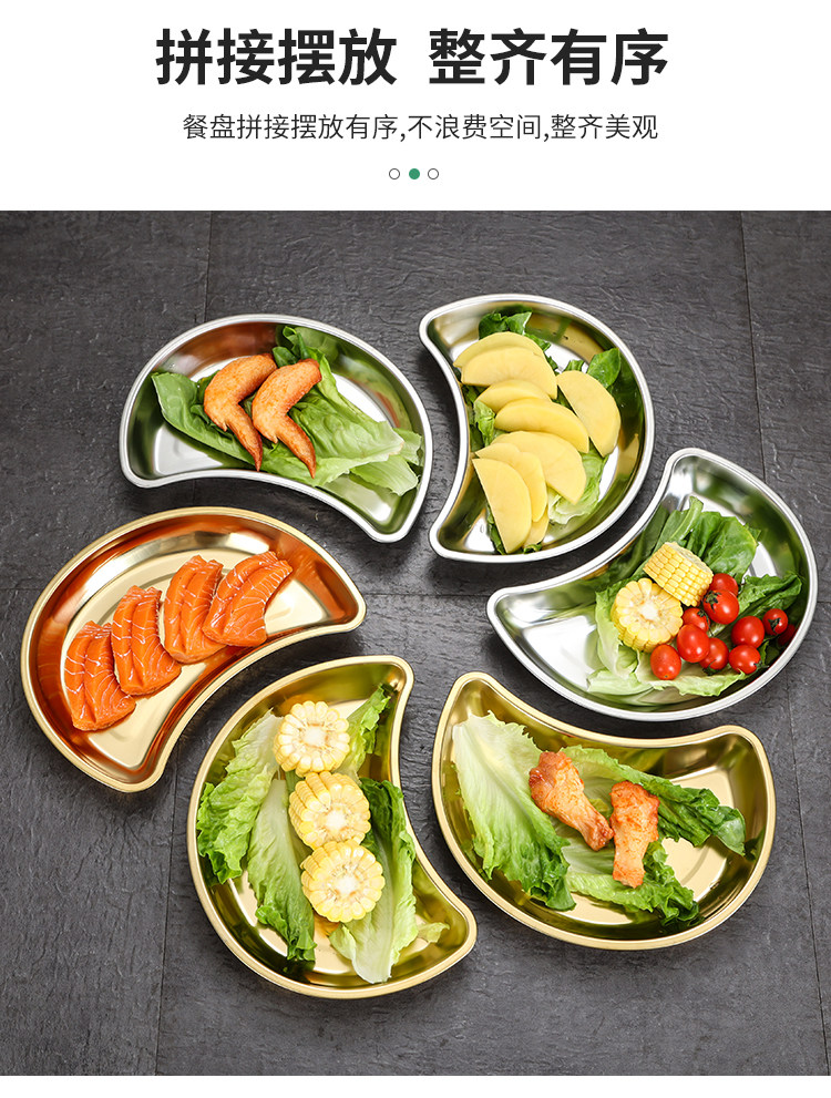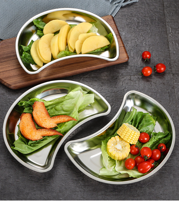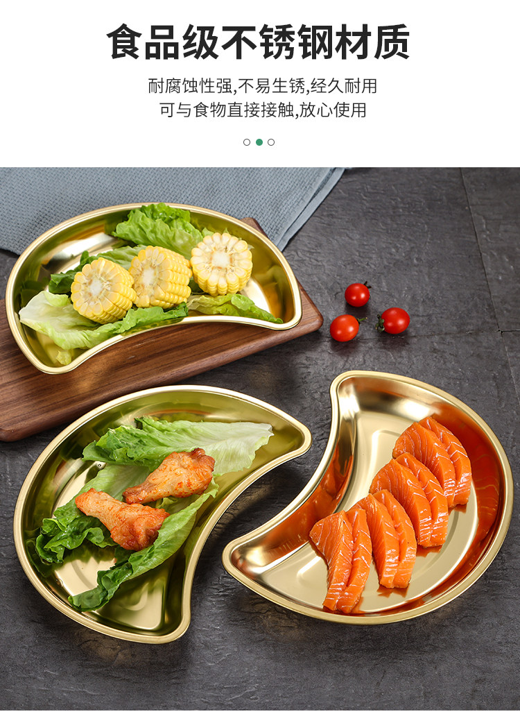 Лунное блюдо из нержавеющей стали 304, креативная тарелка для горячего горшка, тарелка в форме полумесяца, тарелка для семейного воссоединения, обеденная тарелка