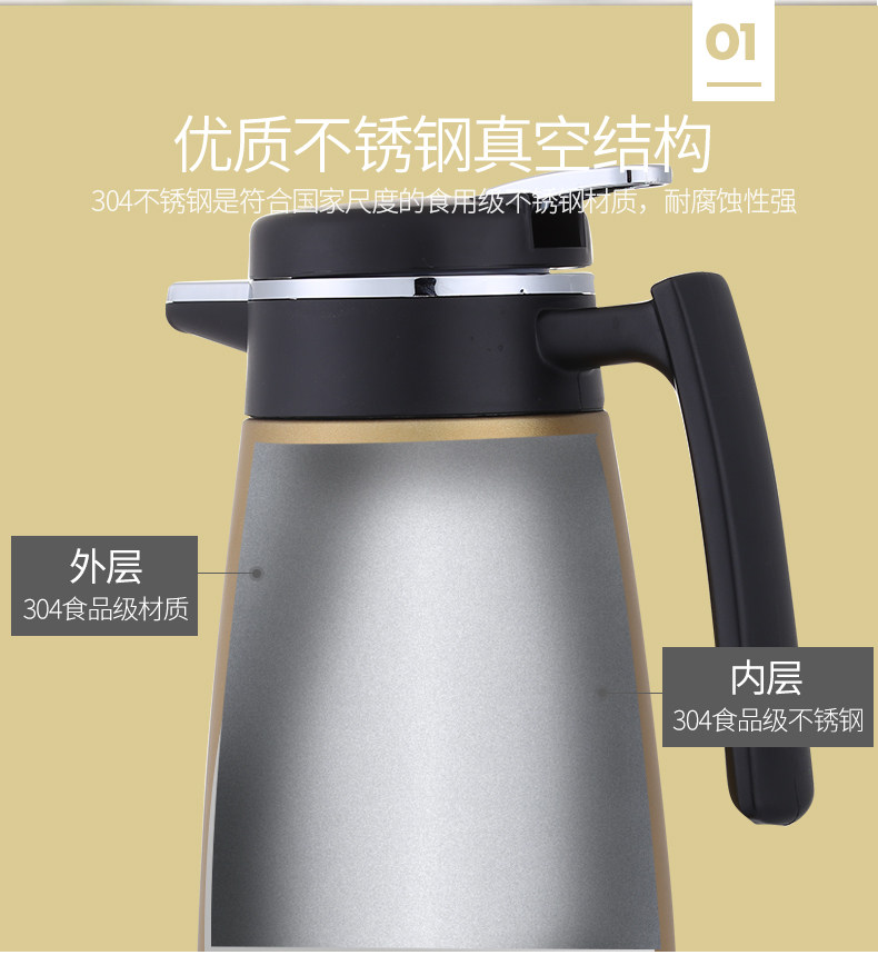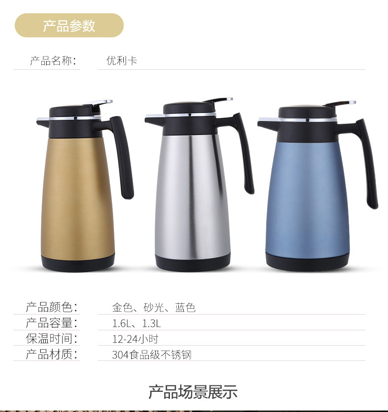 优利卡 Термос, вместительный и большой чайник для домашнего использования из нержавеющей стали, нержавеющая сталь AISI 304, Германия