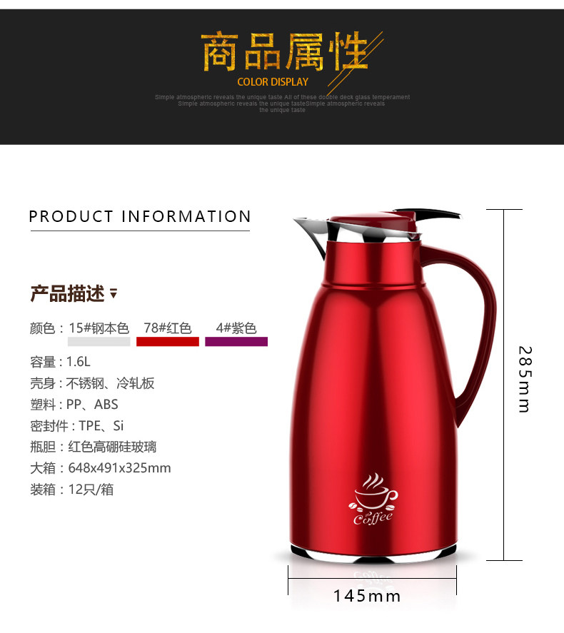 Термос из нержавеющей стали для домашнего использования, стеклянный кофейник, чайник