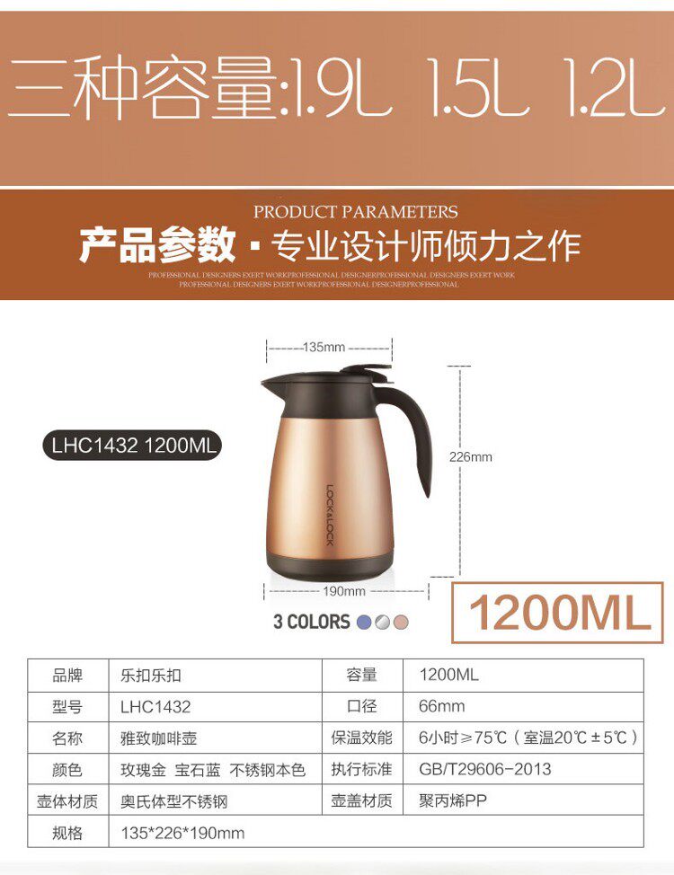 | Цвет: | LHC1433GPK (1,5 л розового золота), LHC1433SPG (1,5 л Sapphire Blue), LHC1433STS (1,5 л Steel Natural Color), LHC1434GPK (1,9 л розового золота), LHC1434SPG (1,9L Sapphire Blue), LHC1434STS (1,9L Стальная натуральный цвет) |